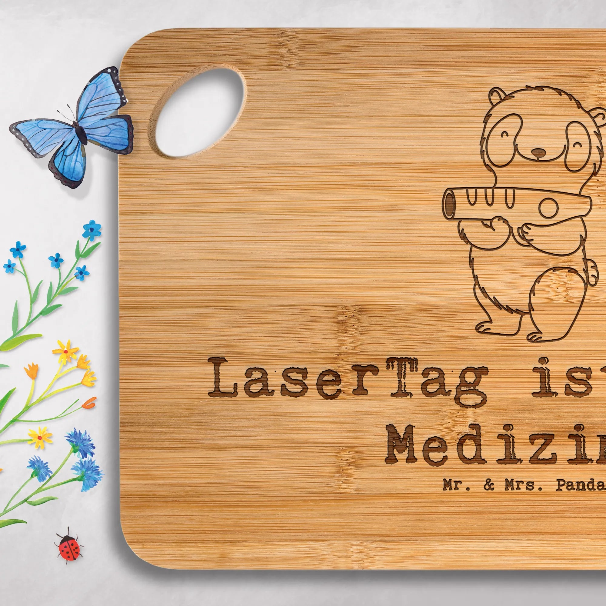 Küchenbrett Panda LaserTag - mit Spruch