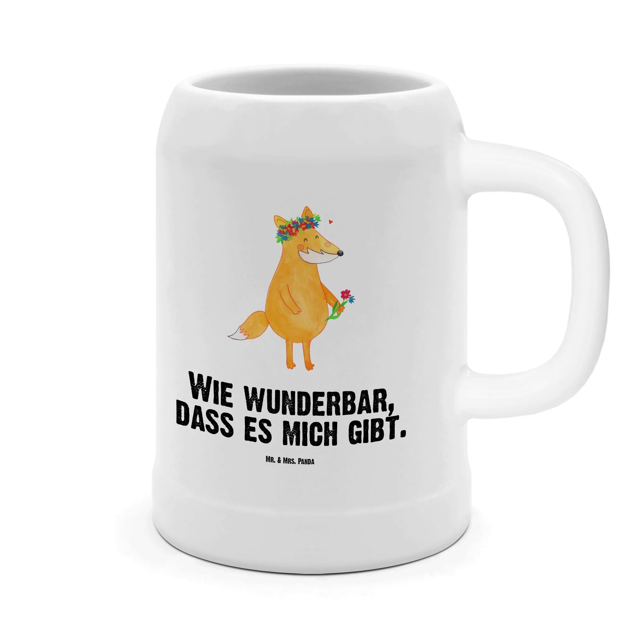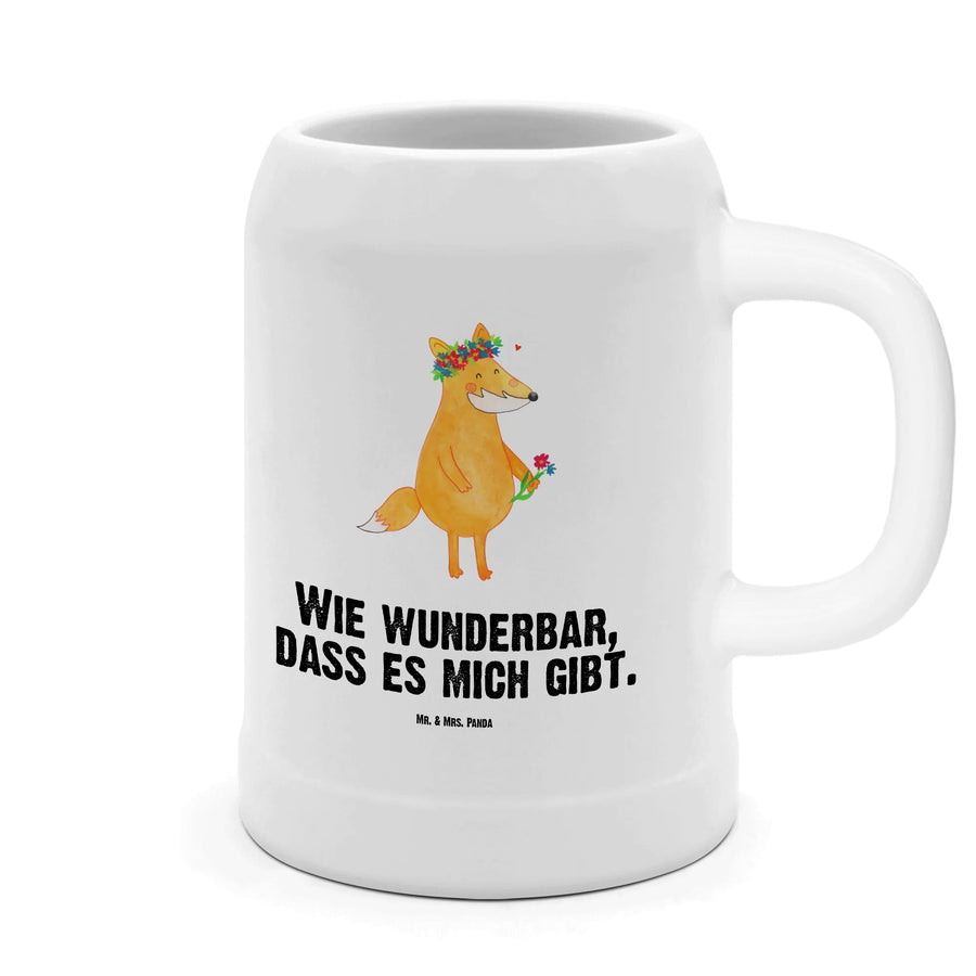 Kufel piwny lis Kwiaty - z napisem
