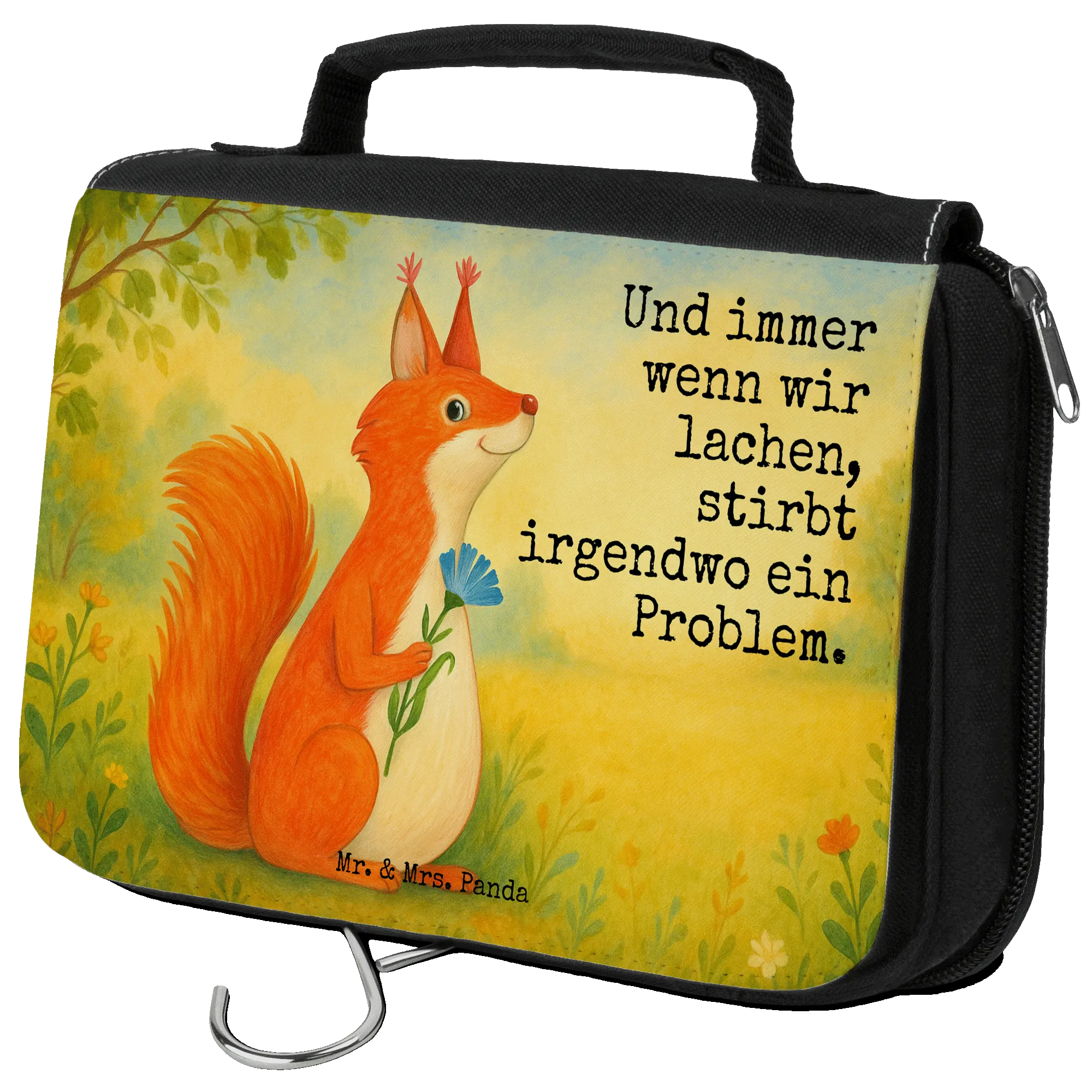 Kulturbeutel Eichhörnchen Blume Design - mit Spruch