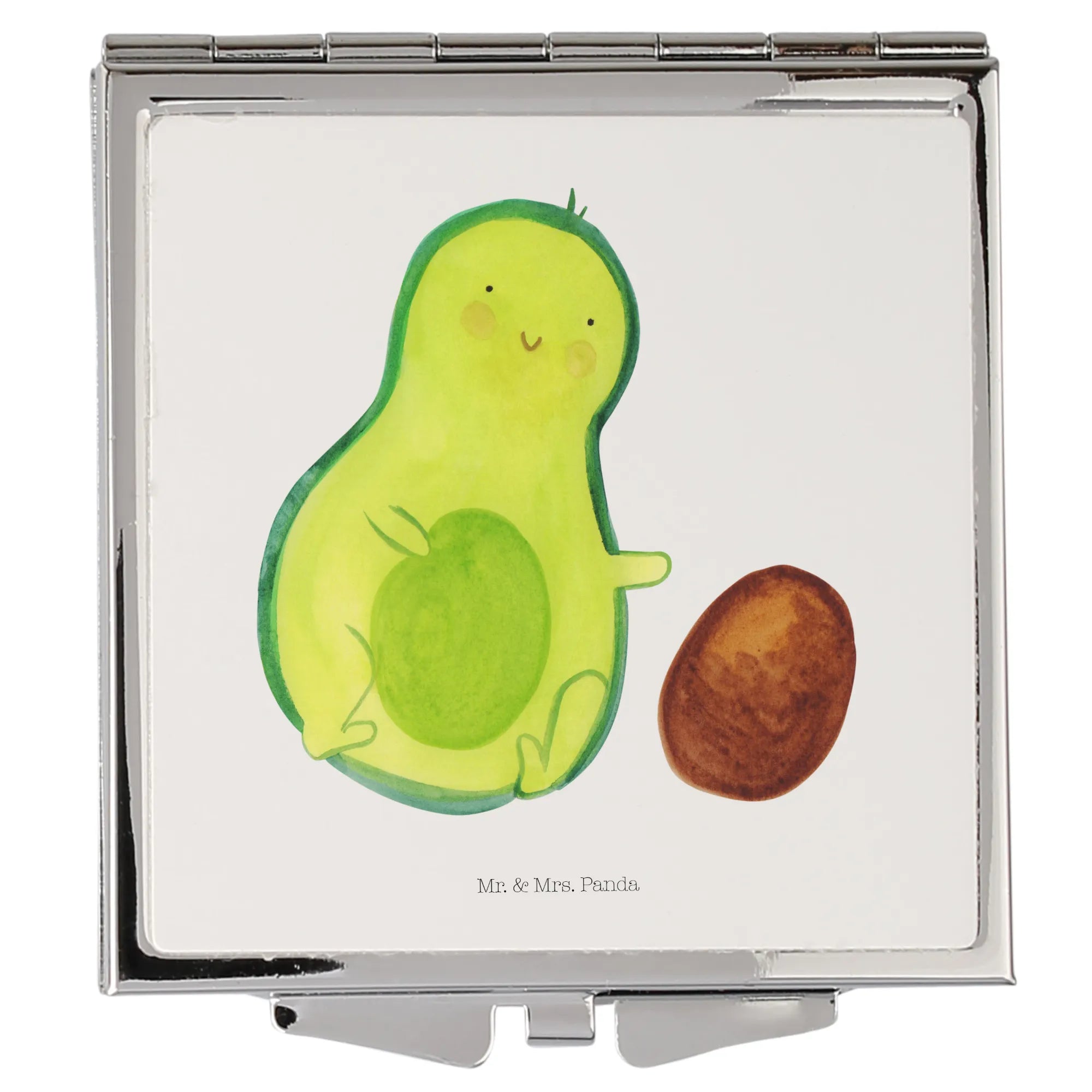 Kwadratowe lusterko do torebki Awokado pestka toczy się - z napisem - biały