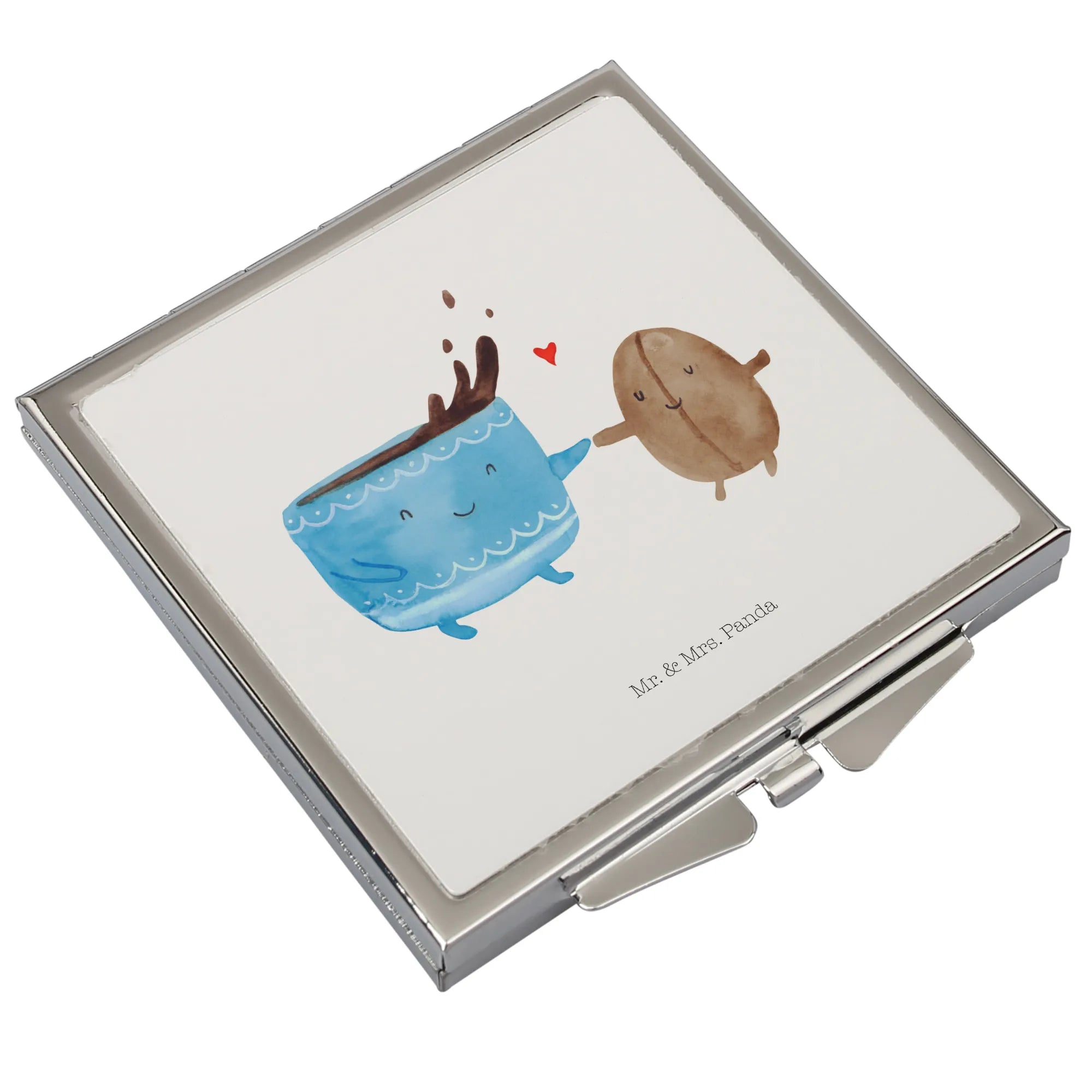 Kwadratowe lusterko do torebki kawa ziarno - z napisem - Pastelowy żółty