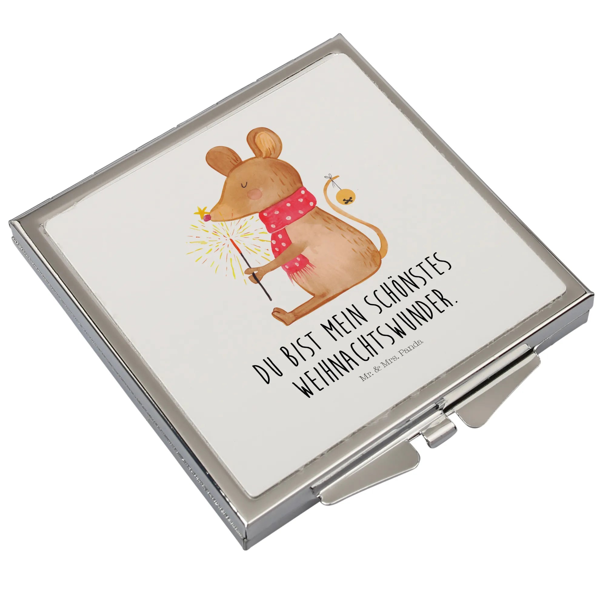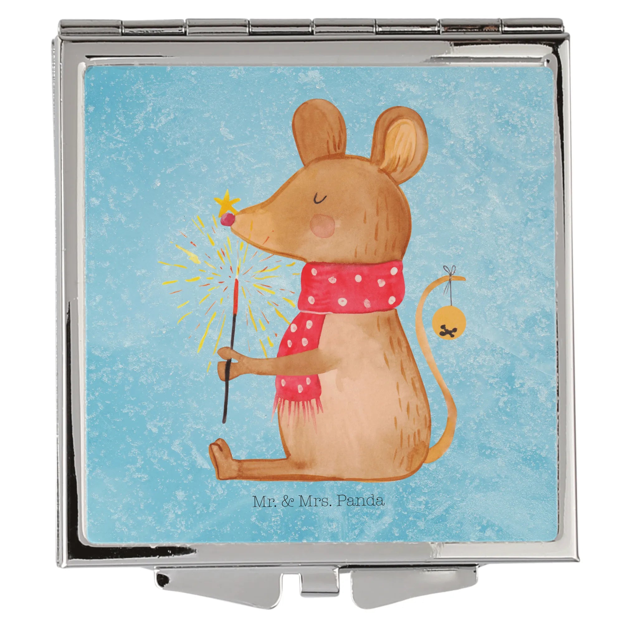 Kwadratowe lusterko do torebki mysz Boże Narodzenie - z napisem - lodowoniebieski