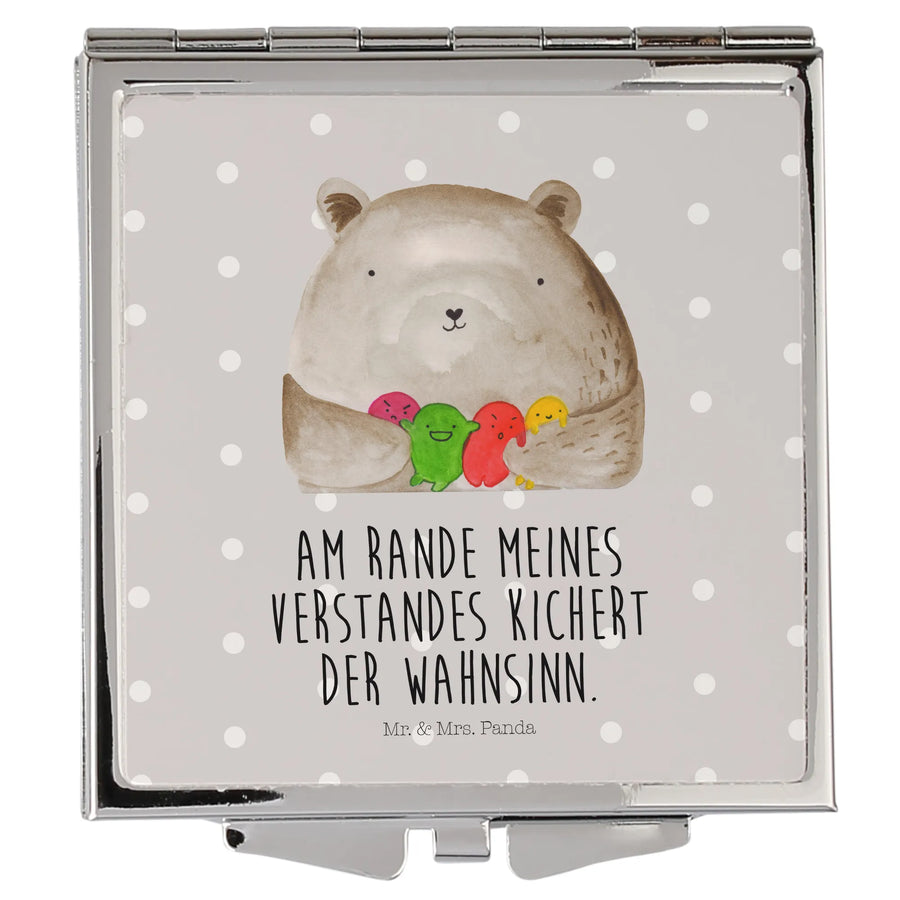 Kwadratowe lusterko do torebki niedźwiedź uczucie - z napisem - Pastelowy szary