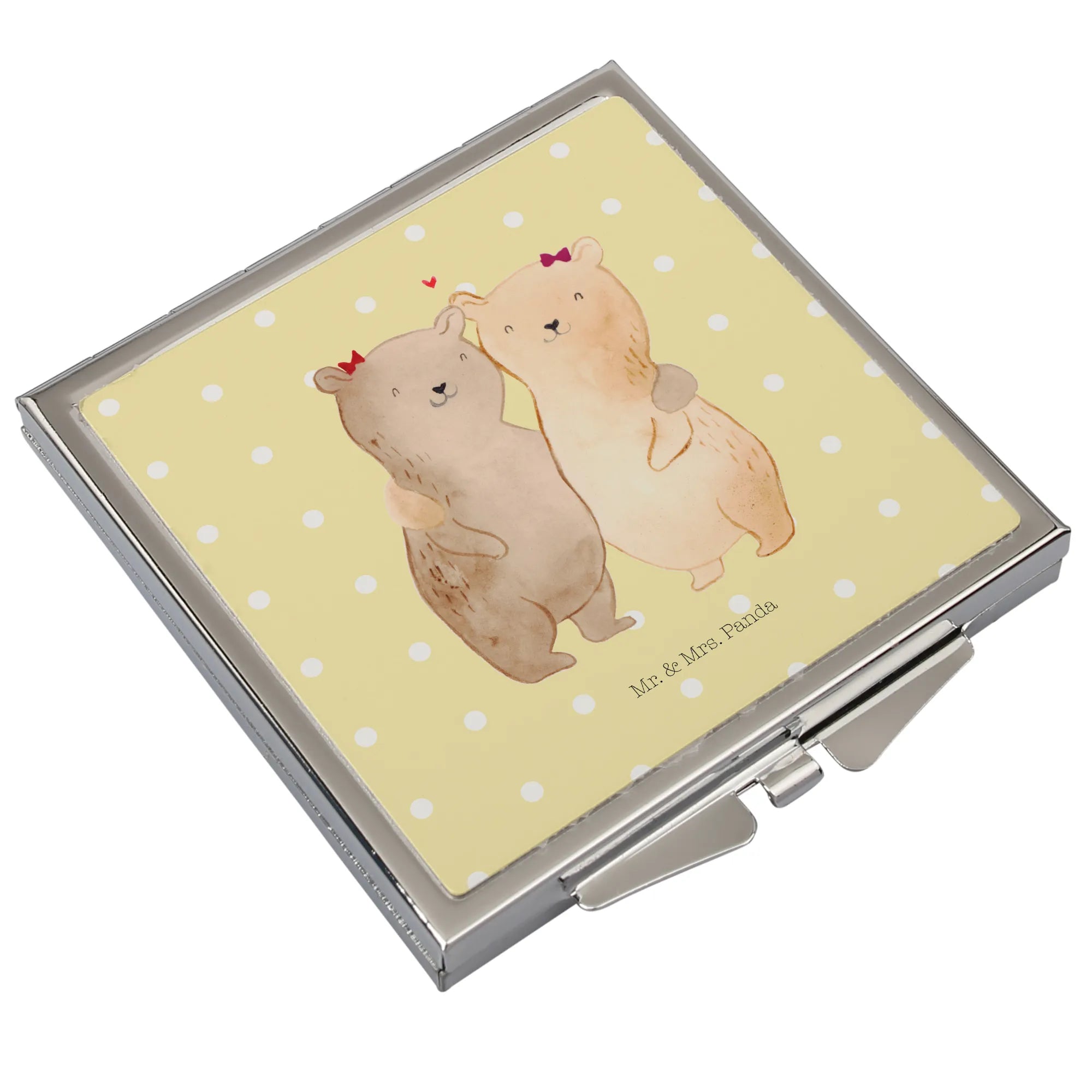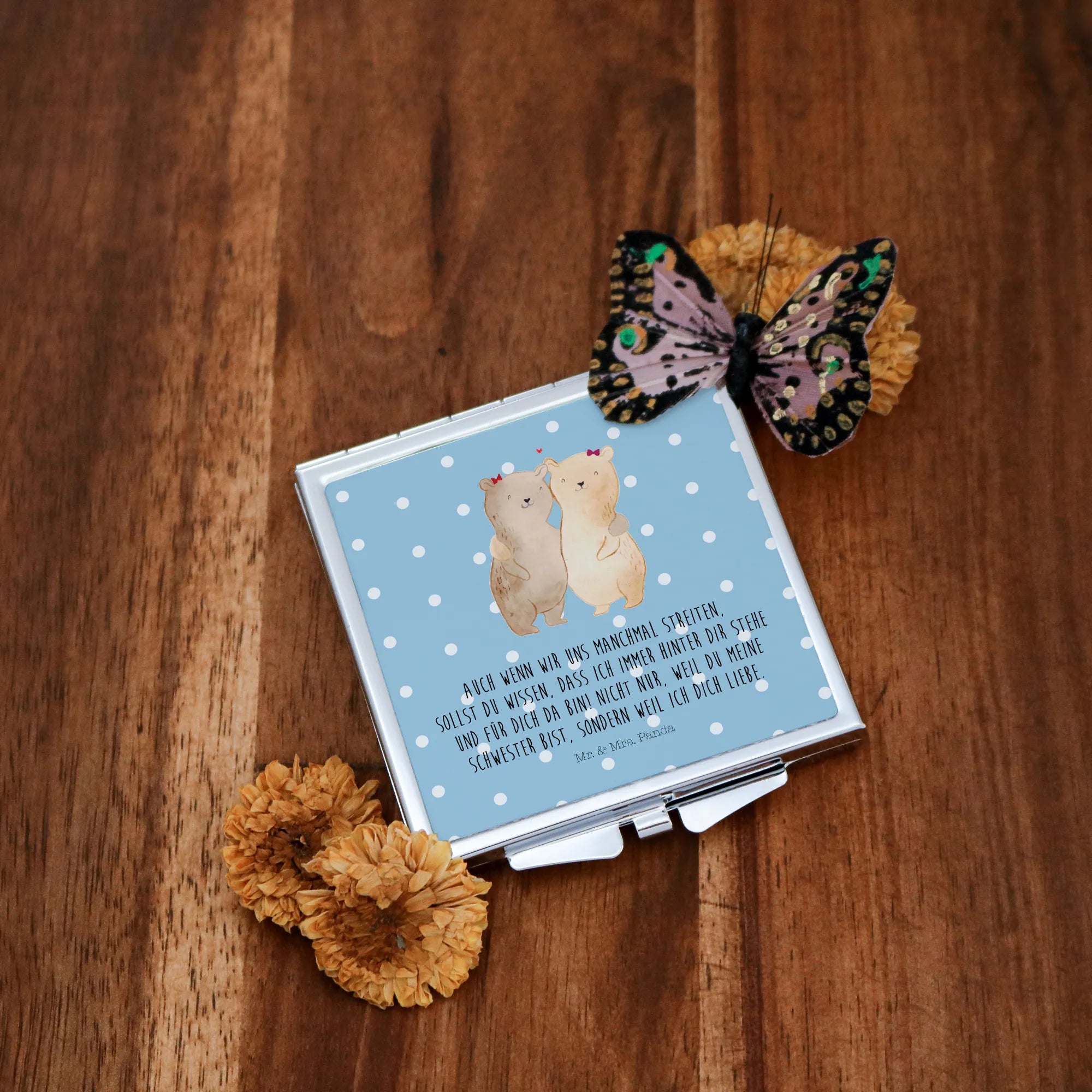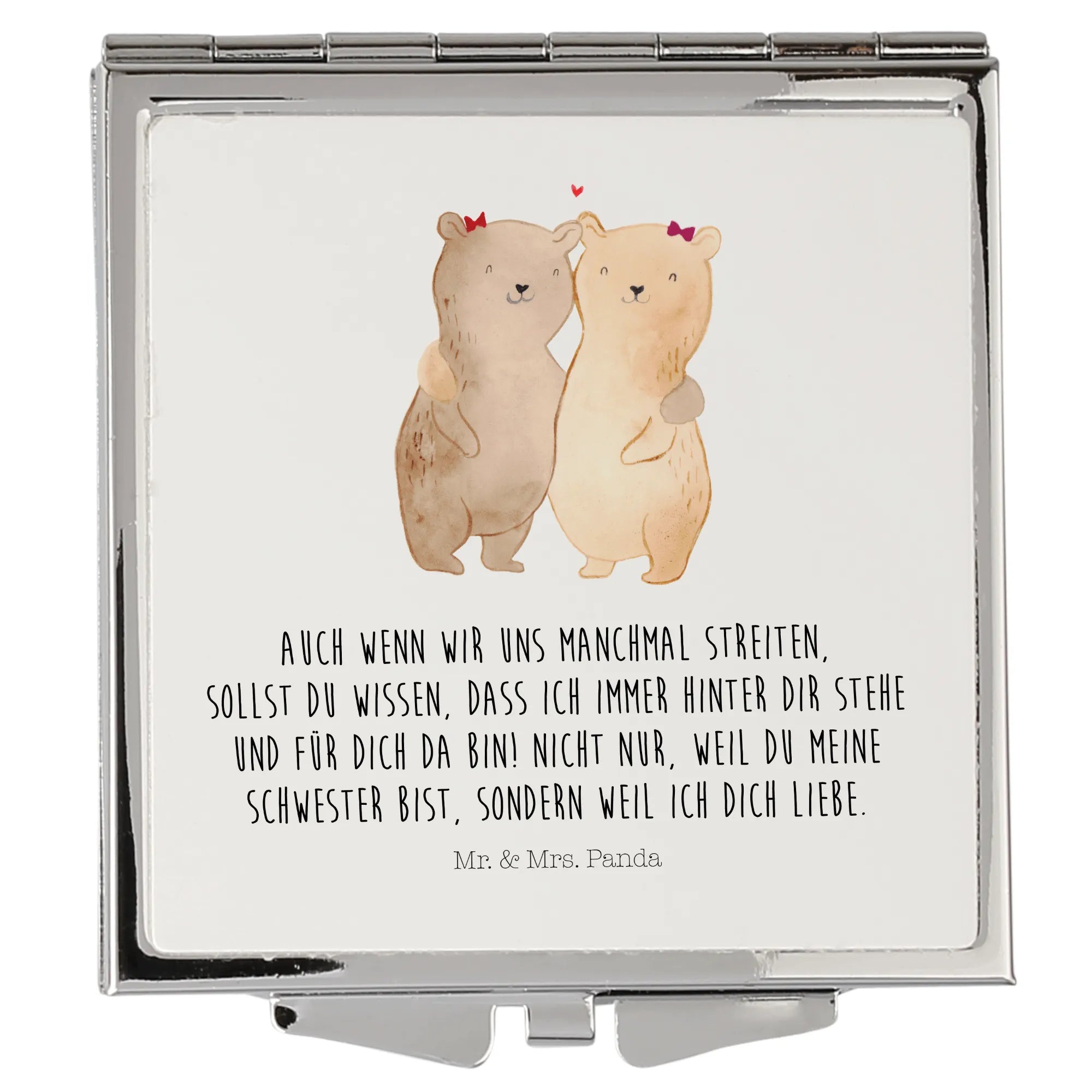Kwadratowe lusterko do torebki Niedźwiedzie Siostry - z napisem - biały