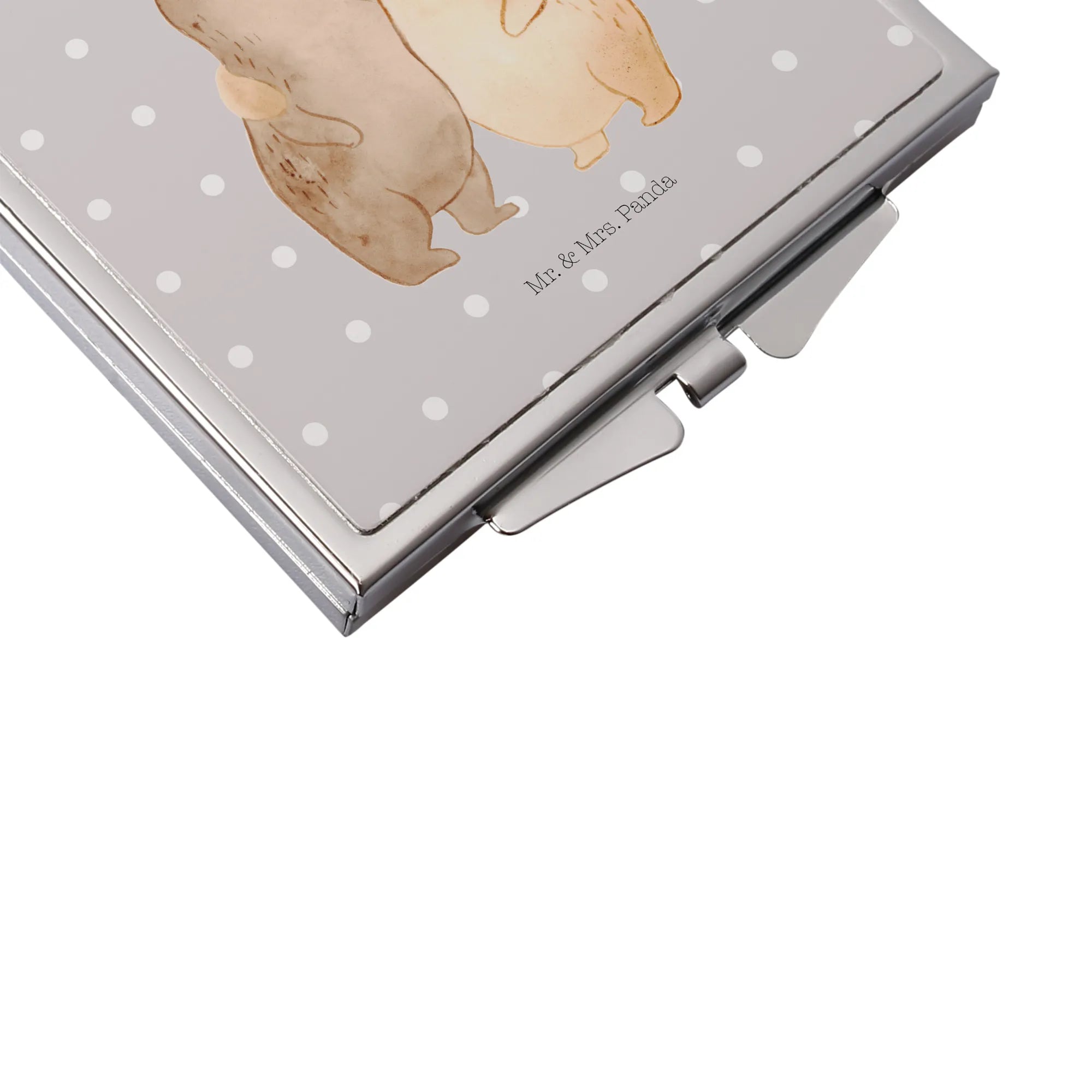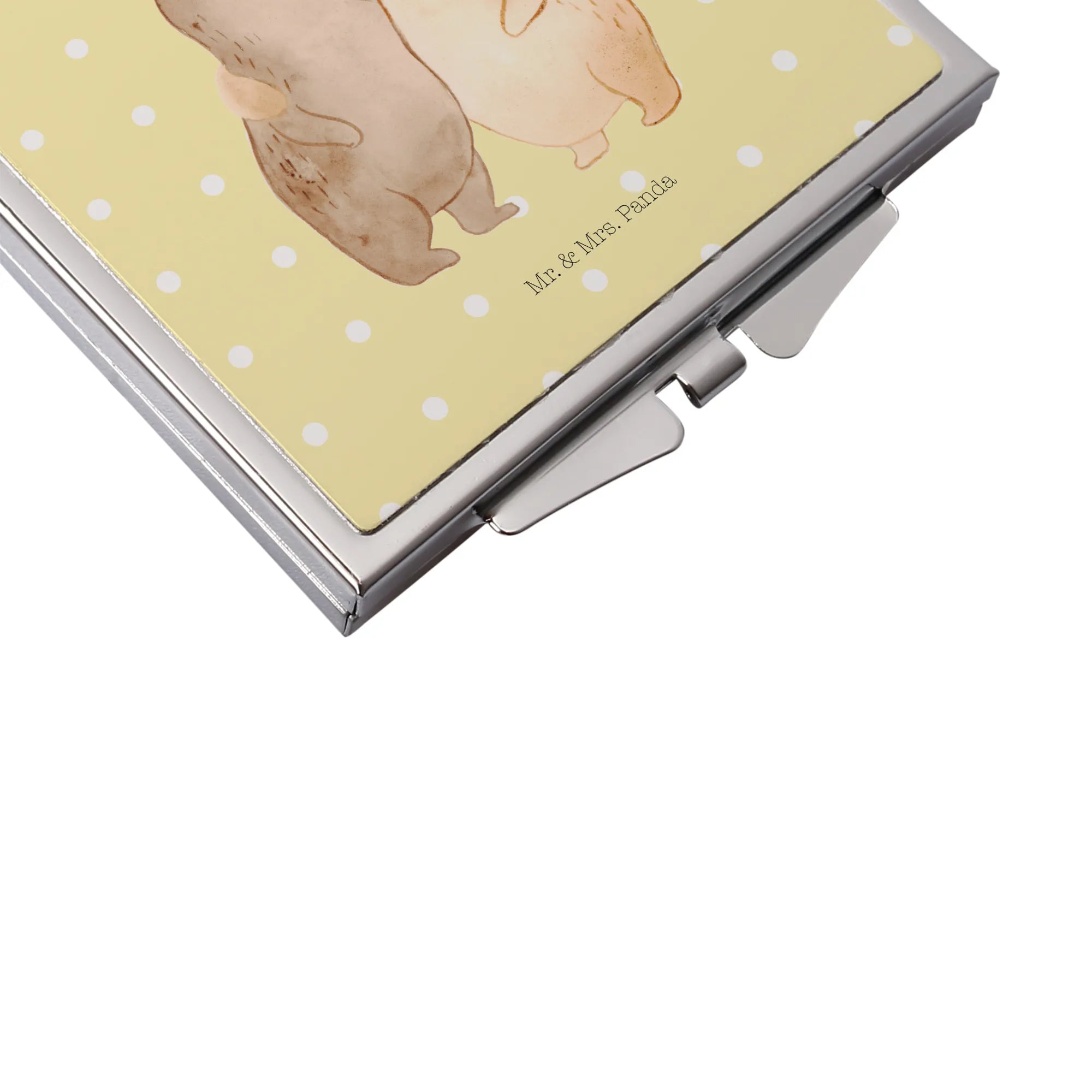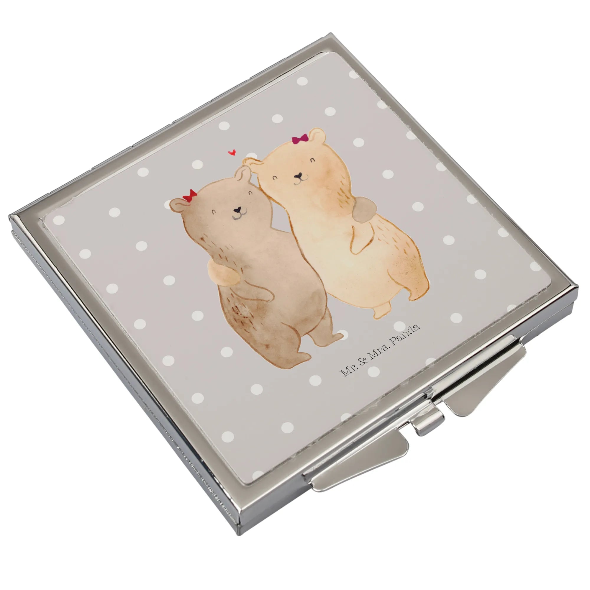 Kwadratowe lusterko do torebki Niedźwiedzie Siostry - z napisem - biały