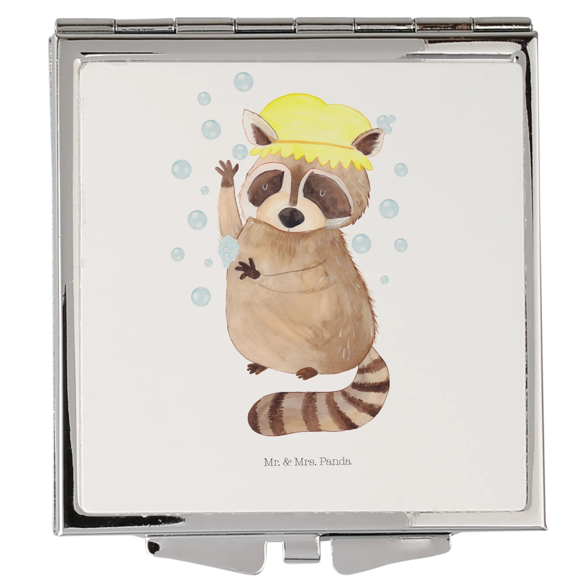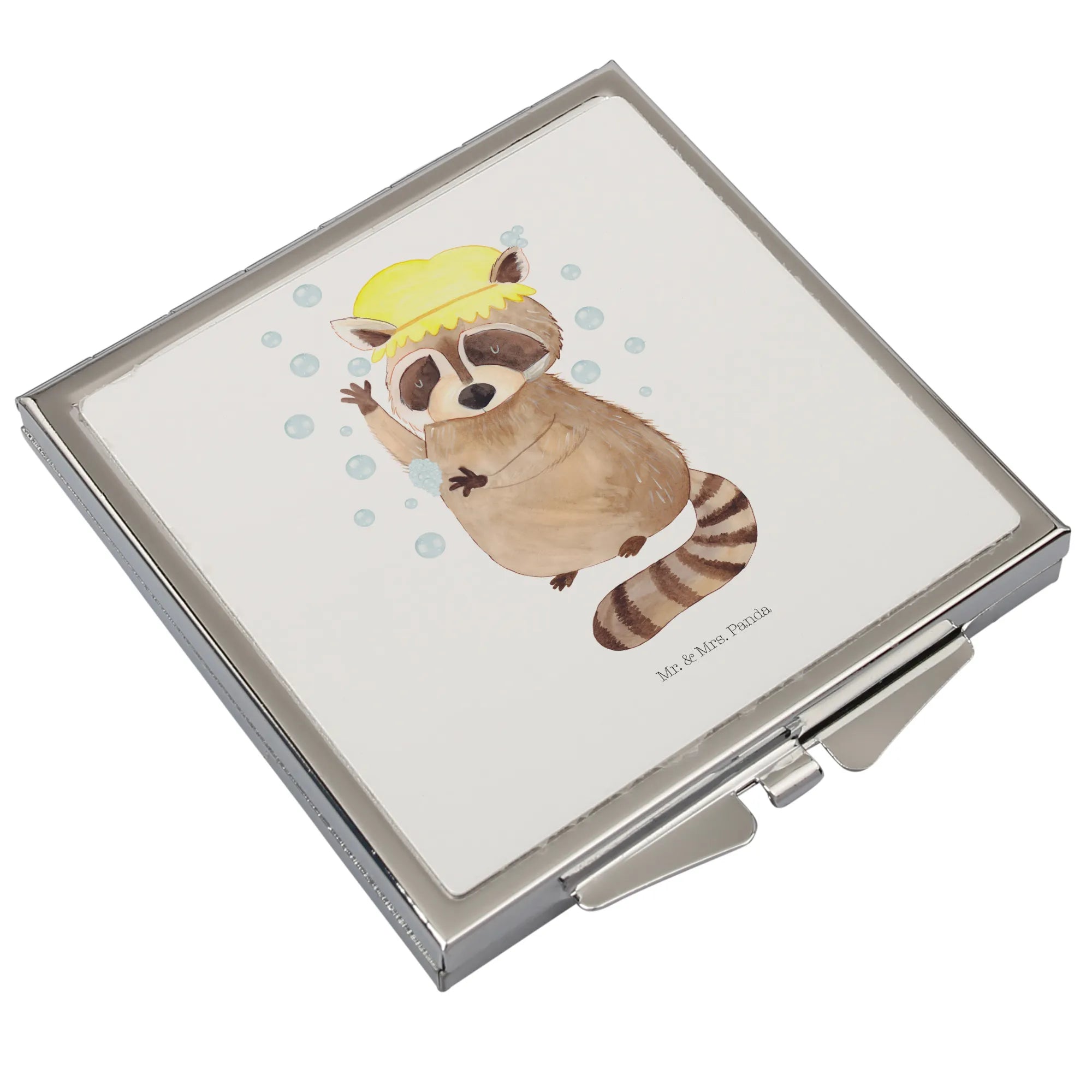 Kwadratowe lusterko do torebki Szop pracz - z napisem - biały