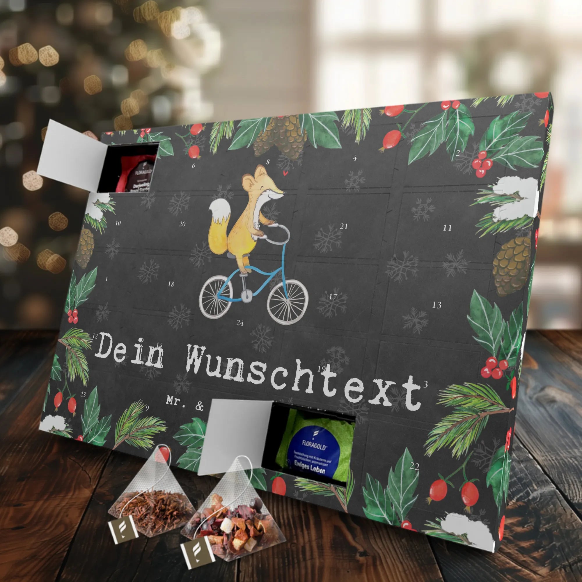 Der personalisierte Tee Adventskalender mit dem Motiv "Fuchs Fahrrad fahren ist meine Medizin" von Mr. & Mrs. Panda ist das perfekte Geschenk für alle Teeliebhaber und Sportbegeisterte. Wenn du auf der Suche nach einem originellen und liebevollen Geschenk für einen Radfahrer oder ein sportliches Familienmitglied bist, hast du hier genau das richtige Produkt gefunden!