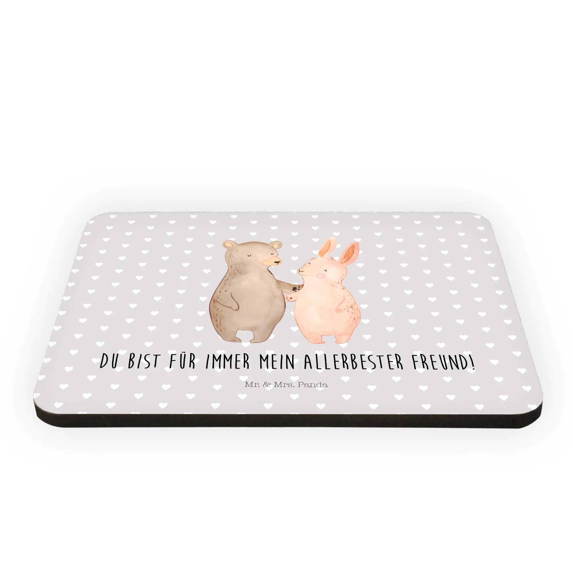 Magnes Niedźwiedź i królik Przytulać - z napisem - Pastelowy szary
