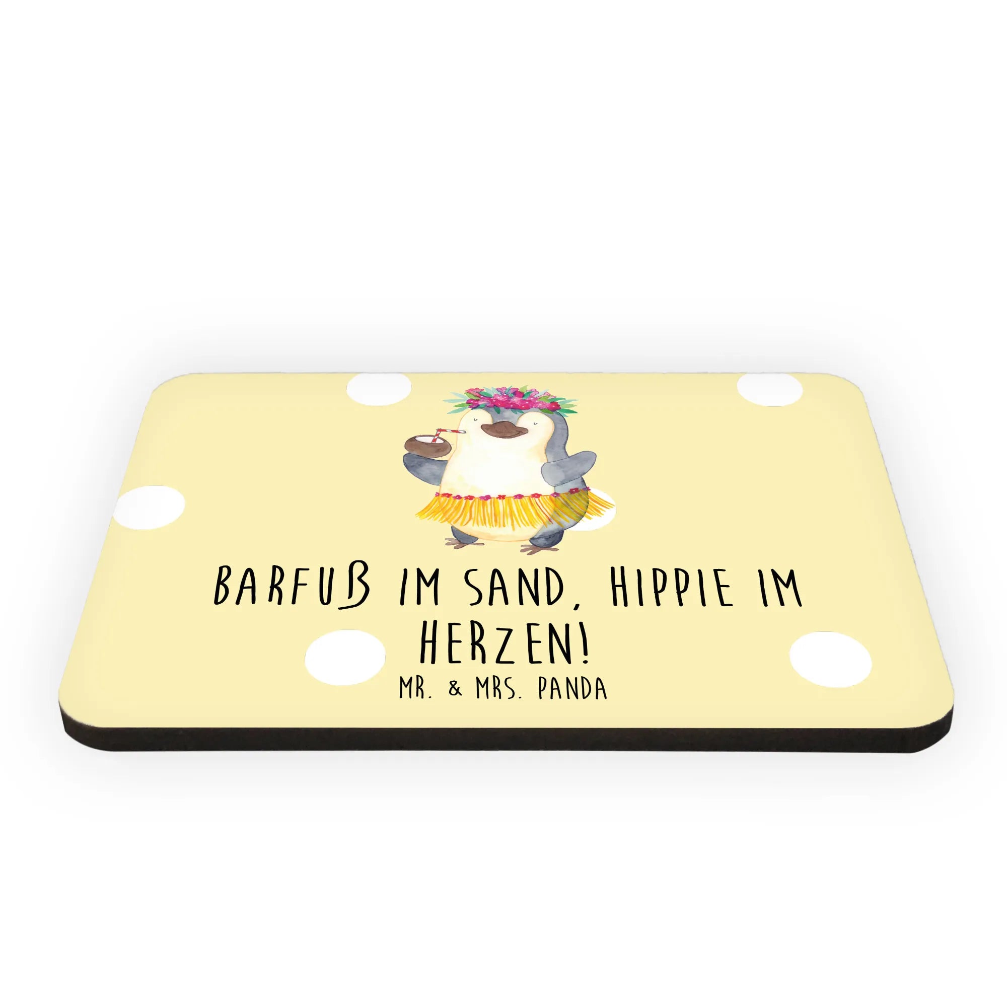 Der Kühlschrankmagnet von Mr. & Mrs. Panda mit dem fröhlichen Sommermotiv "Barfuß im Sand, Hippie im Herzen!" ist das perfekte Geschenk für alle, die den Sommer lieben. Ob du ihn für dich selbst kaufst oder einem lieben Menschen eine Freude machen möchtest, dieser Magnet bringt ein Stück Lebensfreude in jede Küche.