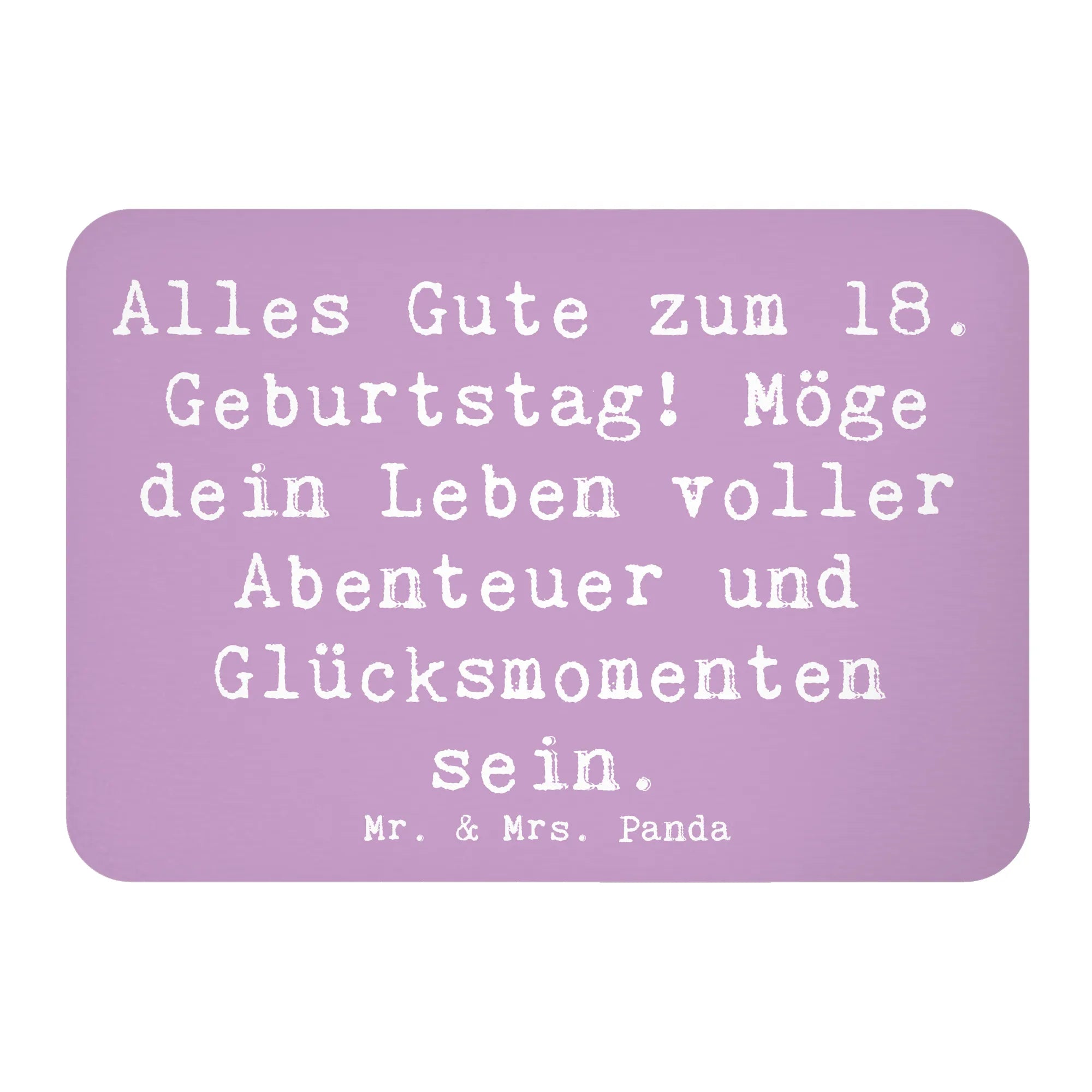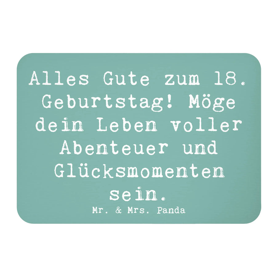 Der Magnet "Alles Gute zum 18. Geburtstag! Möge dein Leben voller Abenteuer und Glücksmomenten sein." von Mr. & Mrs. Panda ist nicht nur ein einfacher Kühlschrankmagnet – er ist ein liebevolles Geschenk zum 18. Geburtstag! 🎉 Mit einem fröhlichen Motiv und einer herzlichen Botschaft verleiht er jedem Kühlschrank und Whiteboard einen Hauch von Freude und Farbe.