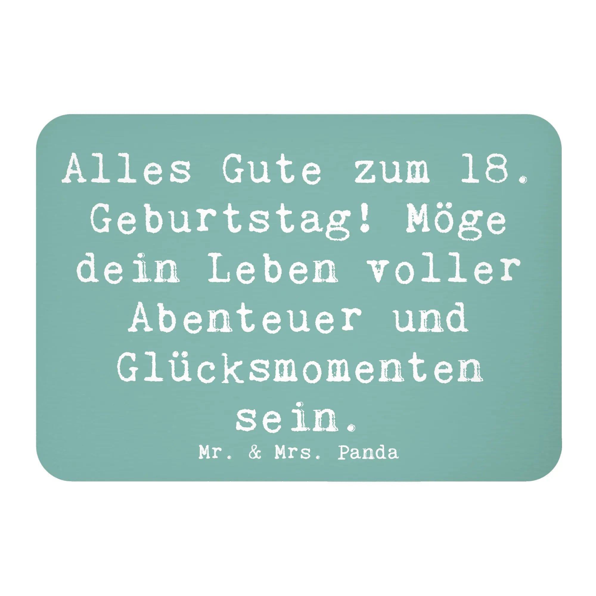 Suchst du nach dem perfekten Geschenk für den 18. Geburtstag? Dann ist der Kühlschrankmagnet von Mr. & Mrs. Panda genau das Richtige für dich! Mit dem liebevollen Slogan 'Alles Gute zum 18. Geburtstag! Möge dein Leben voller Abenteuer und Glücksmomenten sein.' ist dieser Magnet der ideale Begleiter für eine unvergessliche Geburtstagsfeier.