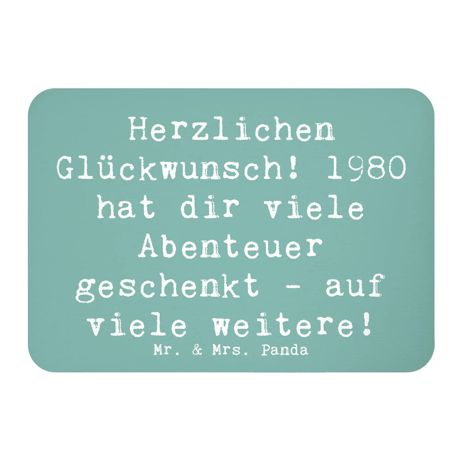 Entdecke den perfekten Kühlschrankmagneten von Mr. & Mrs. Panda, der dir jeden Tag ein Lächeln ins Gesicht zaubert! Dieser besondere Magnet feiert das Jahr 1980 mit einem liebevollen Spruch: "Herzlichen Glückwunsch! 1980 hat dir viele Abenteuer geschenkt - auf viele weitere!"