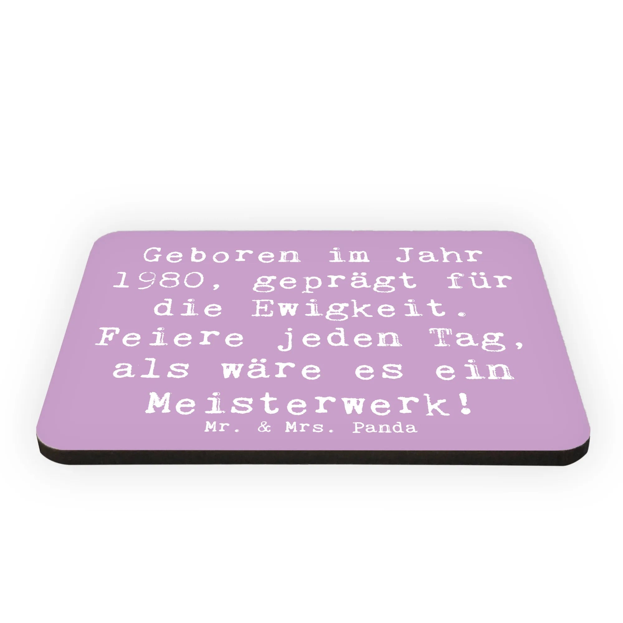 Der Kühlschrankmagnet "Geboren im Jahr 1980, geprägt für die Ewigkeit. Feiere jeden Tag, als wäre es ein Meisterwerk!" von Mr. & Mrs. Panda ist das perfekte Geschenk für all jene, die 1980 das Licht der Welt erblickt haben. Dieser liebevoll gestaltete Magnet ist nicht nur eine tolle Erinnerung an das Geburtsjahr, sondern auch ein wunderschönes Dekorationsstück für den Kühlschrank oder das Whiteboard.