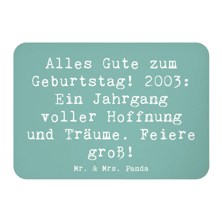 Suchst du das perfekte Geschenk für einen besonderen Menschen, der im Jahr 2003 das Licht der Welt erblickt hat? Dann ist unser Kühlschrankmagnet "Alles Gute zum Geburtstag! 2003: Ein Jahrgang voller Hoffnung und Träume. Feiere groß!" von Mr. & Mrs. Panda genau das Richtige für dich!