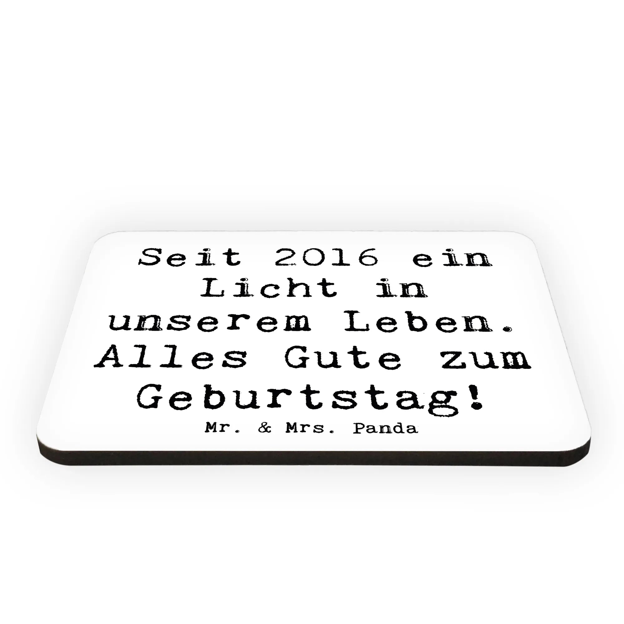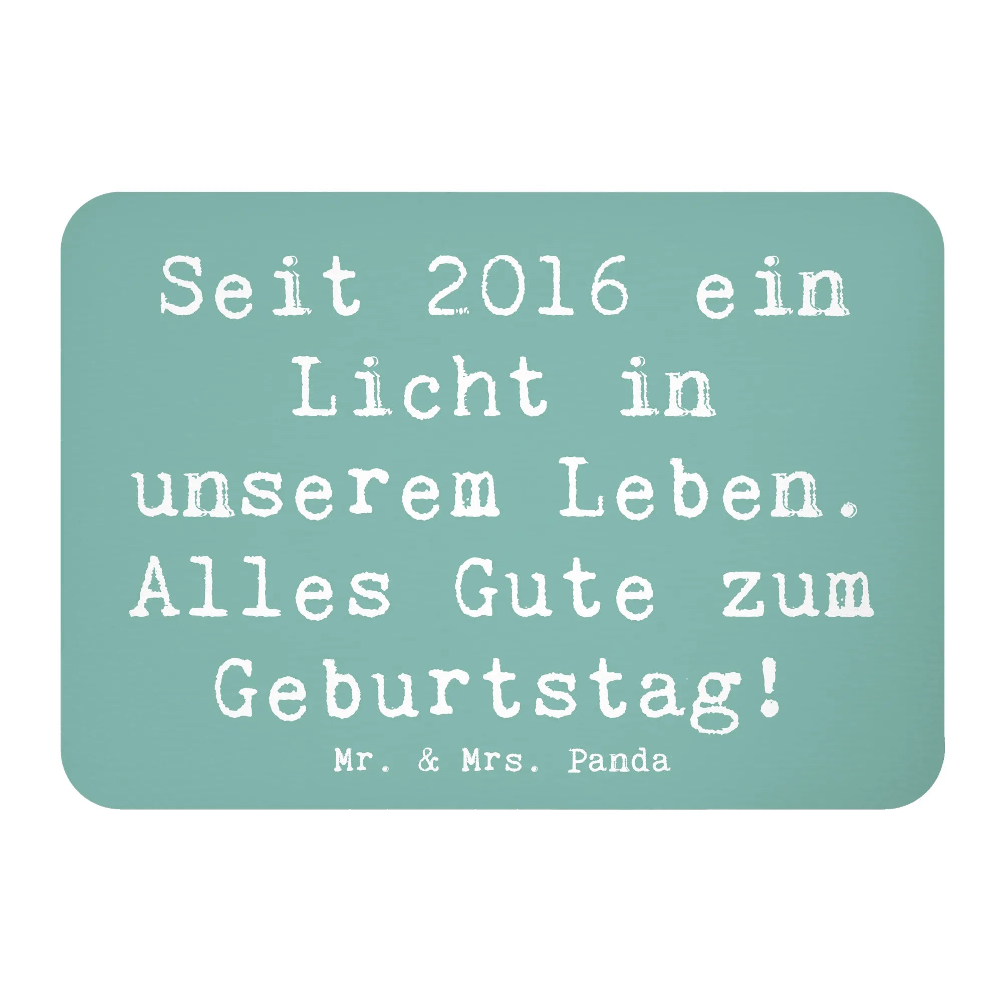 Der Kühlschrankmagnet "2016 Geburtstag" von Mr. & Mrs. Panda ist das perfekte Geschenk für alle, die diesen besonderen Jahrgang wertschätzen. Ob für Freunde, Familie oder Kollegen, dieser liebevoll gestaltete Magnet ist eine wunderbare Möglichkeit, um Geburtstagswünsche auszudrücken. Bedruckt mit dem Spruch "Seit 2016 ein Licht in unserem Leben. Alles Gute zum Geburtstag!" bringt er ein Lächeln auf jedes Gesicht. Die fröhlichen Farben und die süße Gestaltung machen ihn zudem zu einer ansprechenden Deko für deinen Kühlschrank, das Whiteboard oder die Pinnwand.