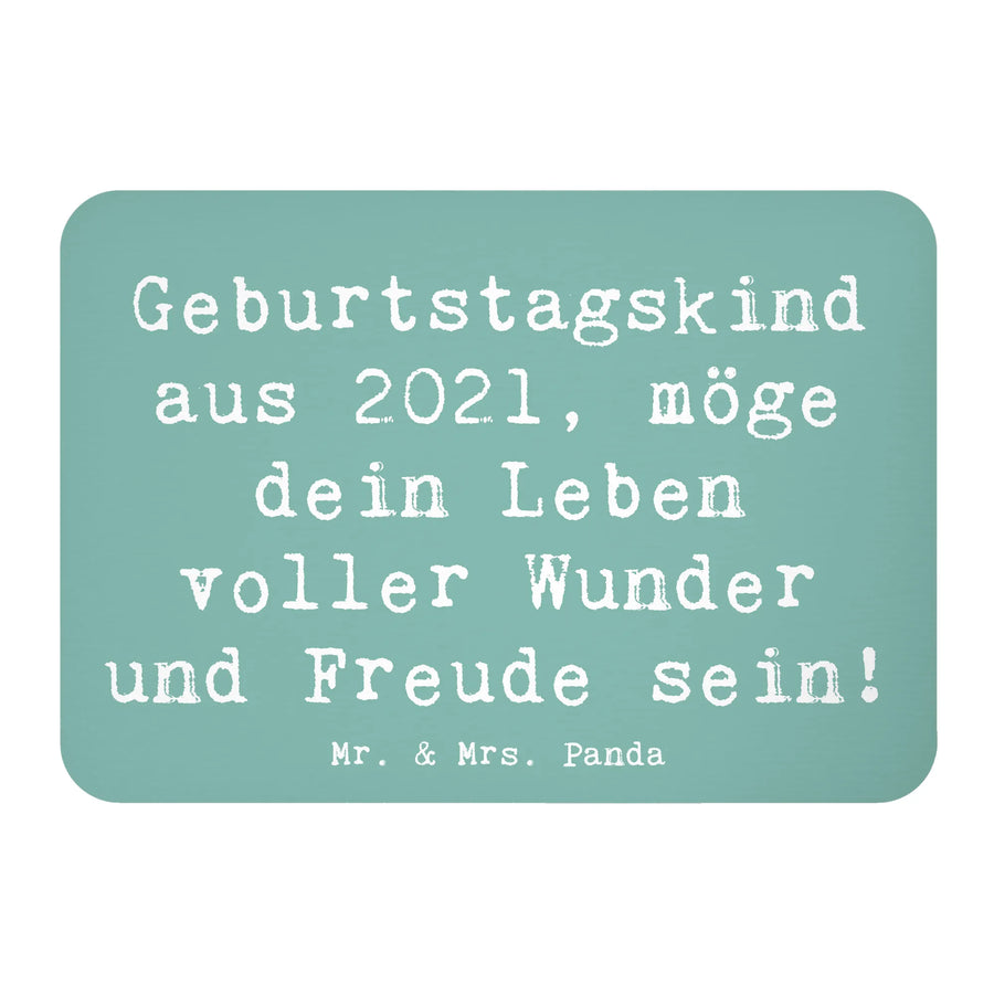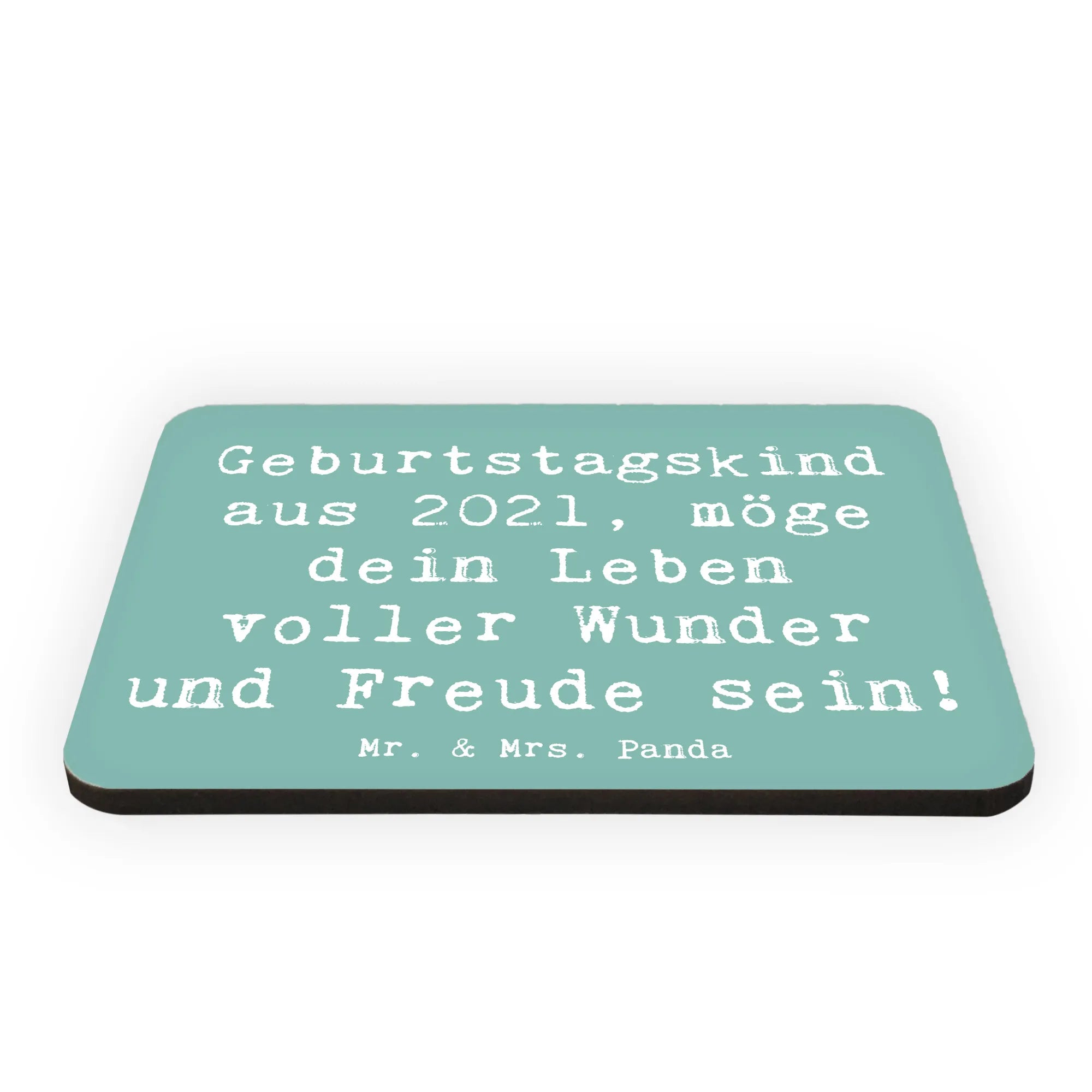 Der Kühlschrankmagnet "Geburtstagskind aus 2021, möge dein Leben voller Wunder und Freude sein!" von Mr. & Mrs. Panda ist das perfekte Geschenk für alle, die 2021 geboren wurden. Dieser liebevoll gestaltete Magnet kombiniert Funktionalität und eine herzliche Botschaft und ist ideal, um Erinnerungen festzuhalten. Egal ob als persönliches Geschenk für das Geburtstagskind oder als dekorativer Hingucker an deinem Kühlschrank - dieser Magnet bringt Freude in jeden Haushalt.