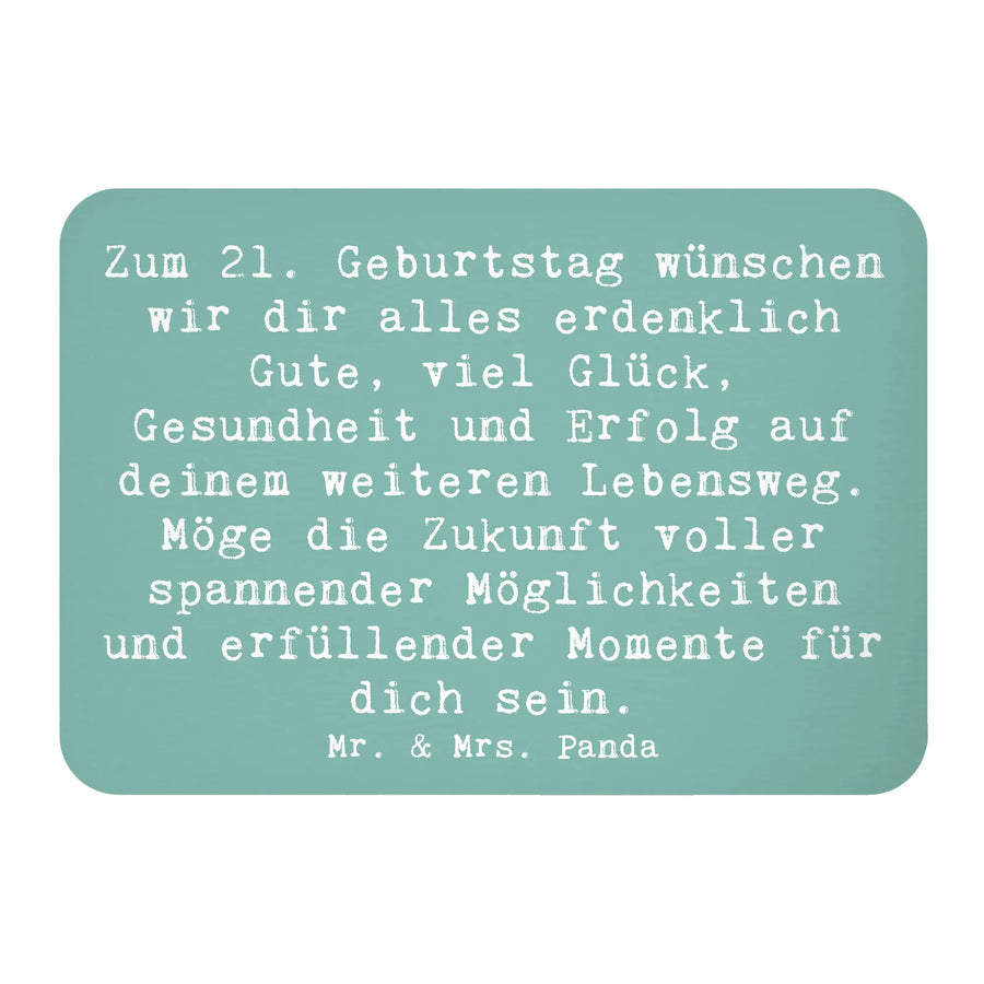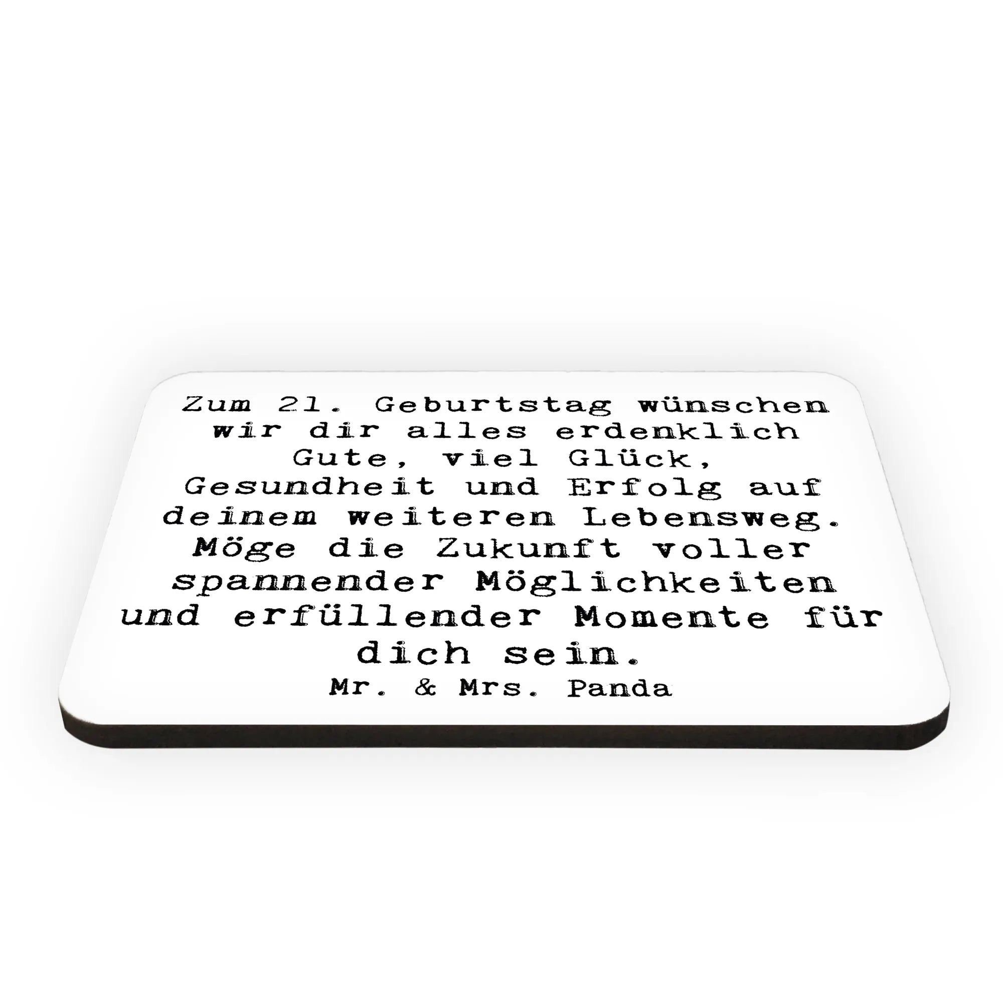 Du suchst nach dem perfekten Geschenk zum 21. Geburtstag? Dann ist der Kühlschrankmagnet von Mr. & Mrs. Panda genau das Richtige für dich! Mit seinem liebevollen Spruch "Zum 21. Geburtstag wünschen wir dir alles erdenklich Gute, viel Glück, Gesundheit und Erfolg auf deinem weiteren Lebensweg. Möge die Zukunft voller spannender Möglichkeiten und erfüllender Momente für dich sein." zaubert dieser Magnet ein Lächeln auf das Gesicht des Geburtstagskindes und ist ein tolles Souvenir für diesen speziellen Tag.
