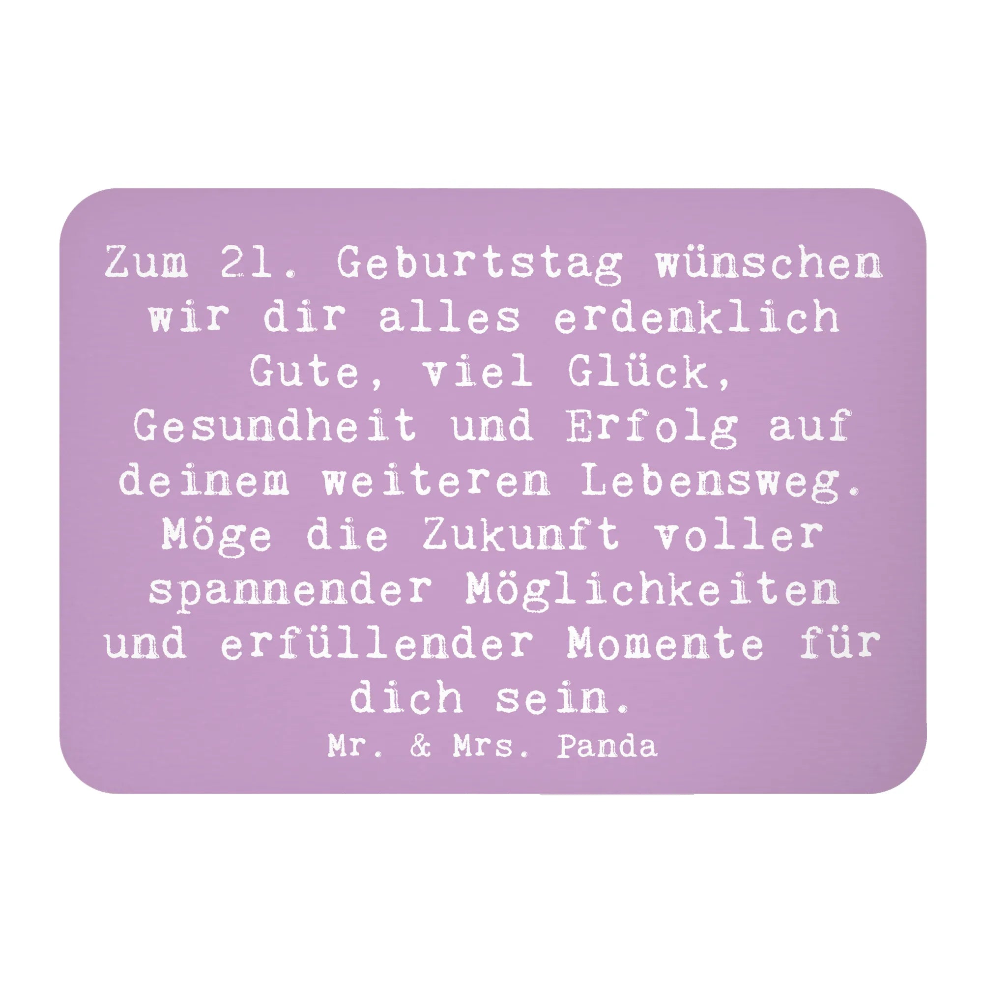 Suchst du nach dem perfekten Geschenk zum 21. Geburtstag? Dann ist der Kühlschrankmagnet von Mr. & Mrs. Panda genau das Richtige! Mit seinem liebevollen Spruch "Zum 21. Geburtstag wünschen wir dir alles erdenklich Gute, viel Glück, Gesundheit und Erfolg auf deinem weiteren Lebensweg. Möge die Zukunft voller spannender Möglichkeiten und erfüllender Momente für dich sein." bringt dieser Magnet Freude und gute Wünsche in jeden Haushalt.