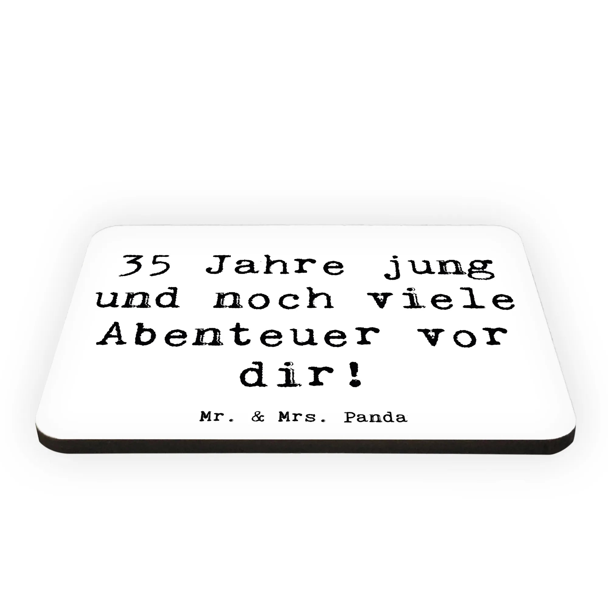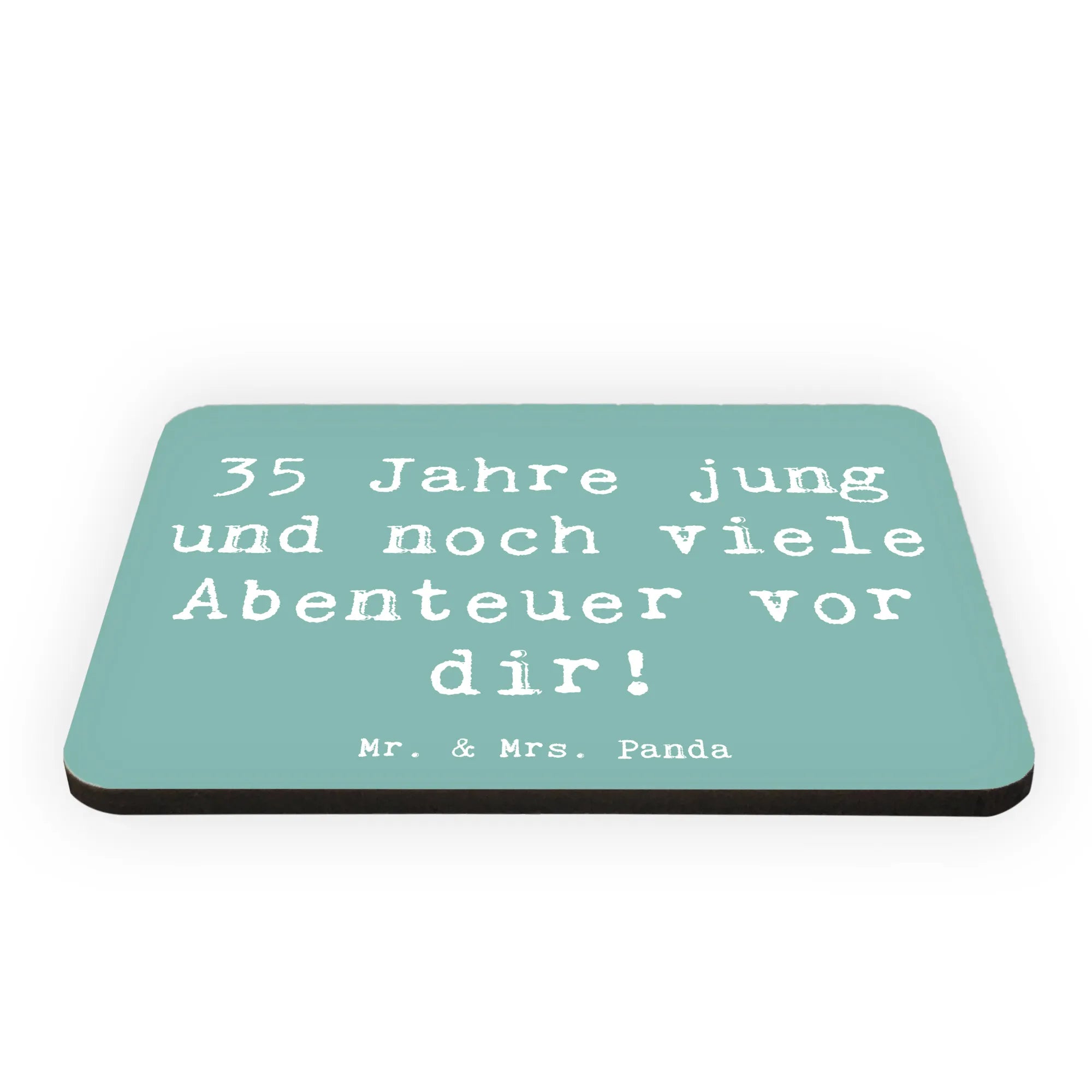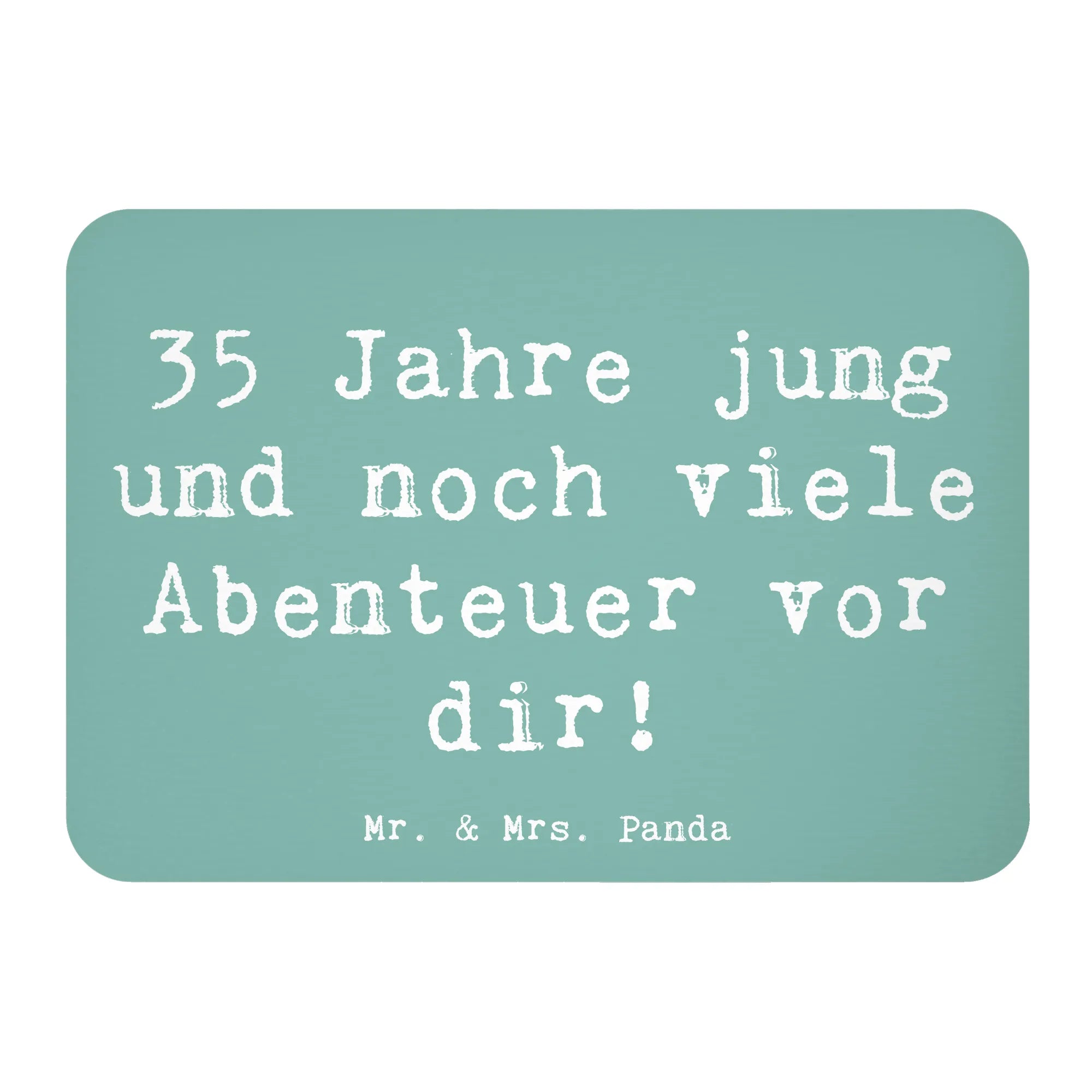Der Kühlschrankmagnet "35 Jahre jung und noch viele Abenteuer vor dir!" von Mr. & Mrs. Panda ist das perfekte Geschenk für alle, die ihren 35. Geburtstag feiern. Mit einem liebevoll handgezeichneten Motiv bringt dieser Magnet nicht nur Freude in die Küche, sondern ist auch ein fröhlicher Weg, um den Geburtstag gebührend zu feiern.