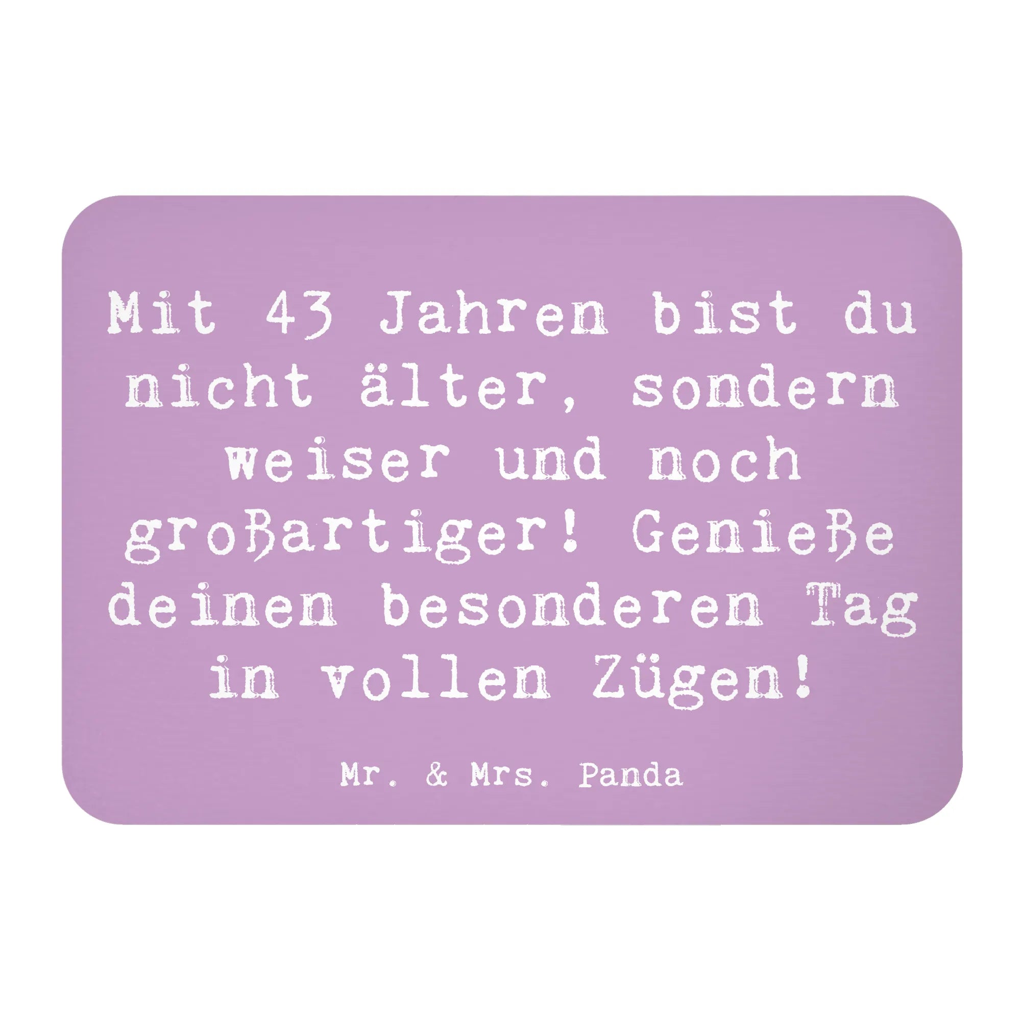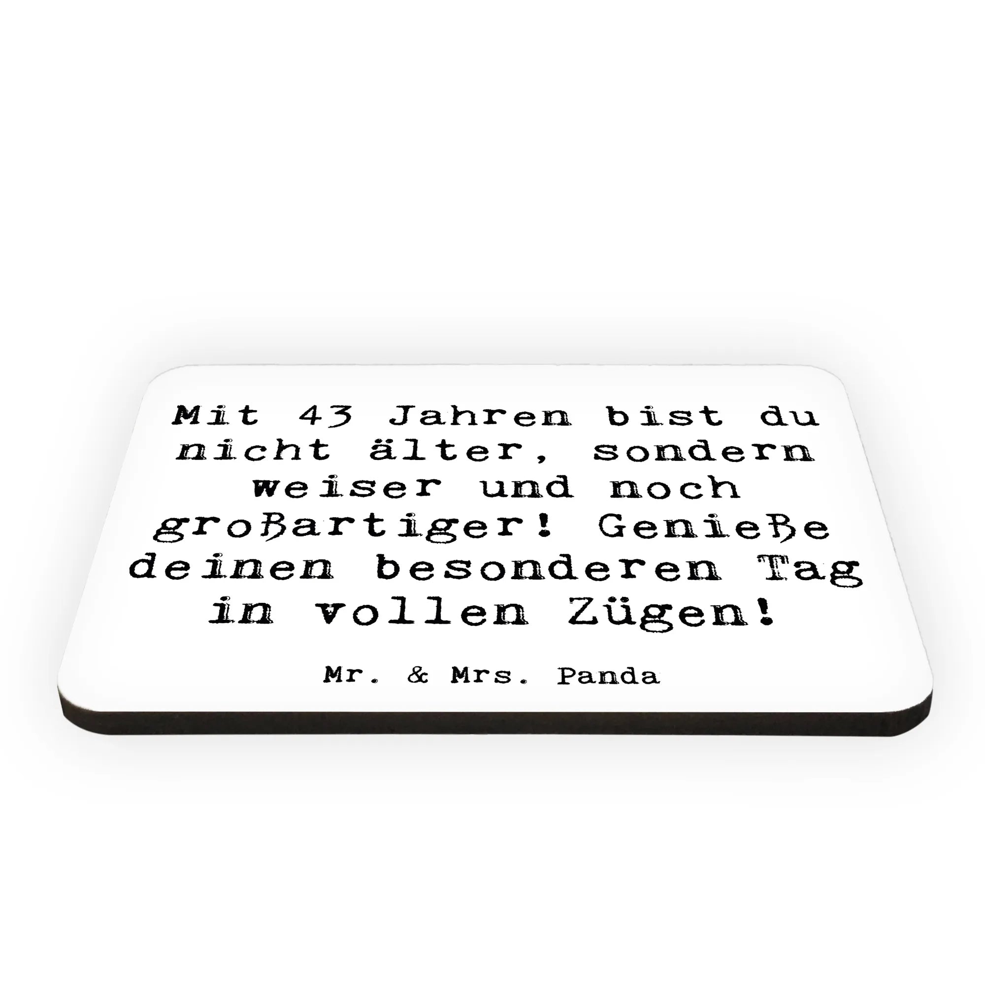 Der Kühlschrankmagnet "Mit 43 Jahren bist du nicht älter, sondern weiser und noch großartiger! Genieße deinen besonderen Tag in vollen Zügen!" von Mr. & Mrs. Panda ist das ideale Geschenk für all jene, die ihren 43. Geburtstag feiern möchten.
