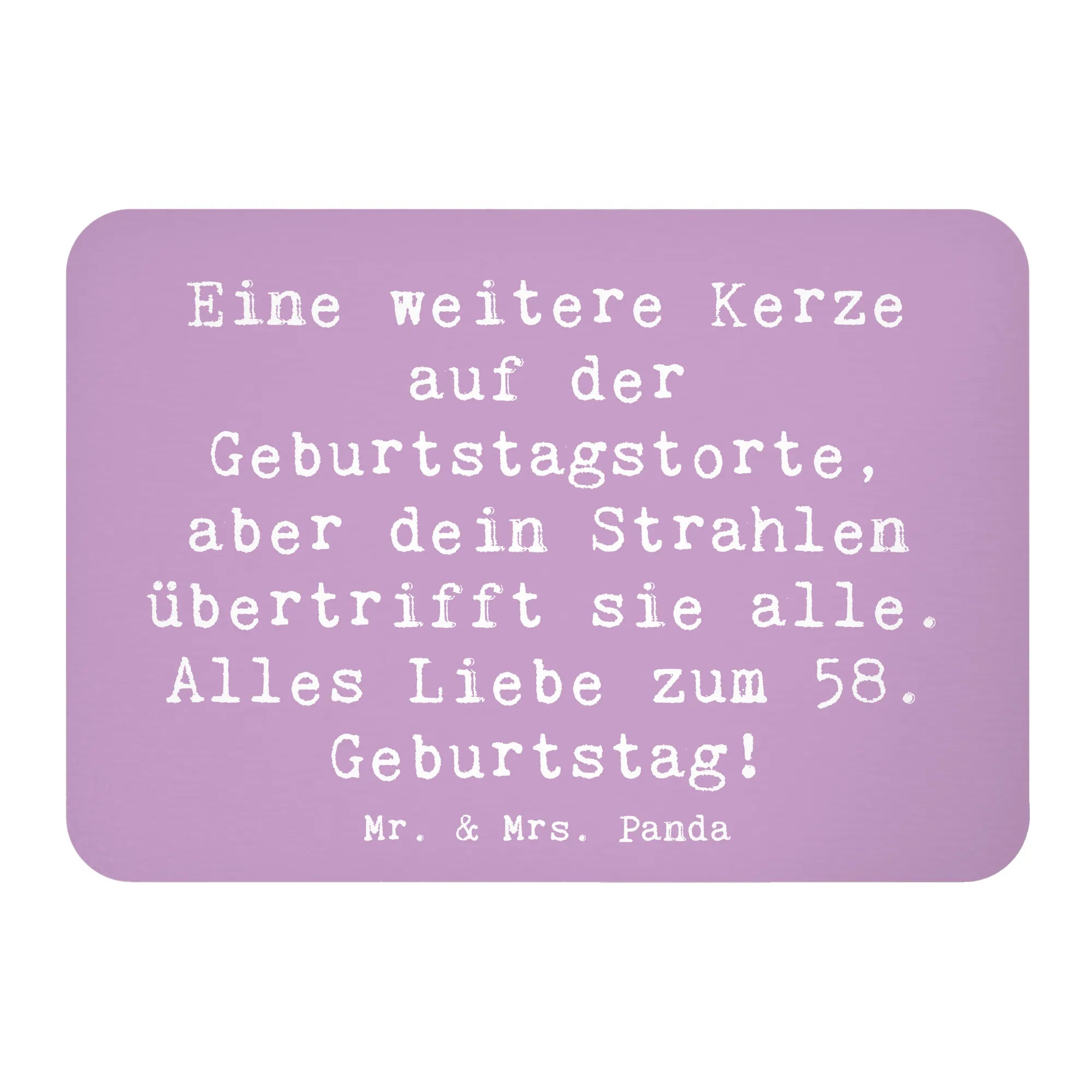 Der Kühlschrankmagnet zum 58. Geburtstag von Mr. & Mrs. Panda ist das perfekte Geschenk für alle, die diesen besonderen Tag gebührend feiern möchten. Mit dem liebevoll gestalteten Motiv und dem herzlichen Spruch "Eine weitere Kerze auf der Geburtstagstorte, aber dein Strahlen übertrifft sie alle. Alles Liebe zum 58. Geburtstag!" wird dieser Magnet schnell zum Highlight jeder Küchendekoration.