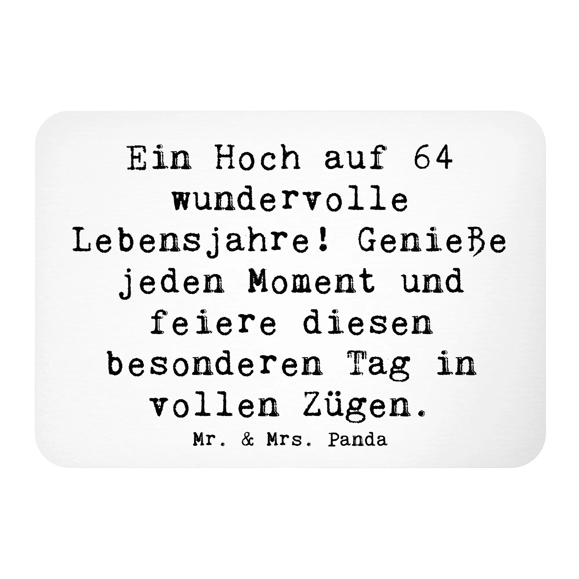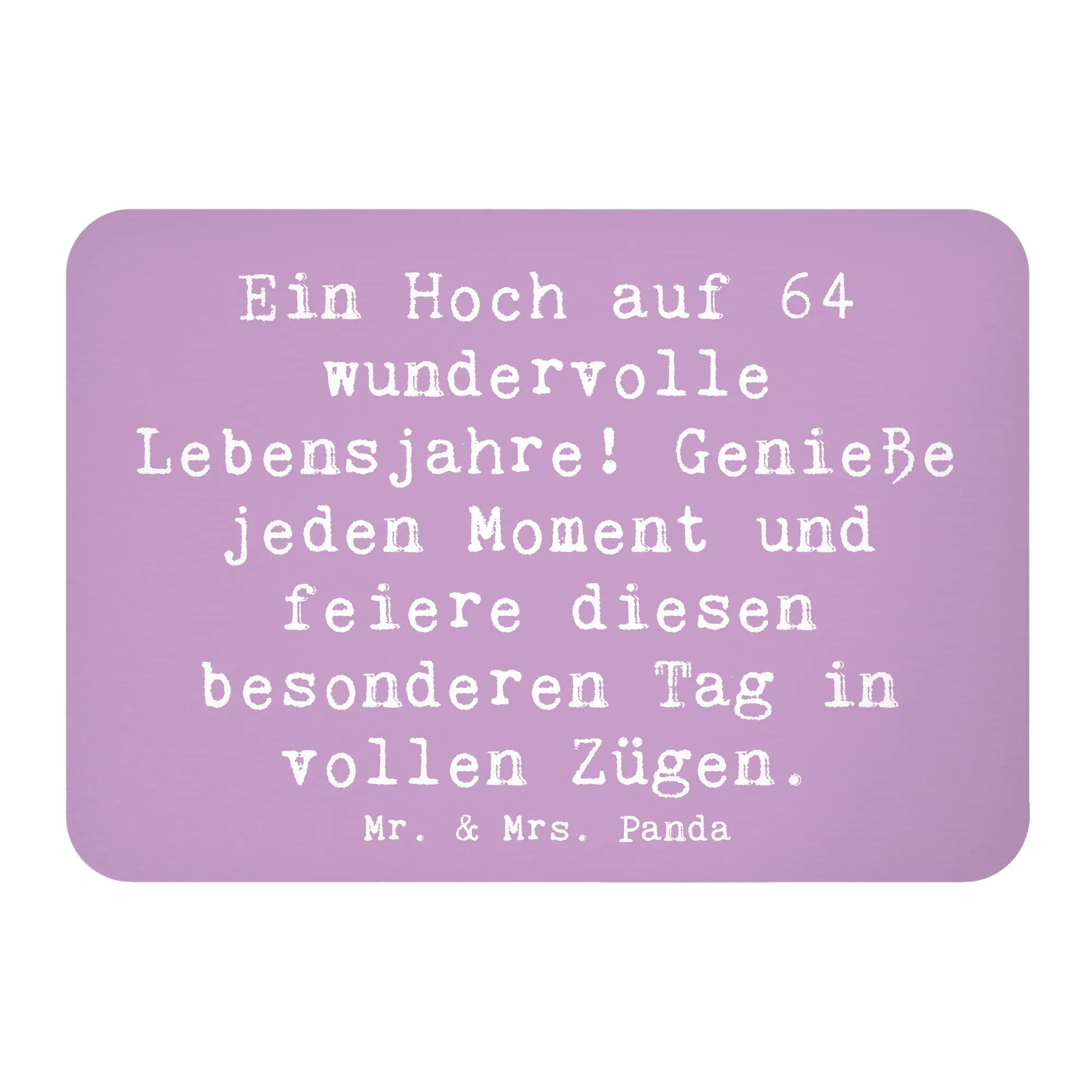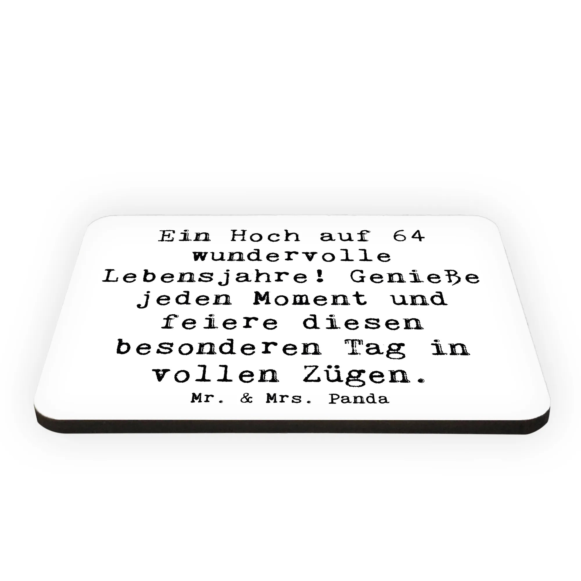 Der Kühlschrankmagnet zum 64. Geburtstag von Mr. & Mrs. Panda ist das perfekte Geschenk für all jene, die diesen besonderen Tag feiern möchten! Das schöne Design mit dem Spruch "Ein Hoch auf 64 wundervolle Lebensjahre! Genieße jeden Moment und feiere diesen besonderen Tag in vollen Zügen." macht ihn zum idealen Erinnerungsstück für Geburtstagskind und Gäste.