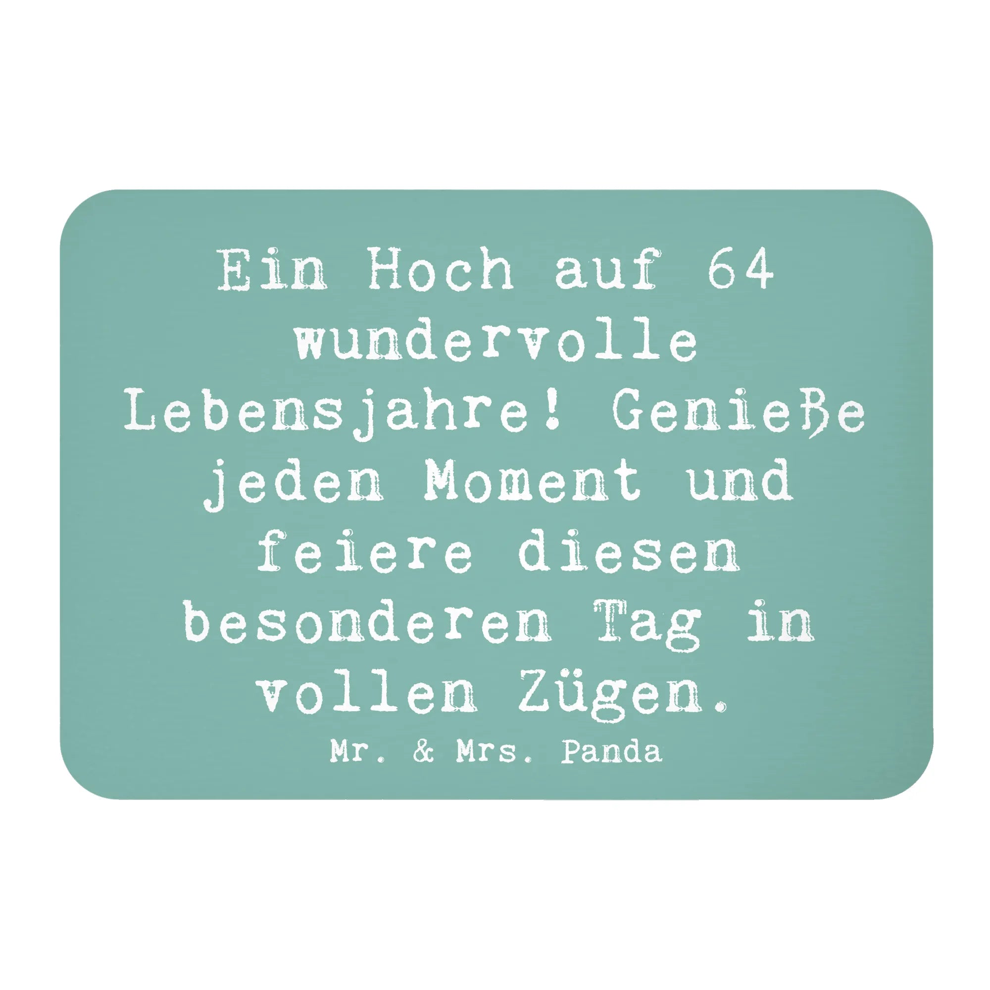 Ob für die Küche, als Deko für eine Geburtstagsfeier oder einfach als tägliche Erinnerung, wie wichtig es ist, jeden Moment zu genießen – dieser Magnet hat es in sich, um Freude zu verbreiten. Lass Dich von den niedlichen, handgezeichneten Aquarellmotiven von Mrs. Panda inspirieren und mache den 64. Geburtstag zu einem unvergesslichen Ereignis.