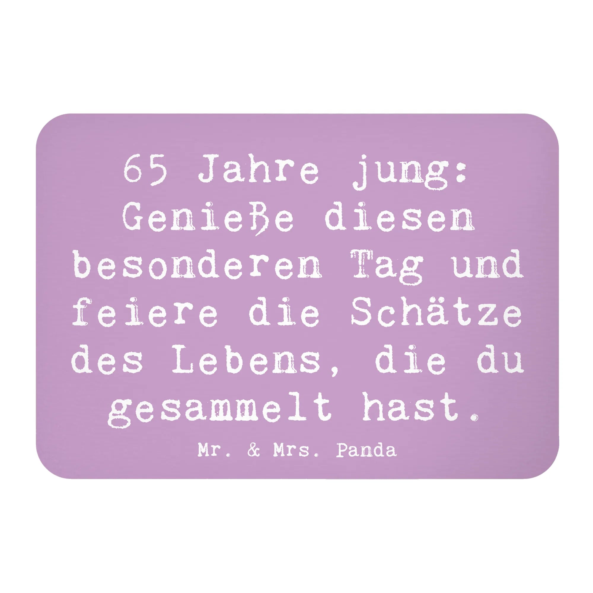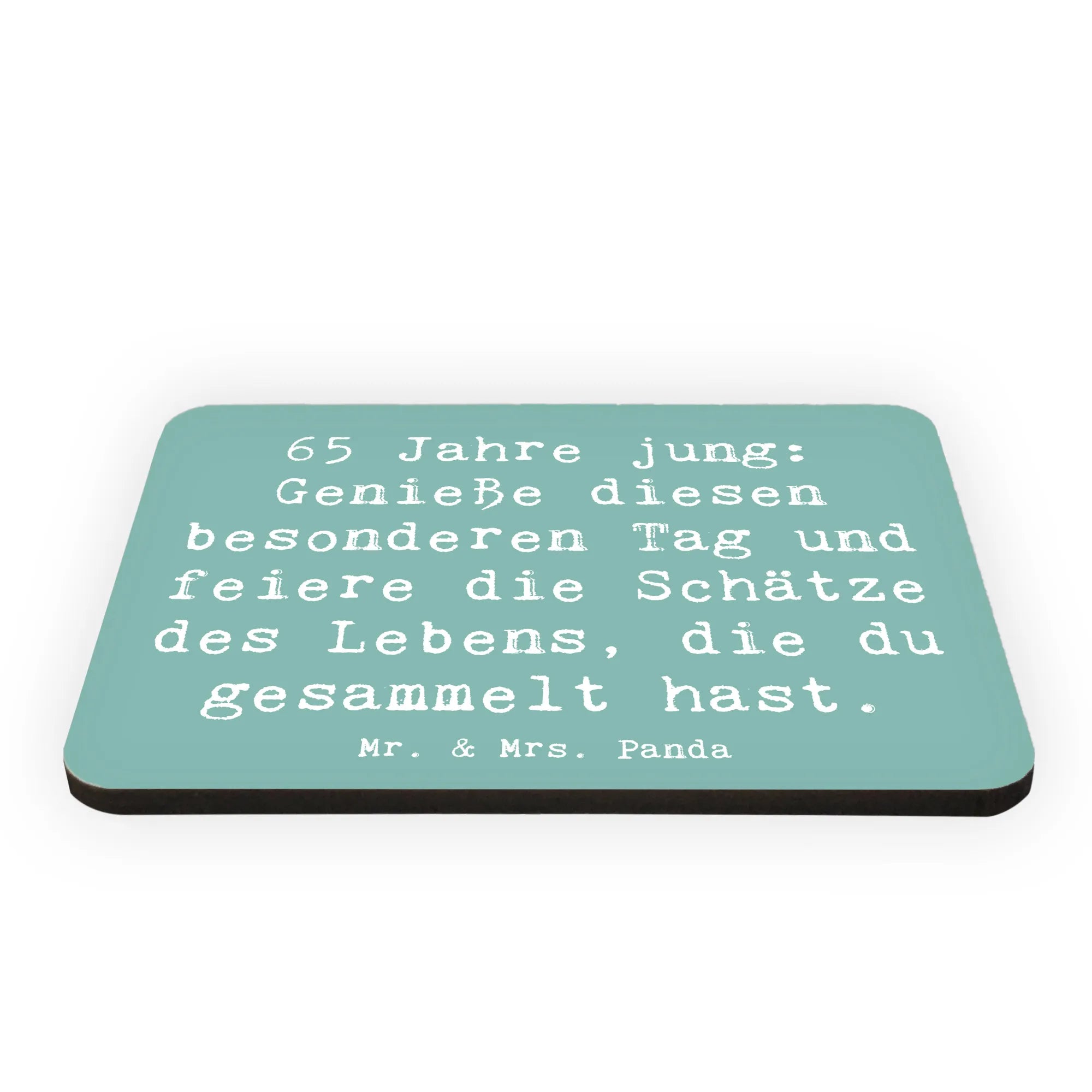 Dieser wunderschöne Kühlschrankmagnet von Mr. & Mrs. Panda ist das perfekte Geschenk zum 65. Geburtstag. Mit dem liebevollen Slogan "65 Jahre jung: Genieße diesen besonderen Tag und feiere die Schätze des Lebens, die du gesammelt hast." wird dieser Magnet zum zeitlosen Erinnerungsstück, das die Lebensfreude des Geburtstagskindes widerspiegelt.