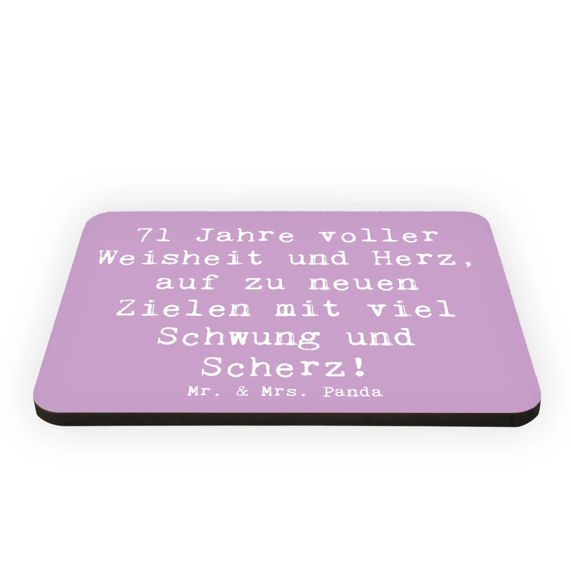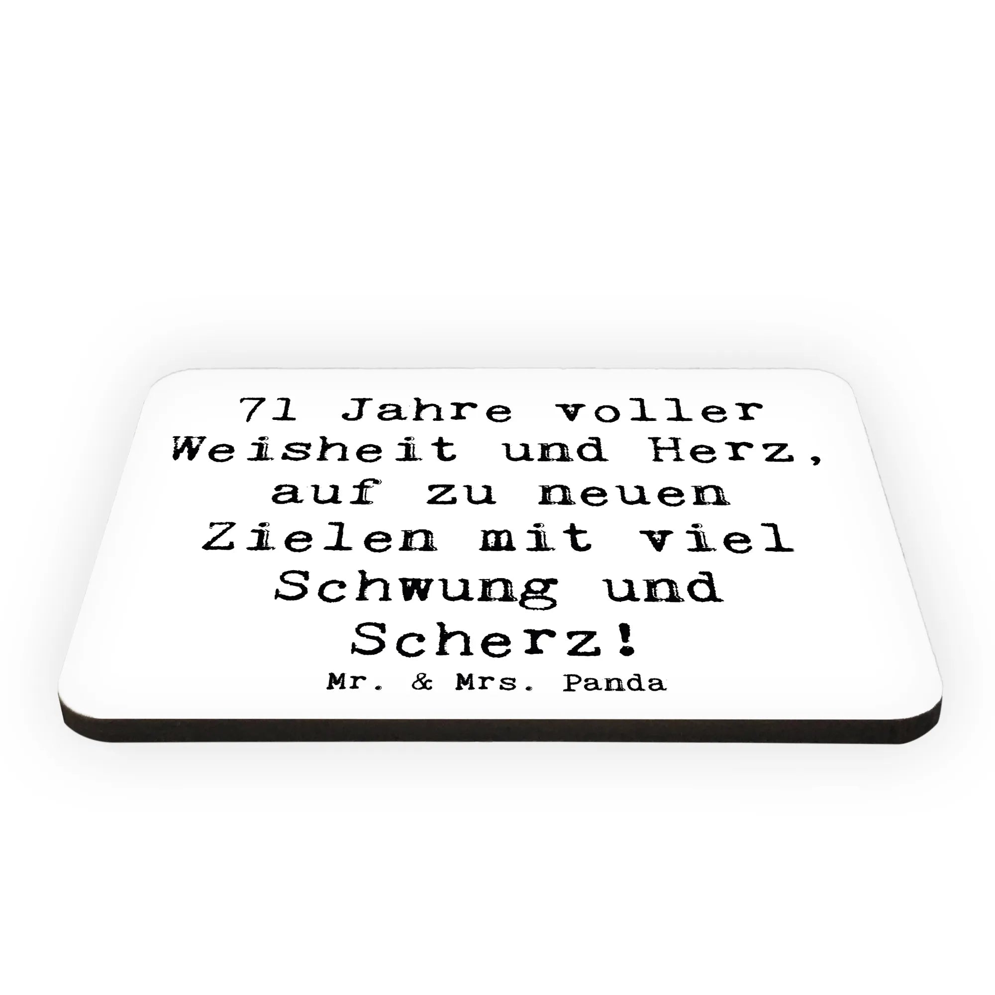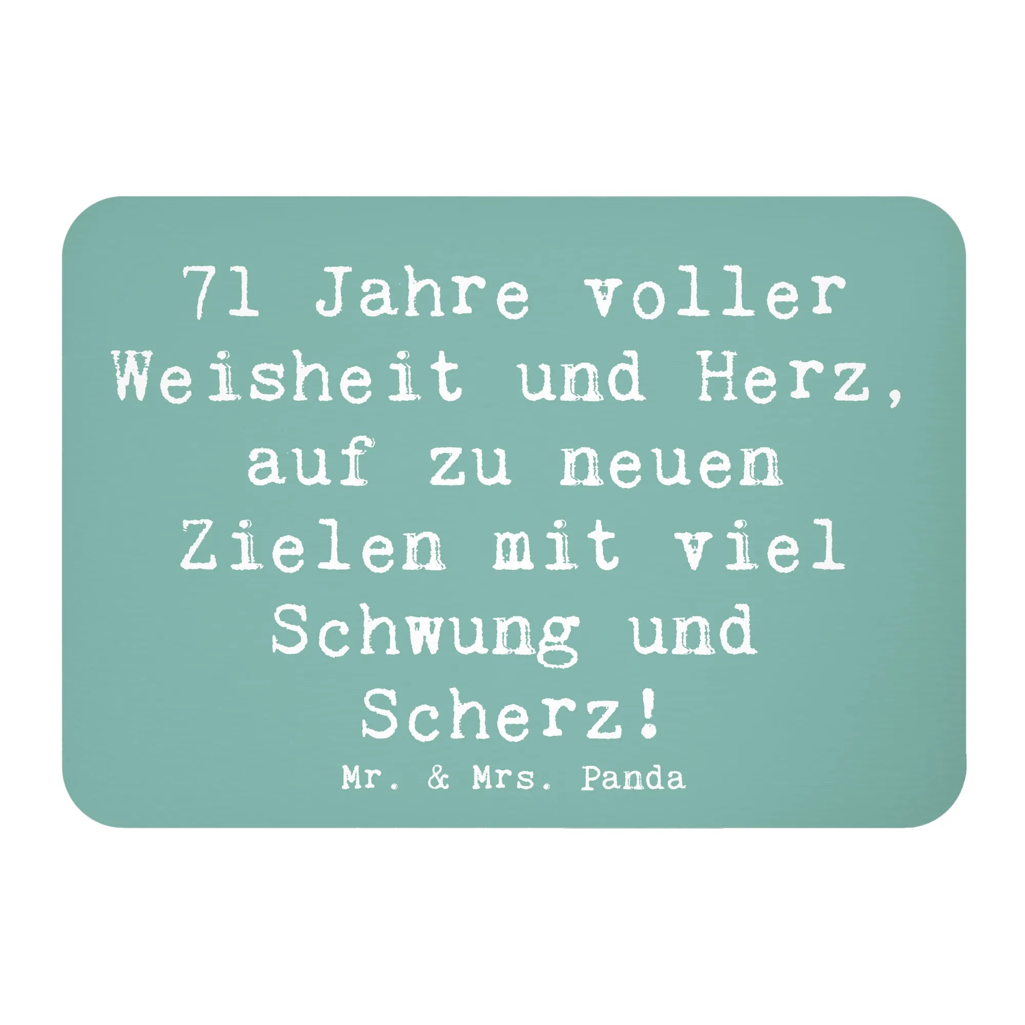 Der Kühlschrankmagnet '71 Jahre voller Weisheit und Herz, auf zu neuen Zielen mit viel Schwung und Scherz!' aus der besonderen Kollektion von Mr. & Mrs. Panda ist das perfekte Geschenk für all jene, die diesen besonderen Geburtstag auf eine ganz besondere Weise feiern möchten. Dieser Magnet ist nicht nur ein praktisches Accessoire für deinen Kühlschrank oder dein Whiteboard, sondern auch ein wunderschönes Stück Erinnerung an einen unvergesslichen Tag. Ob für Freunde, Verwandte oder liebe Menschen, die 71 Jahre jung werden – mit diesem Magneten schenkst du Freude und Liebe in einer zauberhaften Form.