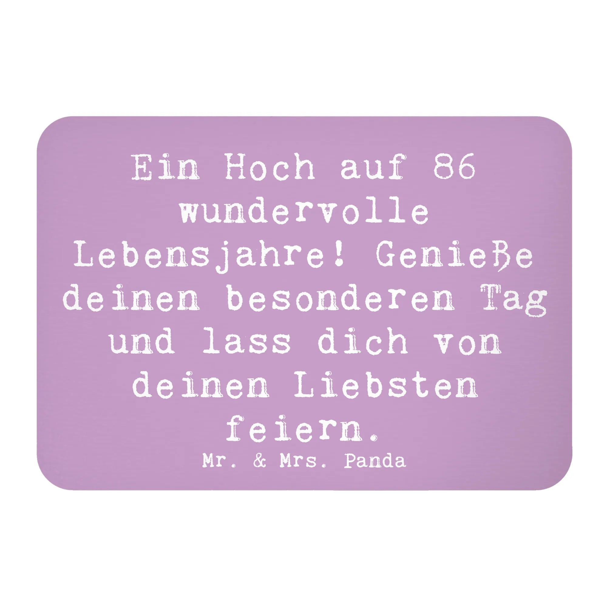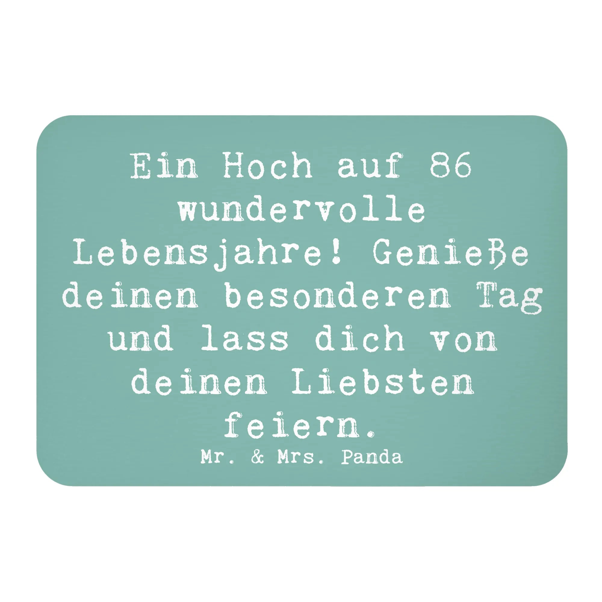 Ob zum 86. Geburtstag einer Freundin, eines Familienmitglieds oder sogar eines Kollegen, dieser Magnet zaubert jedem ein Lächeln ins Gesicht und wird zum unvergesslichen Geschenk! Er ist ein Teil der Geburtstag Alter Kollektion von Mr. & Mrs. Panda, die darauf abzielt, jeden Geburtstag zu einem Erlebnis zu machen.