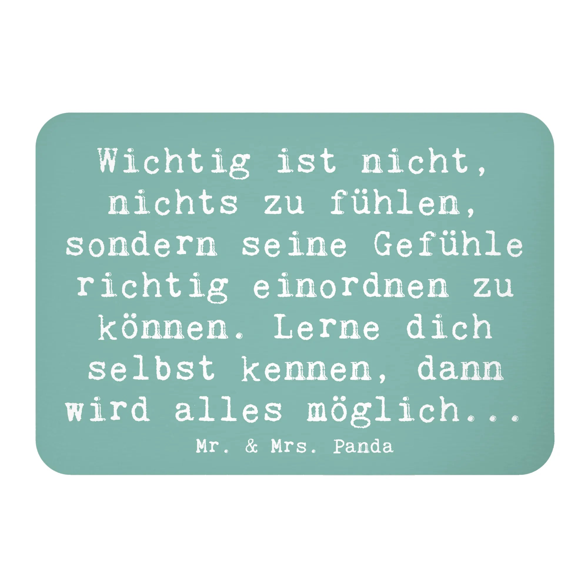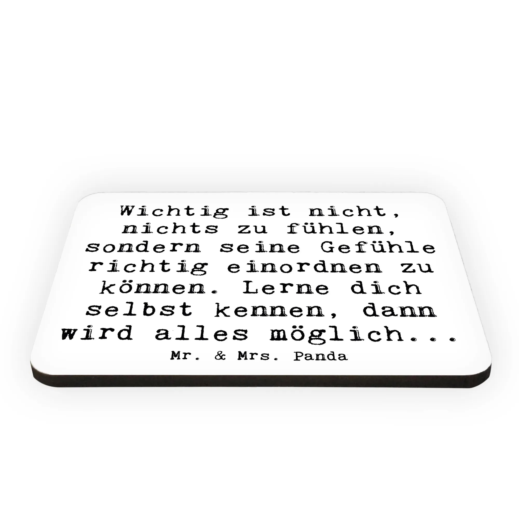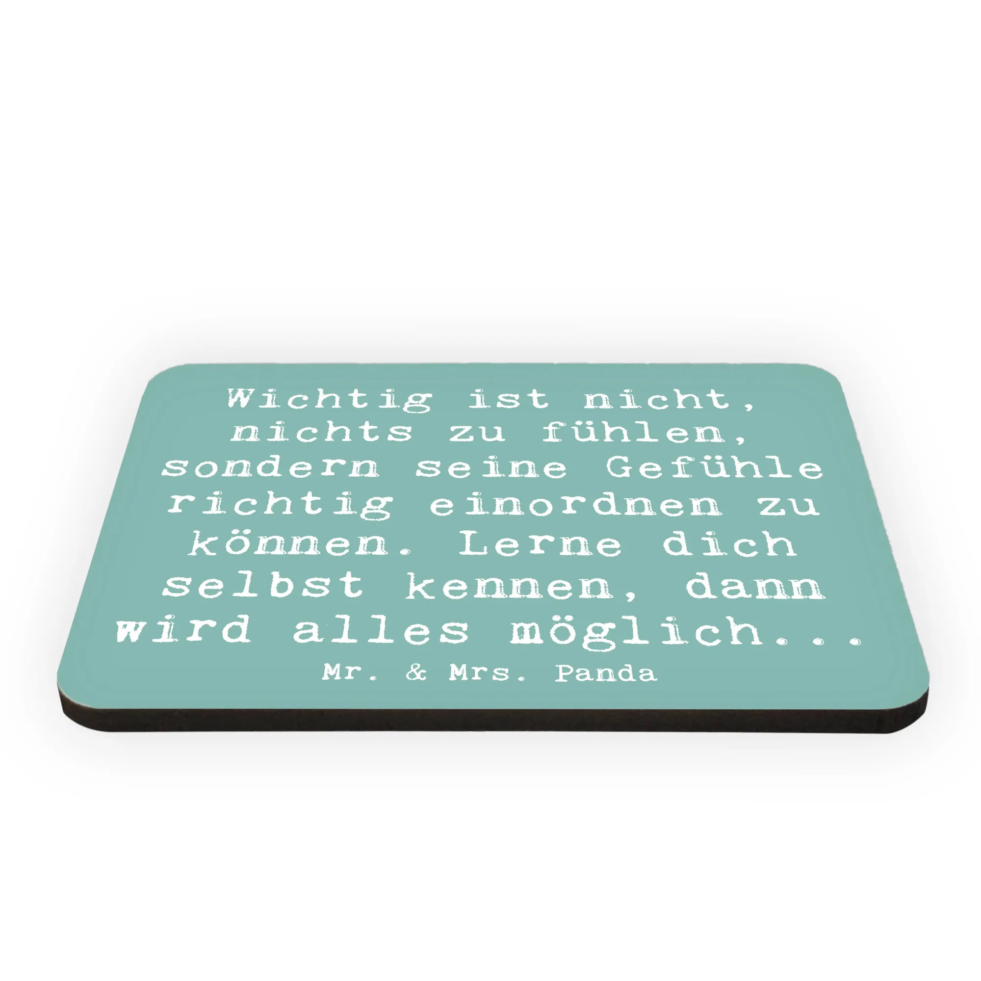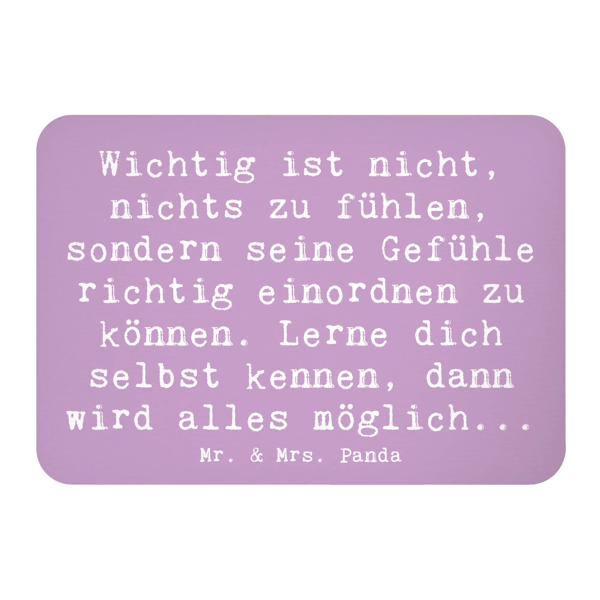 Mr. & Mrs. Panda Magnet "Emotionen ausdrücken" aus der Mutmacher-Kollektion – ein kleiner, liebevoll gestalteter Dekomagnet mit großer Wirkung. Auf dem sanften Hintergrund Lavendeltraum steht der tröstliche Spruch: „Wichtig ist nicht, nichts zu fühlen, sondern seine Gefühle richtig einordnen zu können. Lerne dich selbst kennen, dann wird alles möglich...“ Eine Botschaft, die Mut macht und Zuversicht schenkt.