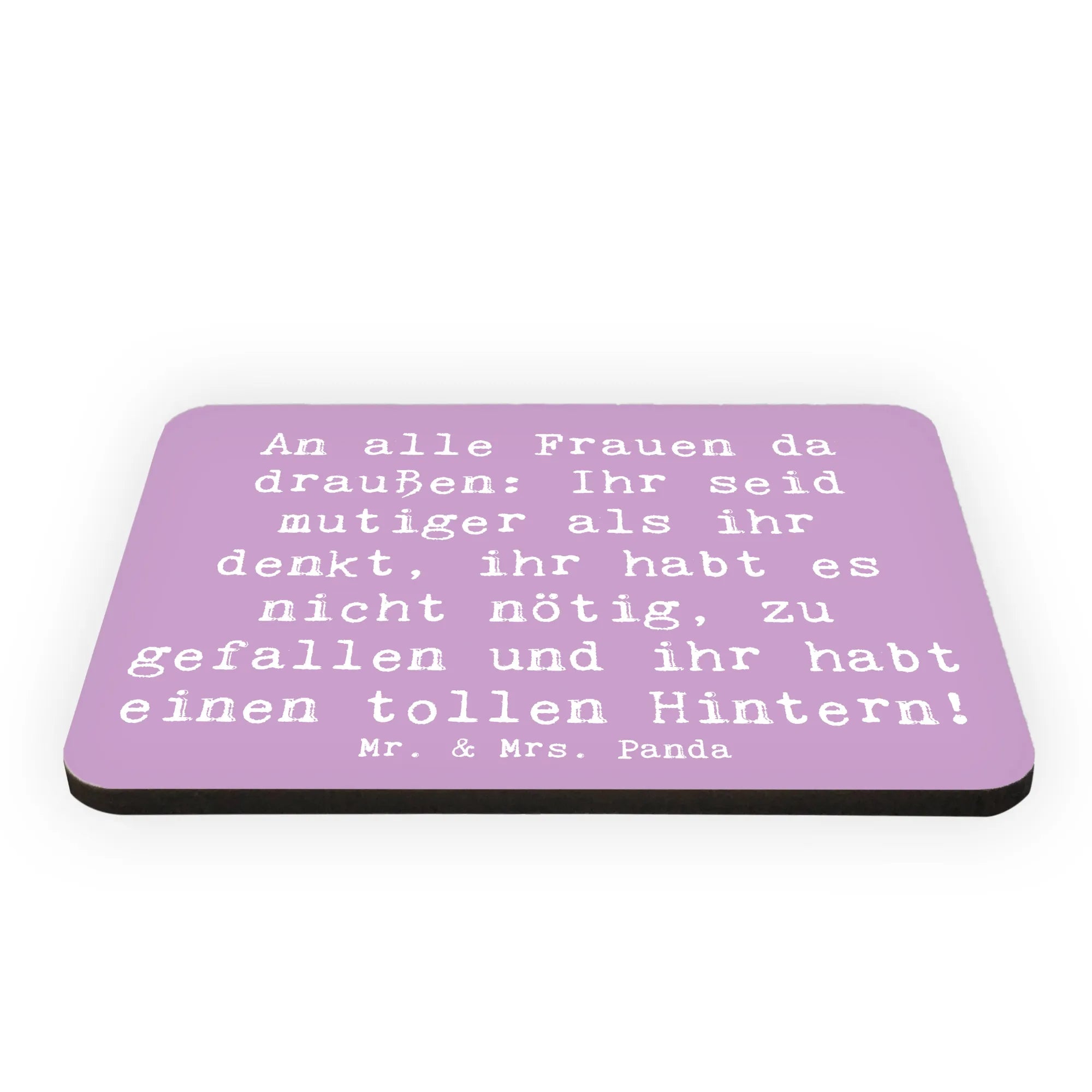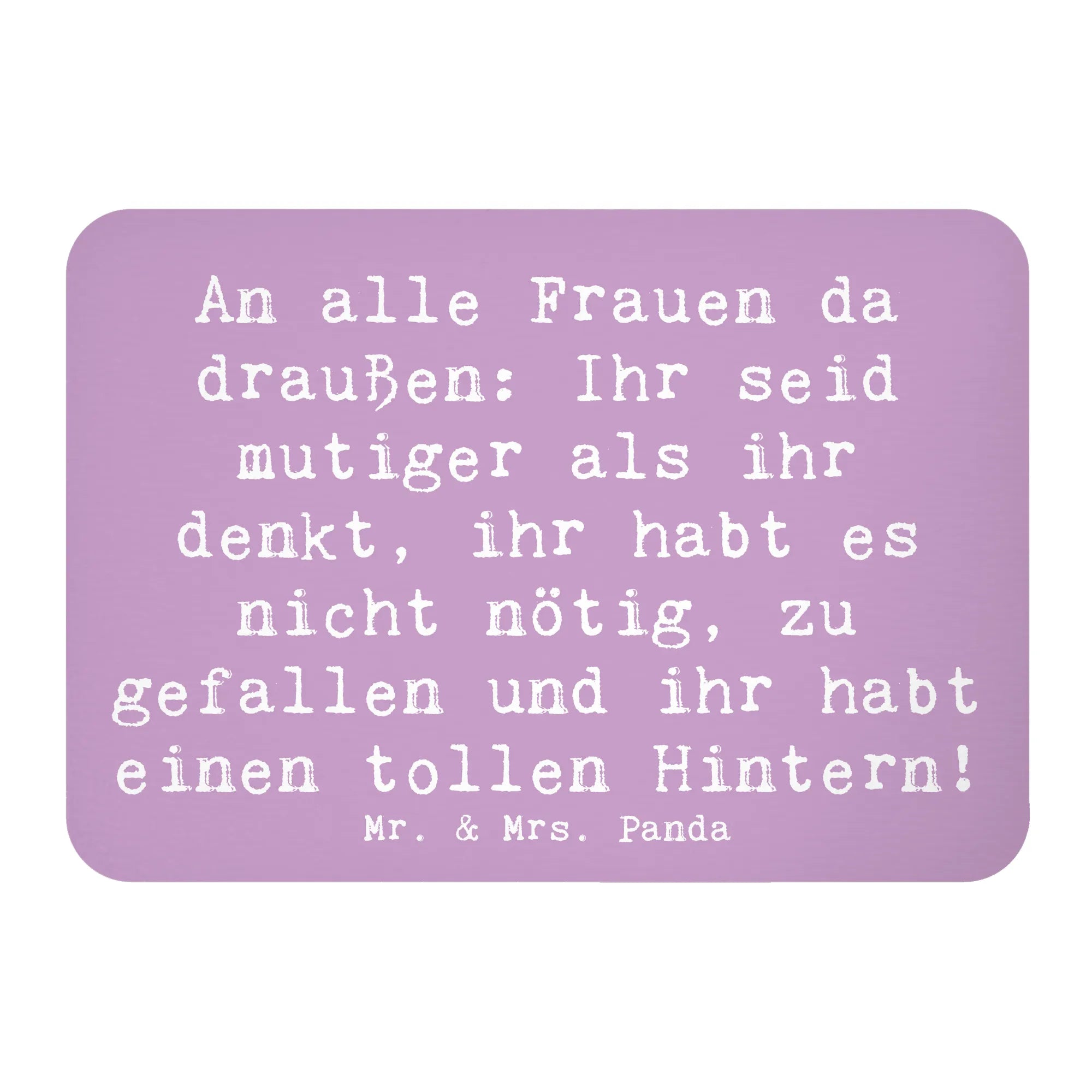 Dieser zauberhafte Magnet in zartem Lavendeltraum ist mehr als nur ein nützlicher Helfer – er ist ein kleiner Mutmacher für jeden Tag. Auf dem Magneten prangt der freche und stärkende Spruch: „An alle Frauen da draußen: Ihr seid mutiger als ihr denkt, ihr habt es nicht nötig, zu gefallen und ihr habt einen tollen Hintern!“ Ein vielseitiges Statement voller Herz, das Küche, Büro oder Flur sofort aufhellt.
