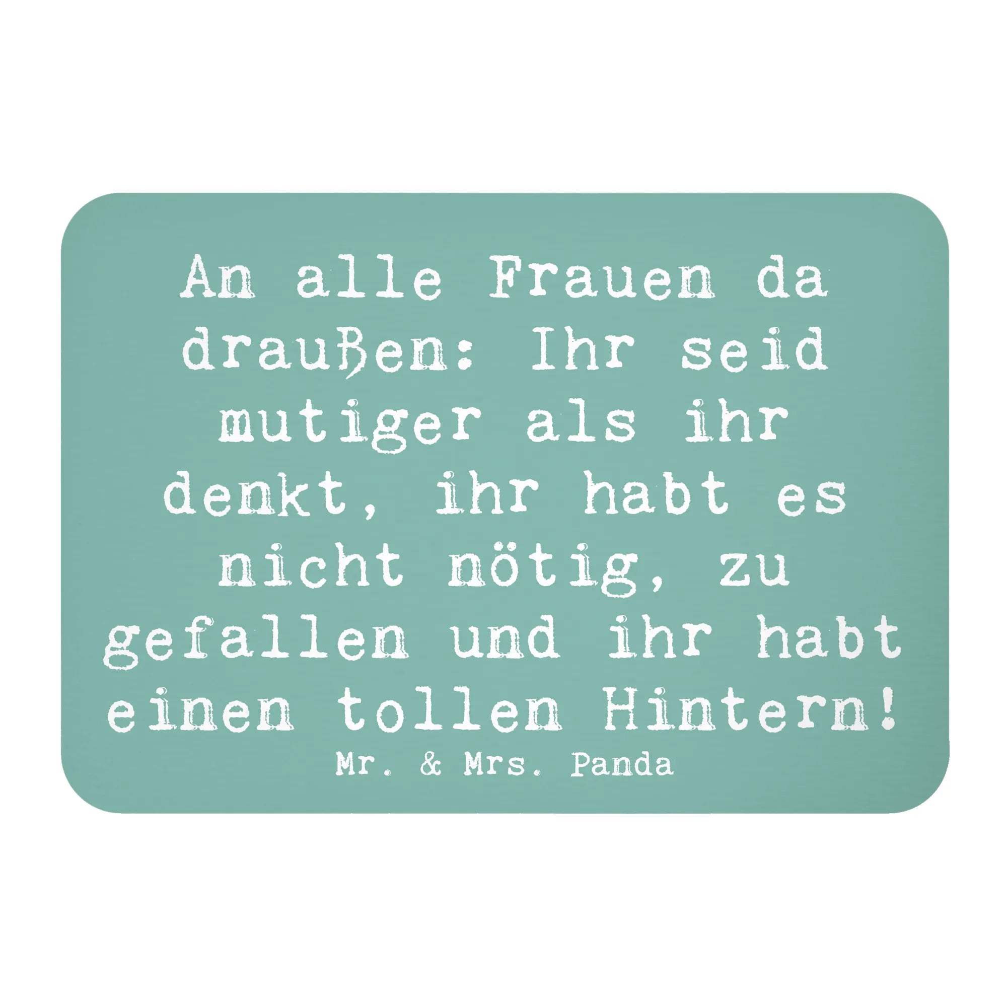 Entdecke den perfekten Kühlschrankmagneten "Hoffnung" aus der besonderen Kollektion "Gefühle & Stimmungen" von Mr. & Mrs. Panda. Mit einem klugen Spruch, der besagt: "An alle Frauen da draußen: Ihr seid mutiger als ihr denkt, ihr habt es nicht nötig, zu gefallen und ihr habt einen tollen Hintern!" bringt dieser Magnet nicht nur Farbe und Freude in deine Küche, sondern auch ein ermutigendes Gefühl in deinen Alltag.