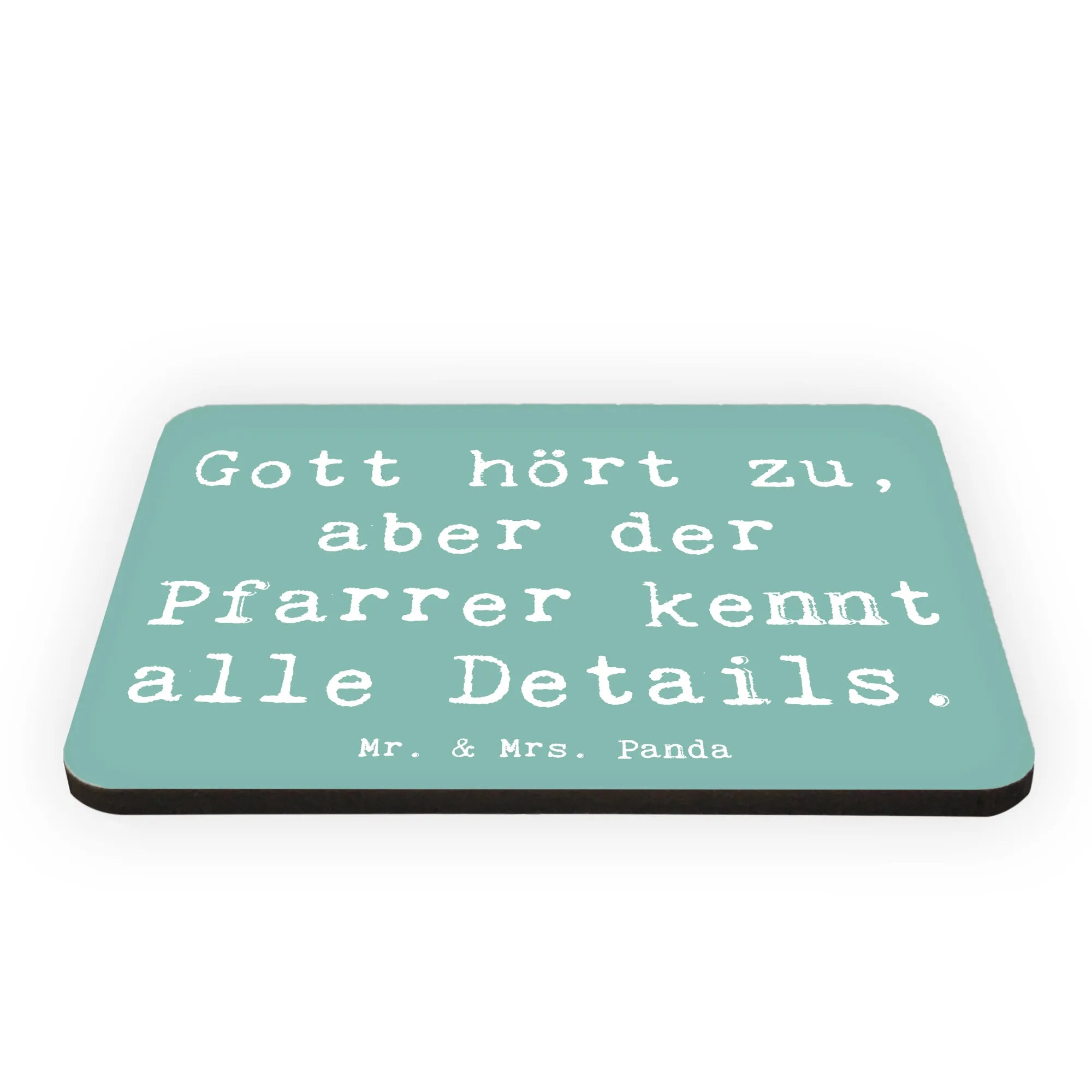 Suchst du nach einem besonderen Geschenk für einen Pfarrer oder eine Pfarrerin? Dann ist der Kühlschrankmagnet mit dem charmanten Spruch "Gott hört zu, aber der Pfarrer kennt alle Details." aus der Berufe-Kollektion von Mr. & Mrs. Panda genau das Richtige für dich! Dieser liebevoll gestaltete Magnet ist nicht nur ein praktischer Helfer in der Küche, sondern auch ein schönes Deko-Element für den Kühlschrank oder das Whiteboard.