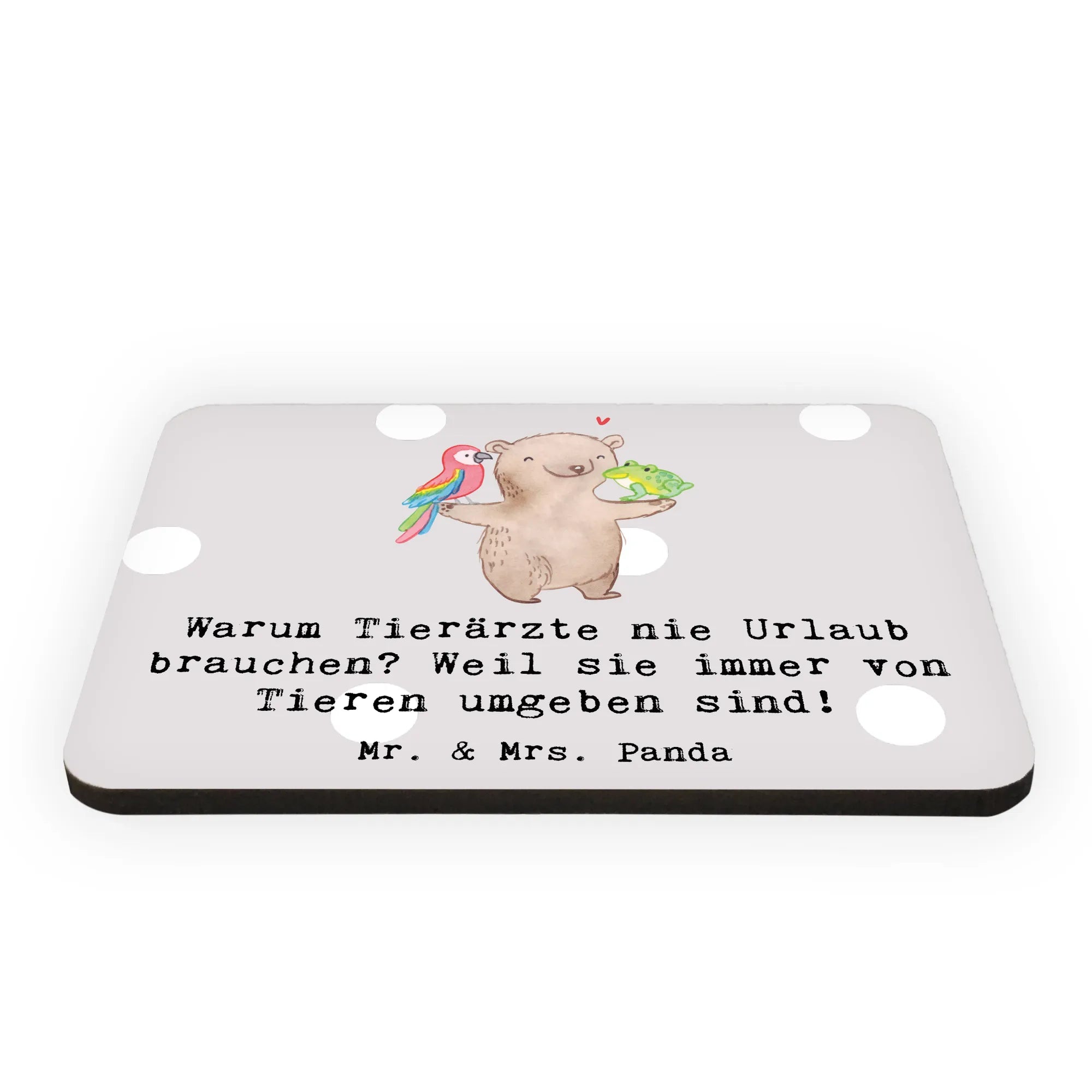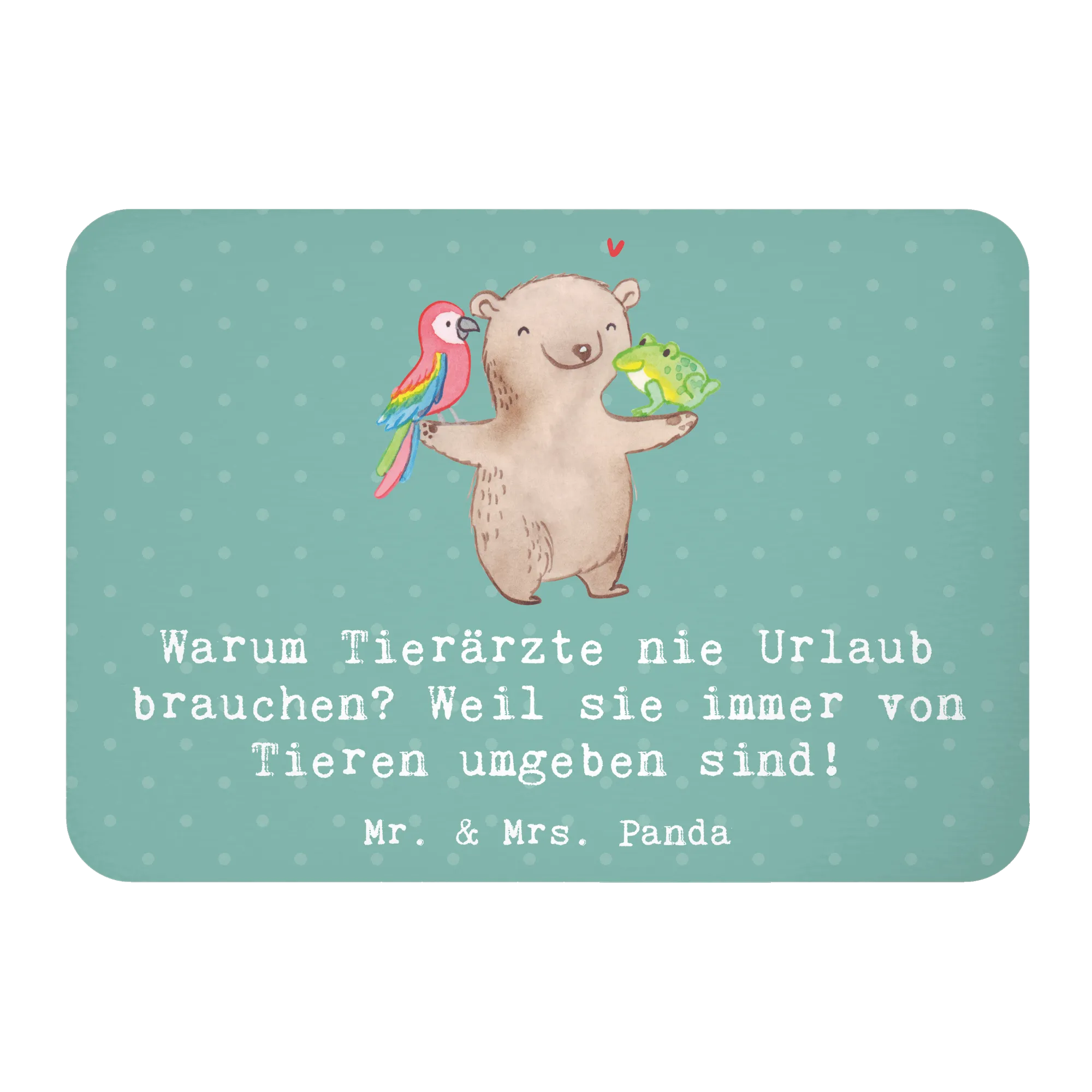 Der Kühlschrankmagnet mit dem tierärztlichen Motiv von Mr. & Mrs. Panda ist das perfekte Geschenk für alle, die sich in ihrem Beruf verwirklichen und täglich mit Tieren arbeiten. Mit dem cleveren Spruch "Warum Tierärzte nie Urlaub brauchen? Weil sie immer von Tieren umgeben sind!" bringt dieser Magnet nicht nur ein Lächeln in das Herz des beschenkten Tierarztes, sondern ist auch ein praktisches Accessoire für das Zuhause oder das Büro.