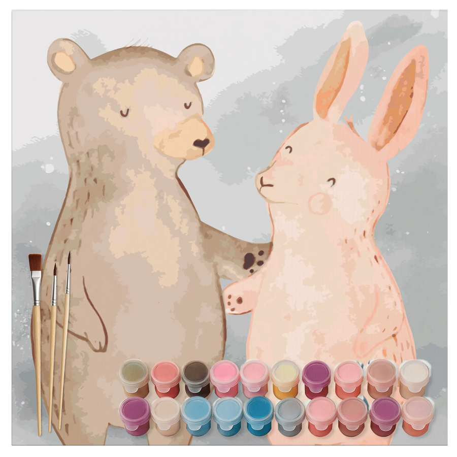 Entdecke die wundervolle Welt des Malens mit unserem Malen nach Zahlen Set "Bär Hase Umarmen" aus der Liebe Kollektion von Mr. & Mrs. Panda! Dieses besondere Kunstwerk zeigt einen fröhlichen Bären und einen süßen Hasen, die sich innig umarmen. Es strahlt eine warme Atmosphäre aus und ist einfach perfekt für kreative Seelen, die gerne ihre eigenen Meisterwerke erschaffen möchten.