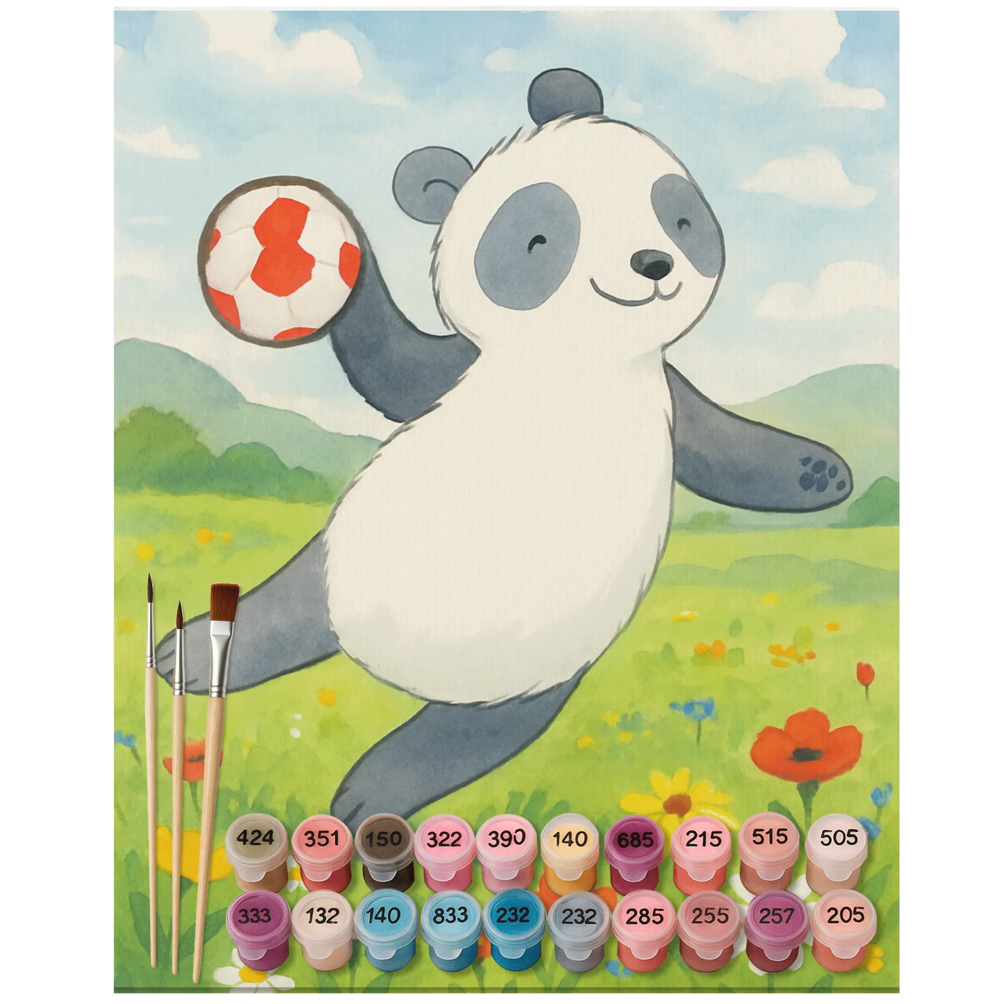 Malowanie według numerów Panda Grać w piłkę ręczną Design - Ohne Rahmen - 24 Farben (Standard)