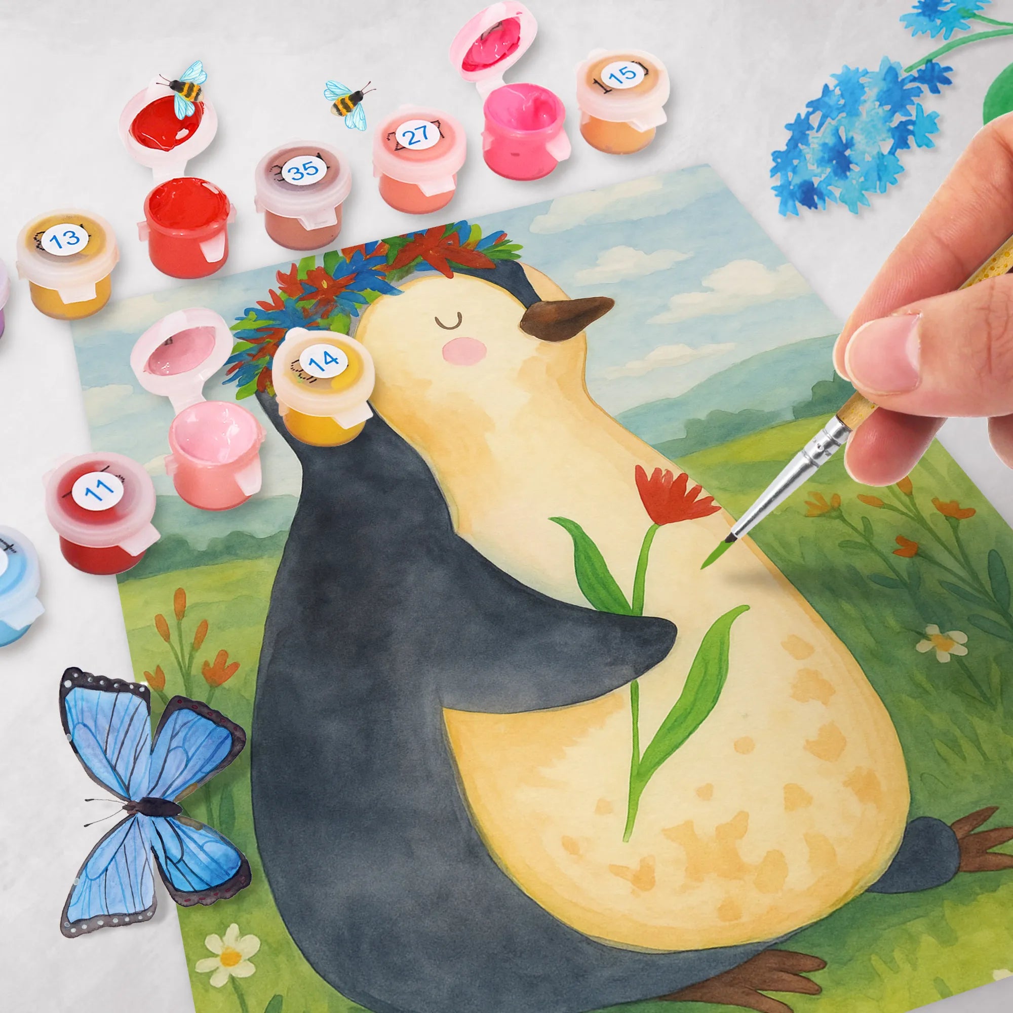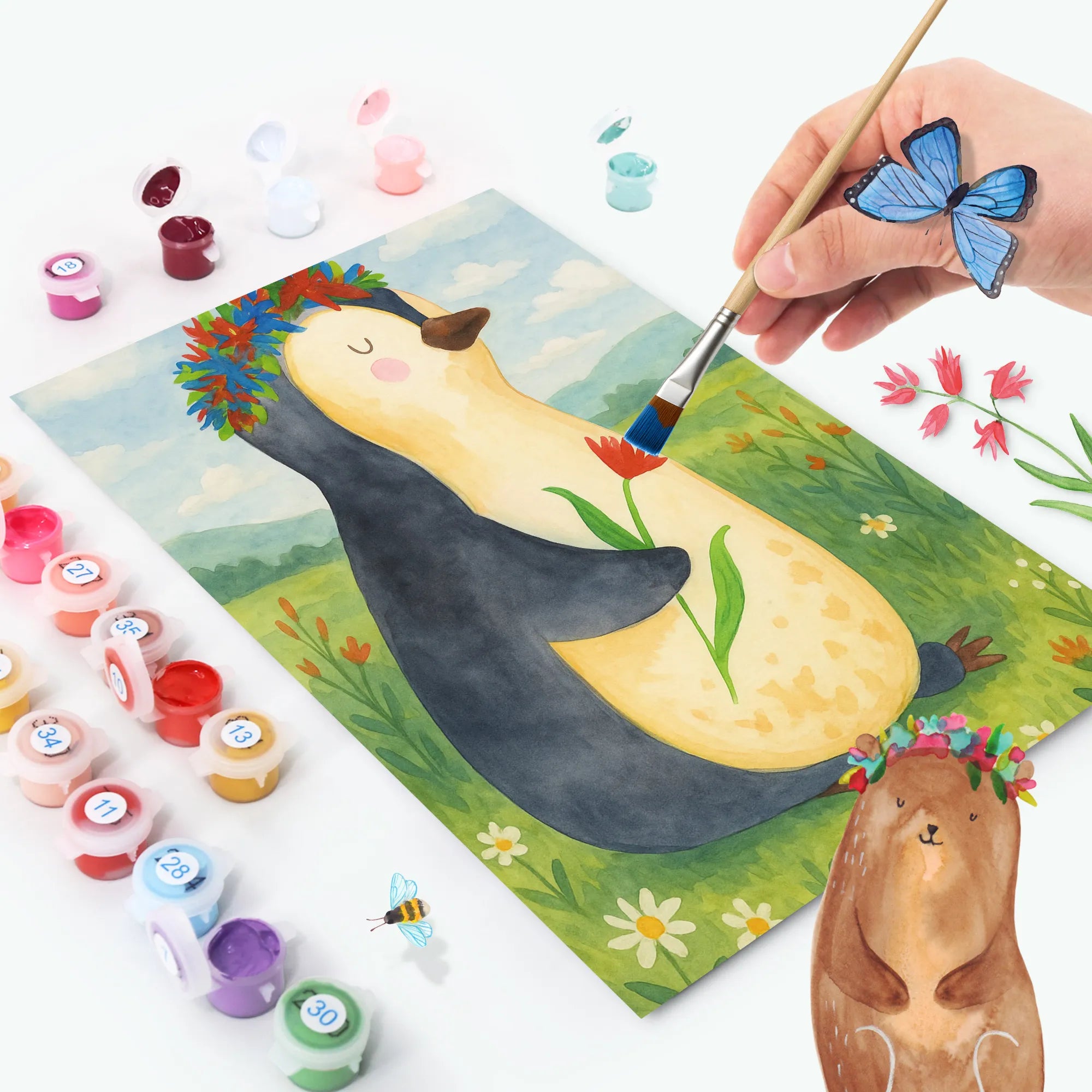 Malowanie według numerów pingwin kwiaty Design – Mr. & Mrs. Panda
