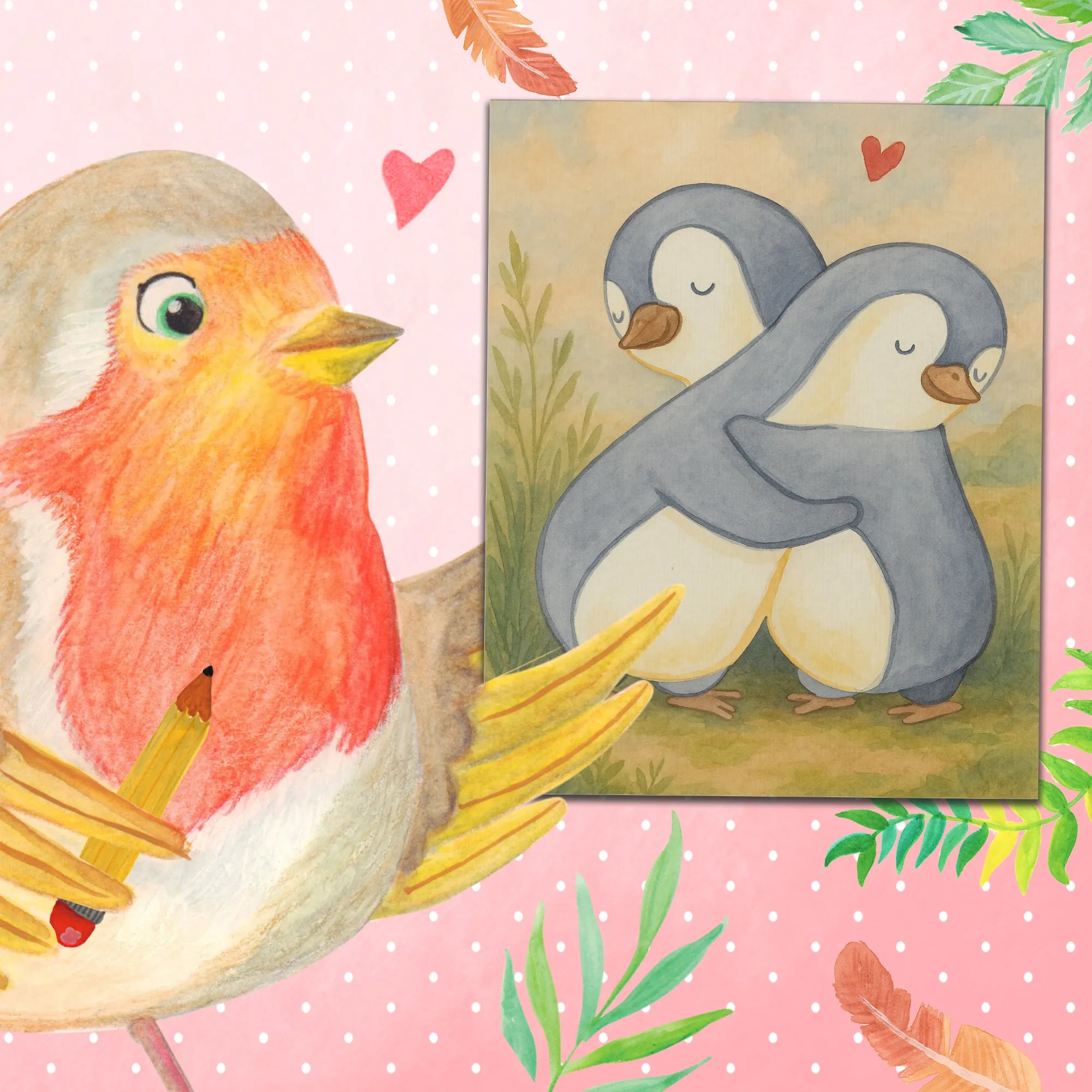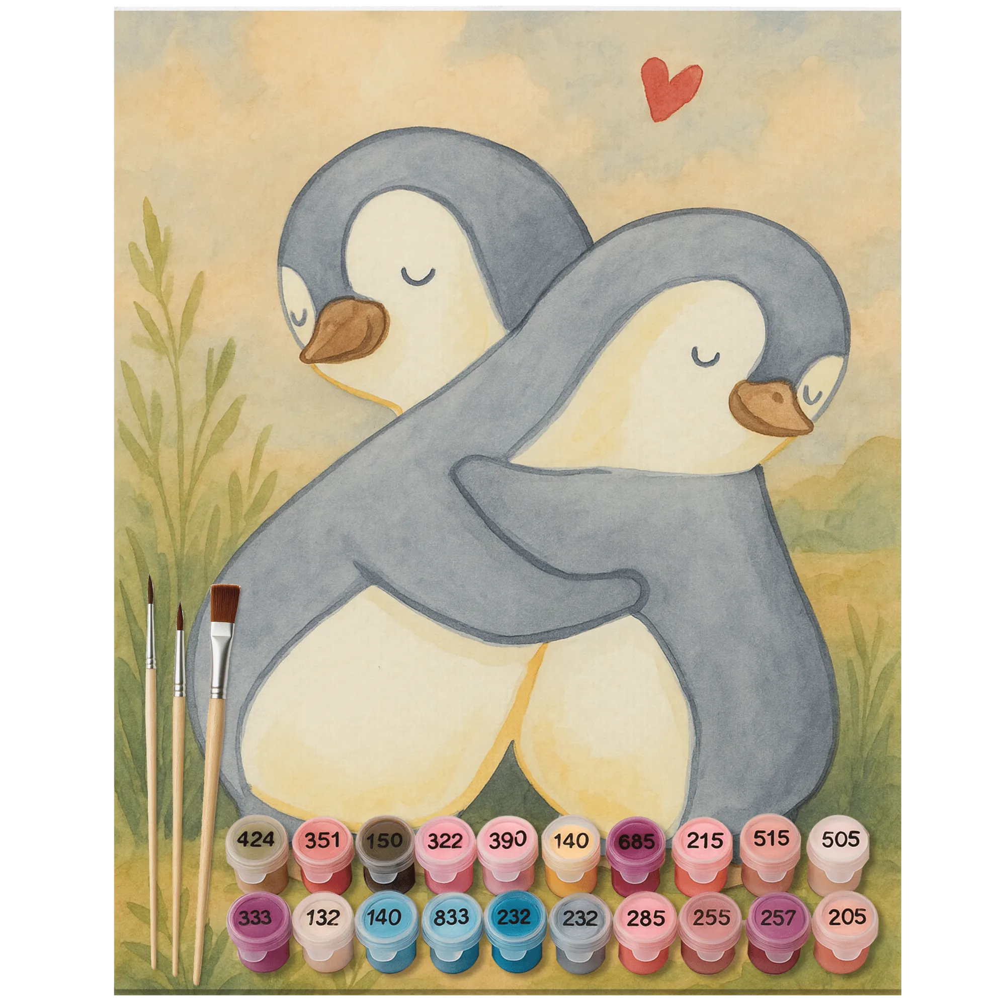 Malowanie według numerów pingwiny Przytulanie Design - Ohne Rahmen - 24 Farben (Standard)