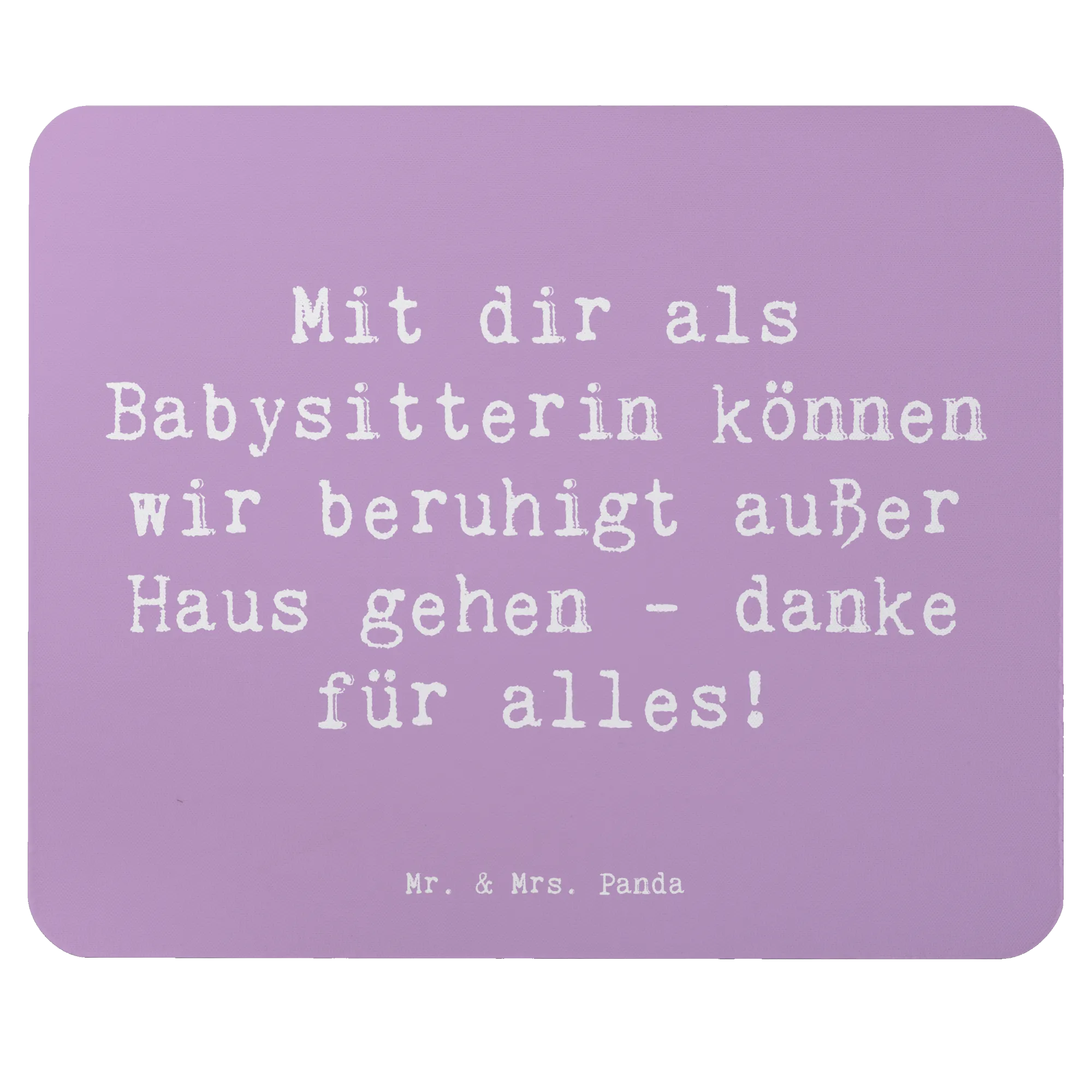 Suchst du nach dem perfekten Geschenk, um jemandem für seine Hilfe "Danke" zu sagen? Dann ist das Mauspad mit dem einzigartigen Design "Mit dir als Babysitterin können wir beruhigt außer Haus gehen - danke für alles!" von Mr. & Mrs. Panda genau das Richtige! Dieses Mauspad ist nicht nur schön, sondern auch praktisch und durch seine rutschfeste und krankheitsspezifische Beschaffenheit ein wahrer Hingucker auf jedem Schreibtisch.
