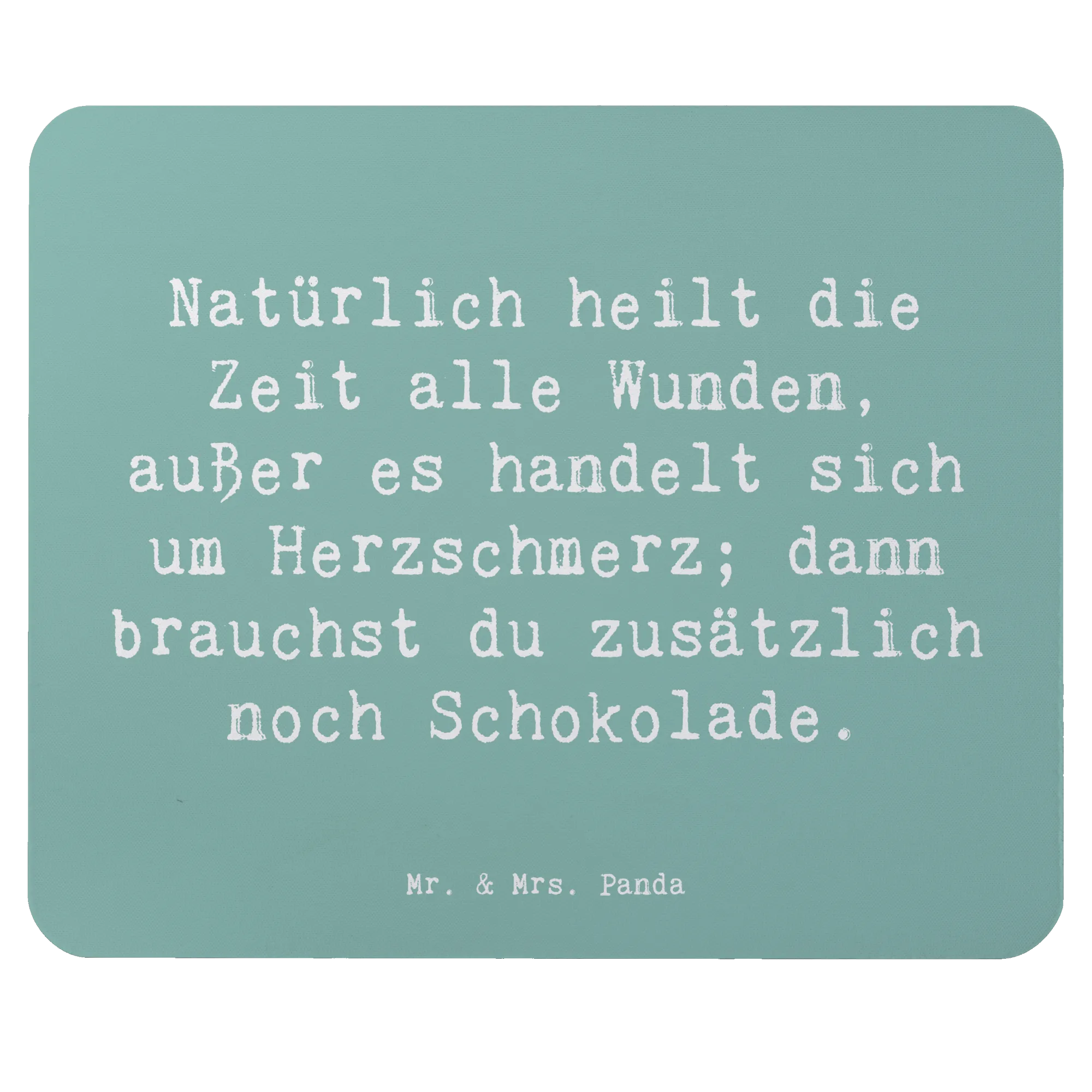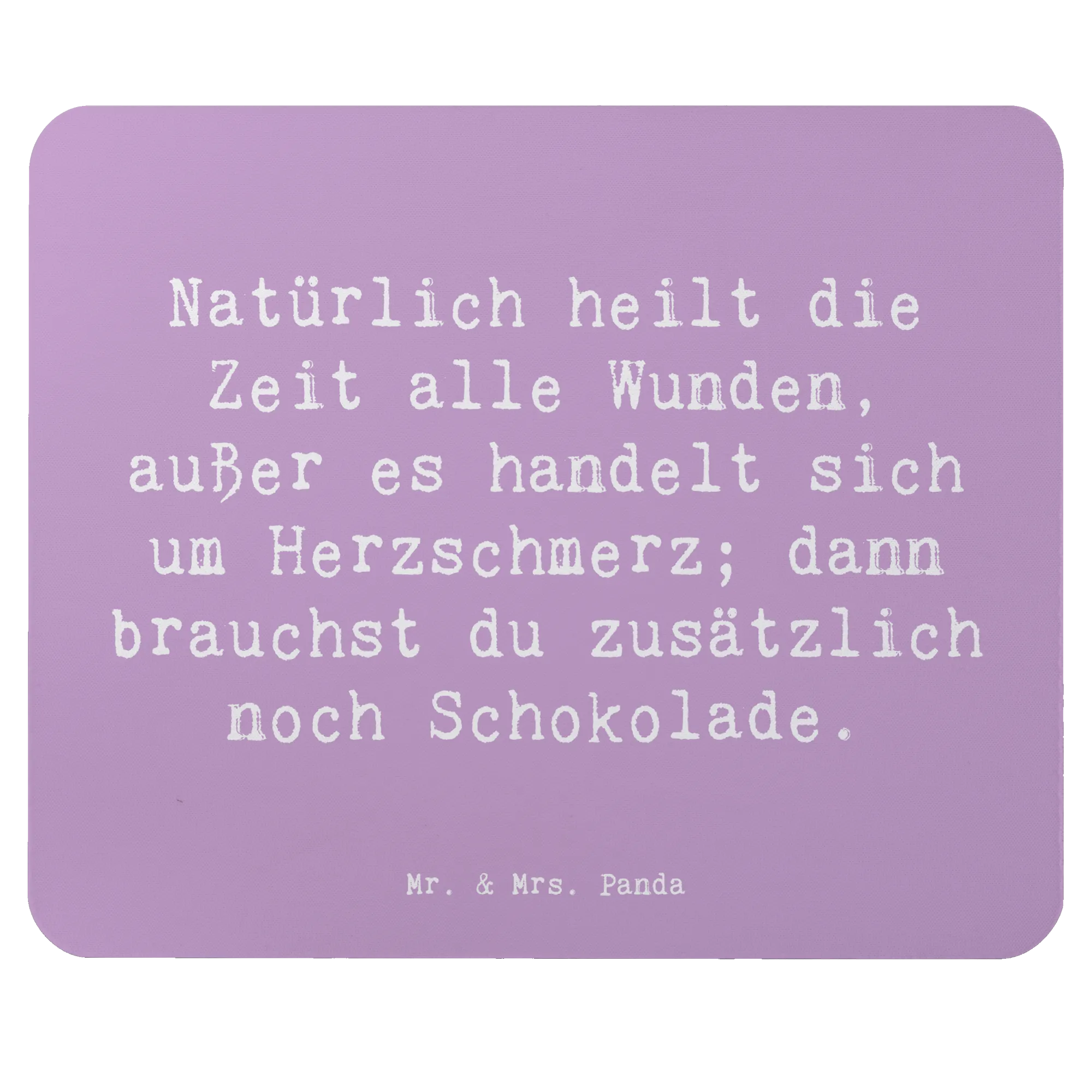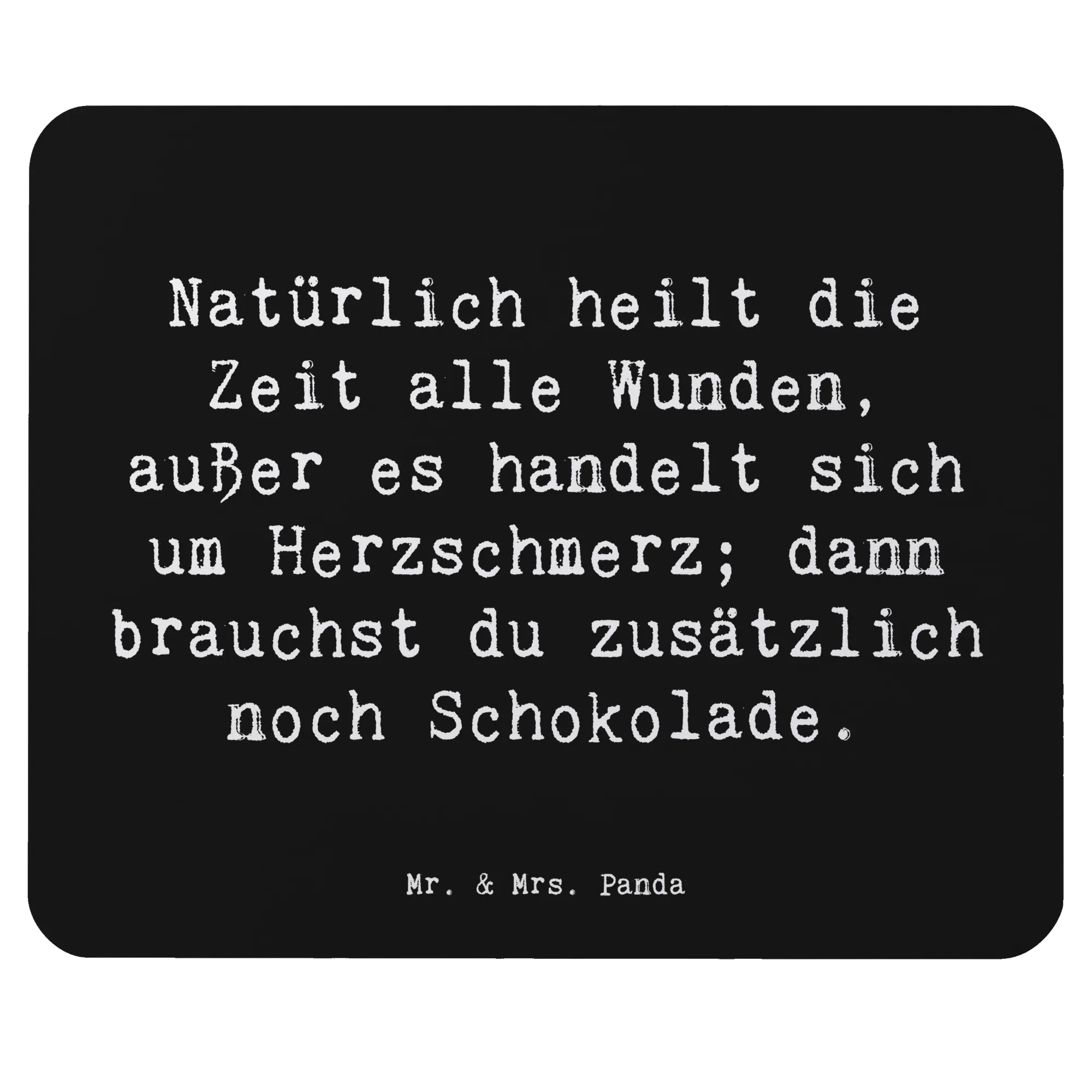 Das Mauspad "Herzschmerz" von Mr. & Mrs. Panda ist das perfekte Geschenk für alle, die gerade eine herzhafte Enttäuschung durchleben oder einfach nur einen liebevollen Spruch an ihrem Arbeitsplatz oder im Homeoffice benötigen. Mit dem charmanten Motto "Natürlich heilt die Zeit alle Wunden, außer es handelt sich um Herzschmerz; dann brauchst du zusätzlich noch Schokolade." zaubert es garantiert ein Lächeln auf die Lippen!
