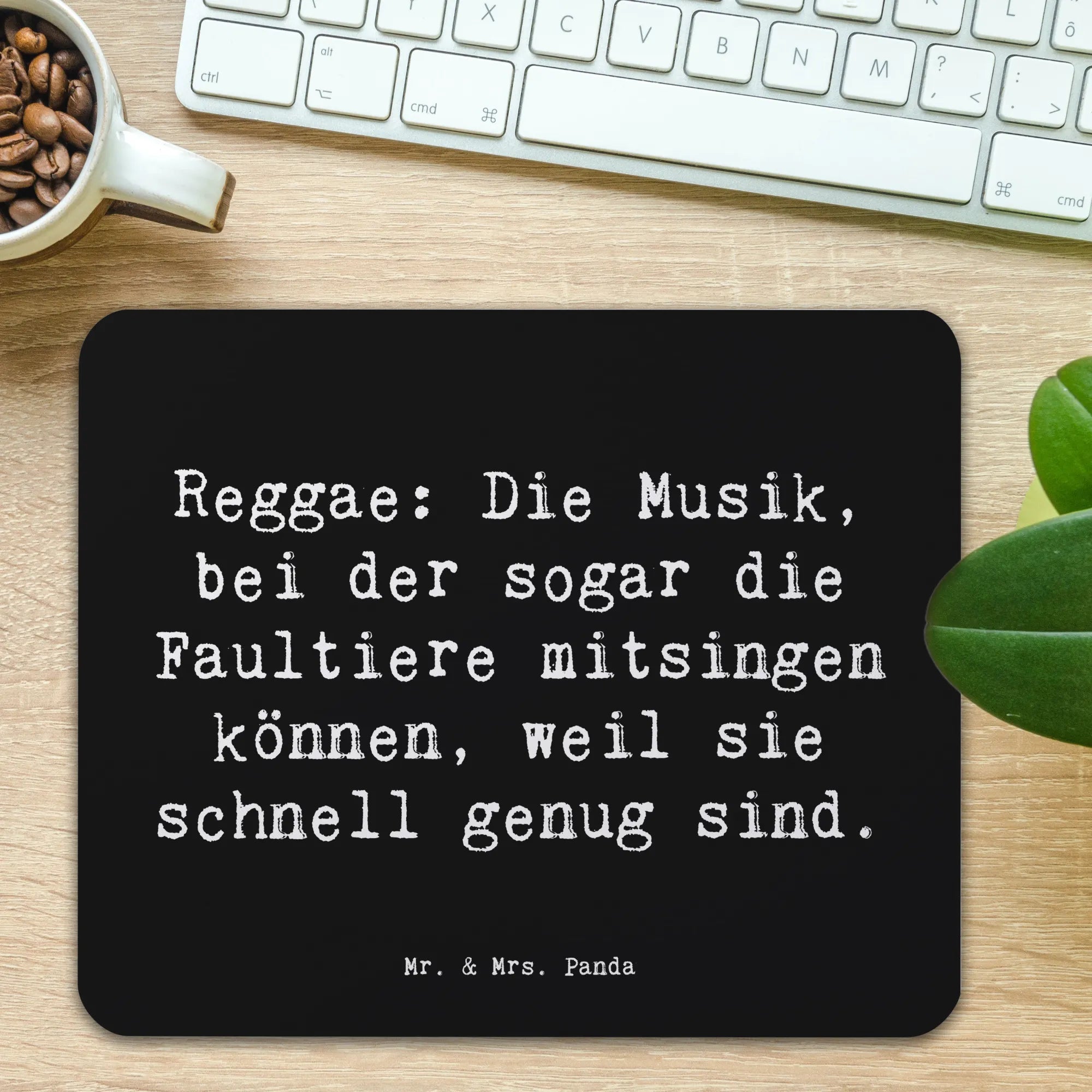 Bringe entspannte Offbeat-Vibes und ein Lächeln auf Deinen Schreibtisch. Das schwarze Mauspad trägt den frechen Spruch „Reggae: Die Musik, bei der sogar die Faultiere mitsingen können, weil sie schnell genug sind." – perfekt für alle, die Musik, gute Laune und Stil verbinden.