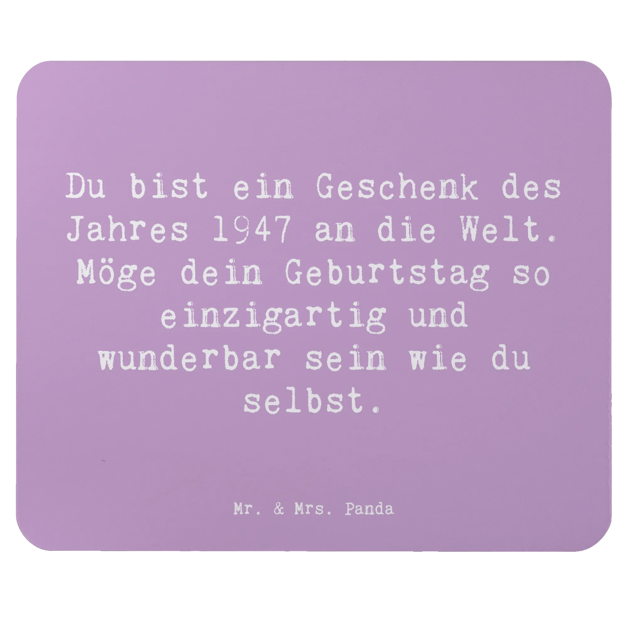 Das besondere 1947 Geburtstagsdesign aus der einzigartigen Geburtstag Geburtsjahr-Kollektion von Mr. & Mrs. Panda erzählt eine Geschichte und bringt Freude in jedes Büro. Dieses niedliche Mauspad ist mehr als nur ein Computerzubehör; es ist ein Stück Lebensfreude, das jeden Tag ein Lächeln ins Gesicht zaubert.