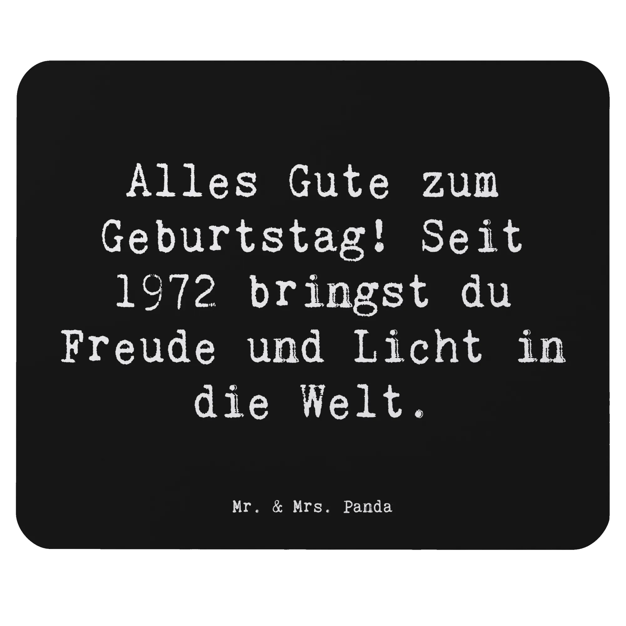 Das Mauspad "1972 Geburtstag" von Mr. & Mrs. Panda ist das perfekte Geschenk für all diejenigen, die in diesem Jahr geboren wurden und ihren Geburtstag gebührend feiern möchten! Jedes Stück ist mit dem liebevollen Spruch "Alles Gute zum Geburtstag! Seit 1972 bringst du Freude und Licht in die Welt." versehen, was nicht nur eine schöne Gratulation ist, sondern auch ein echtes Stück Lebensfreude auf deinen Schreibtisch bringt.