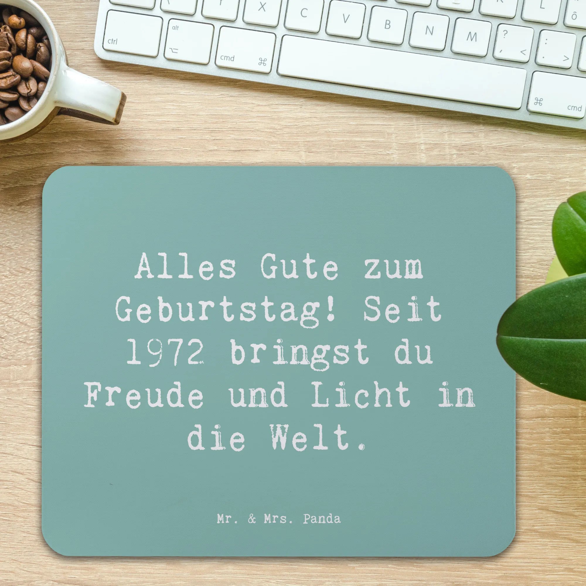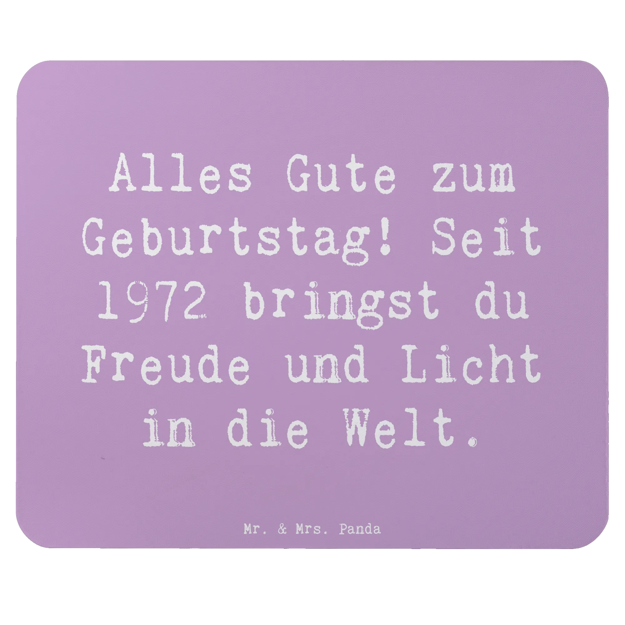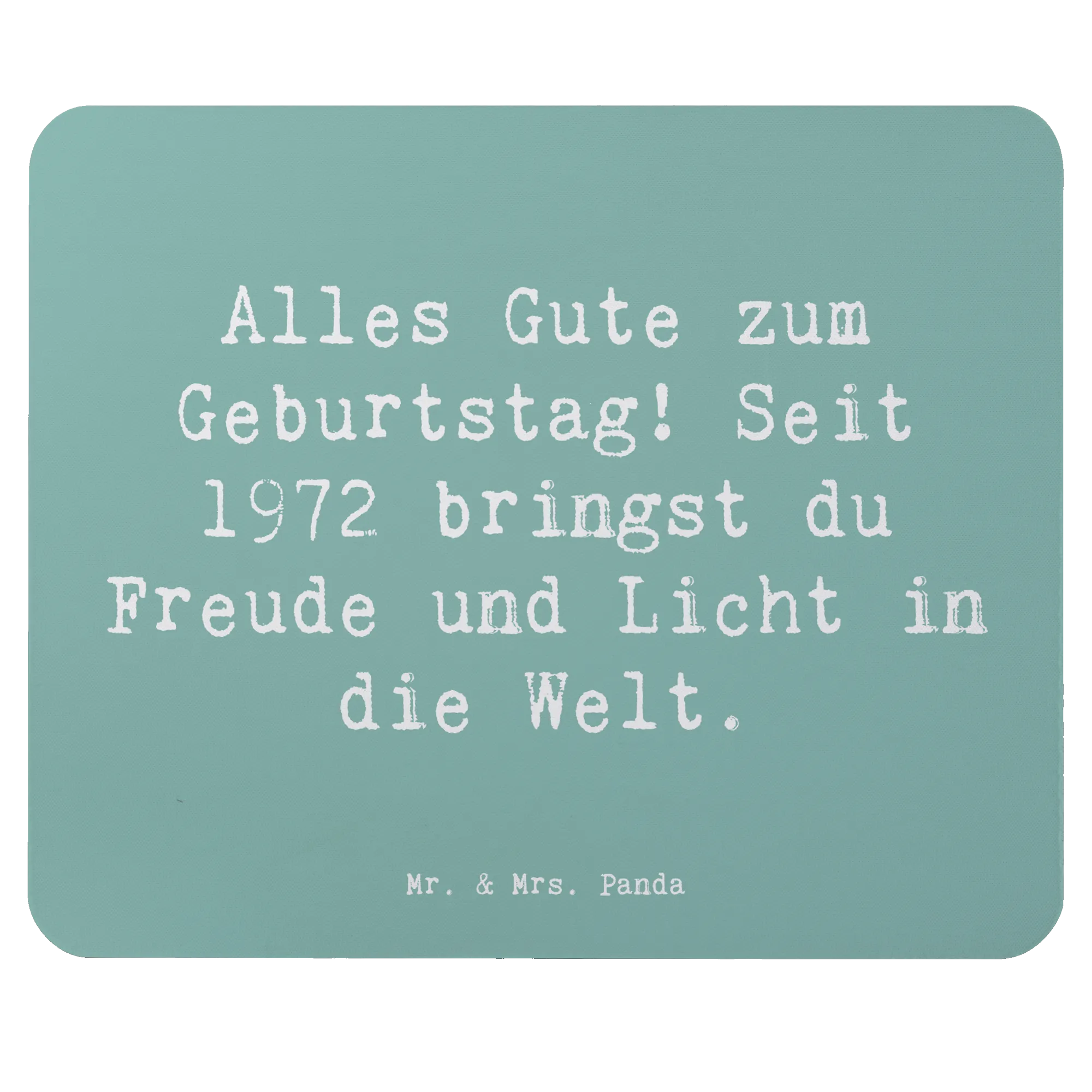 Bist du auf der Suche nach dem perfekten Geschenk für einen besonderen Menschen, der 1972 das Licht der Welt erblickt hat? Dann ist das praktische und stilvolle Mauspad von Mr. & Mrs. Panda genau das Richtige! Dieses bezaubernde Mauspad bringt nicht nur Freude und Leben ins Homeoffice, sondern ist auch ein echtes Unikat. Mit dem Spruch "Alles Gute zum Geburtstag! Seit 1972 bringst du Freude und Licht in die Welt." eignet es sich hervorragend als Geburtstagsgeschenk für jeden, der seit 1972 das Leben mit seiner Präsenz bereichert.