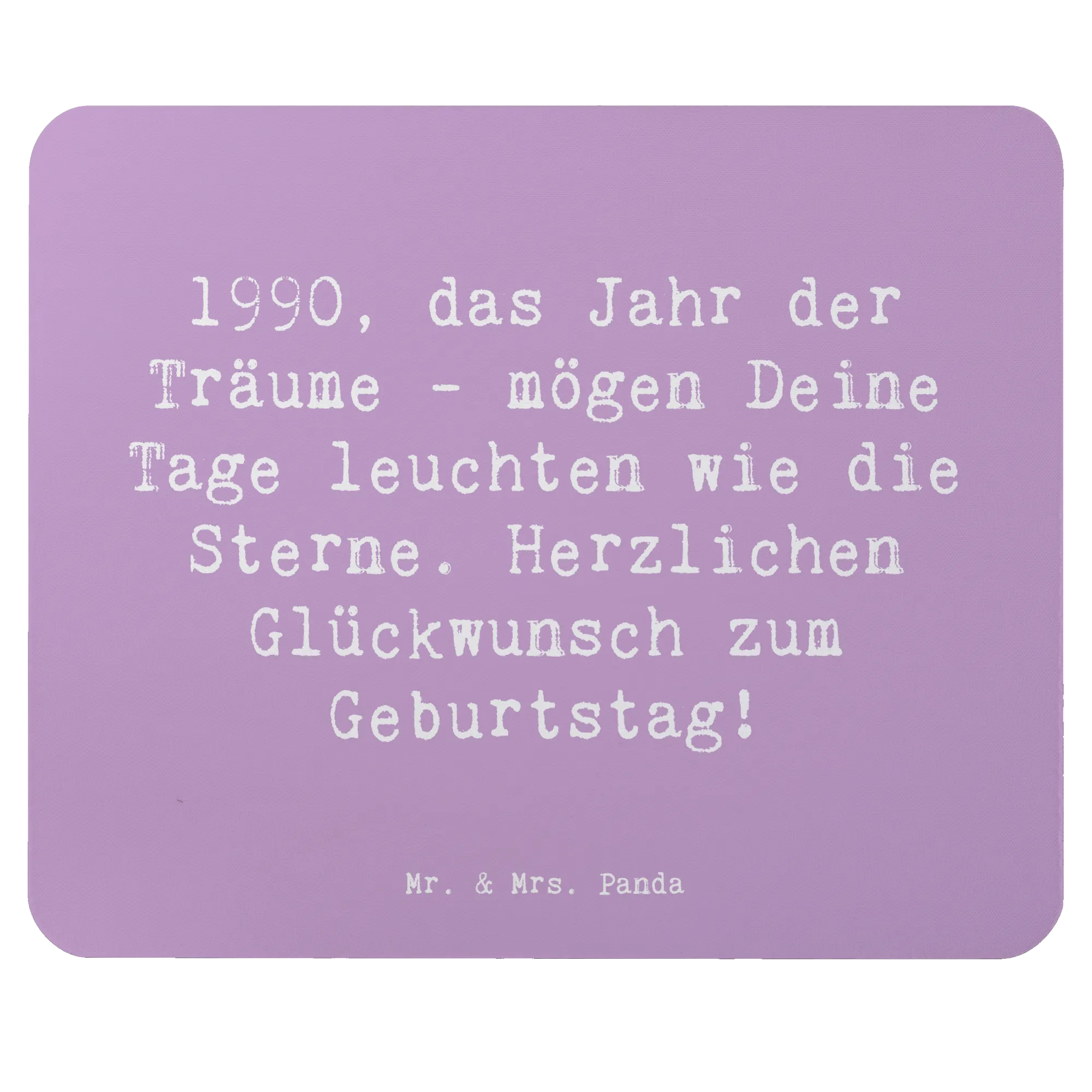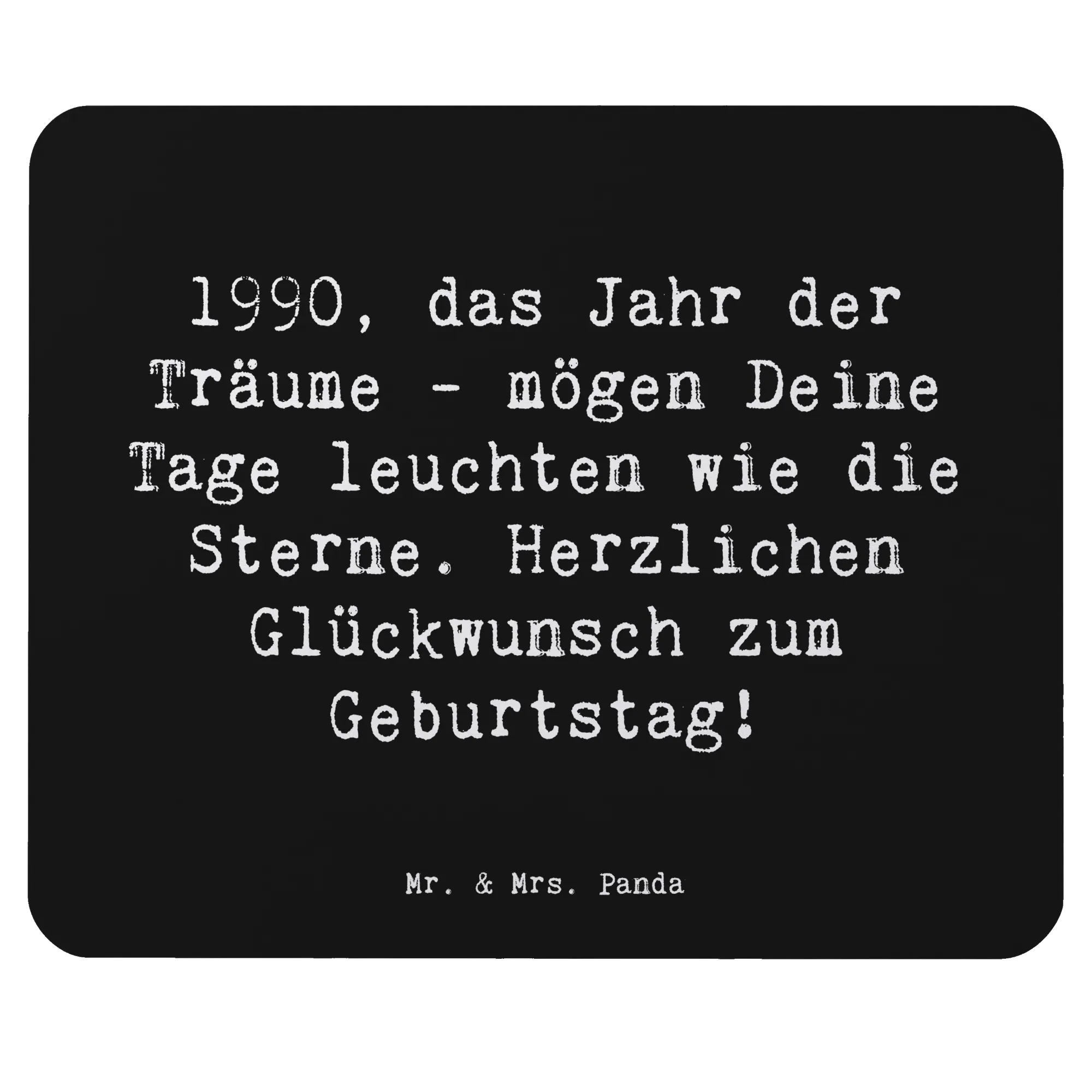 Suchst du das perfekte Geschenk zum Geburtstag für einen ganz besonderen Menschen? Dann ist das Mauspad "1990, das Jahr der Träume - mögen Deine Tage leuchten wie die Sterne. Herzlichen Glückwunsch zum Geburtstag!" von Mr. & Mrs. Panda genau das Richtige!