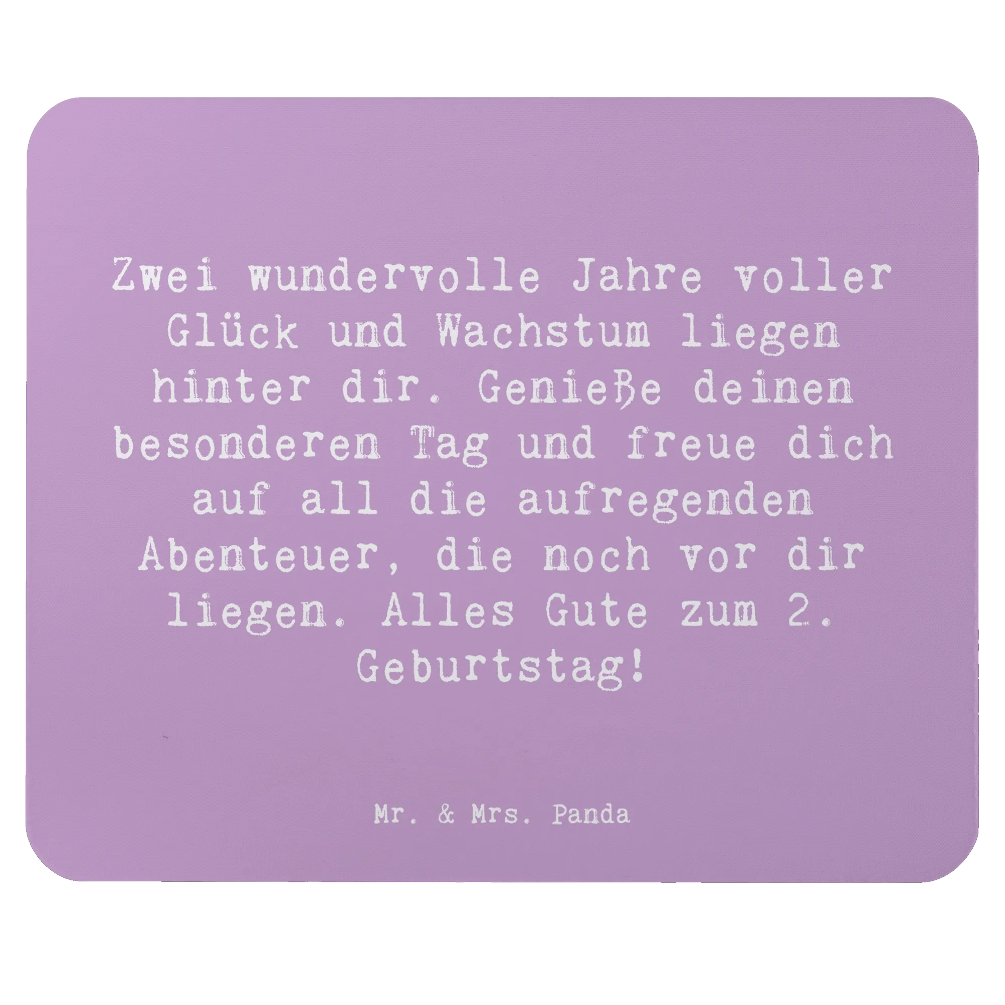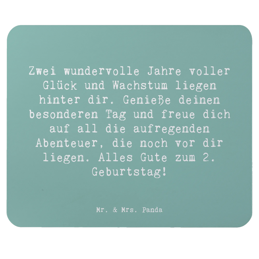 Suchst du ein einzigartiges Geschenk zum 2. Geburtstag? Dann ist das Mauspad von Mr. & Mrs. Panda genau das Richtige für dich! Mit dem süßen Motiv und dem liebevollen Spruch "Zwei wundervolle Jahre voller Glück und Wachstum liegen hinter dir. Genieße deinen besonderen Tag und freue dich auf all die aufregenden Abenteuer, die noch vor dir liegen. Alles Gute zum 2. Geburtstag!" wird dieses Mauspad zu einem ganz besonderen Begleiter am Schreibtisch.