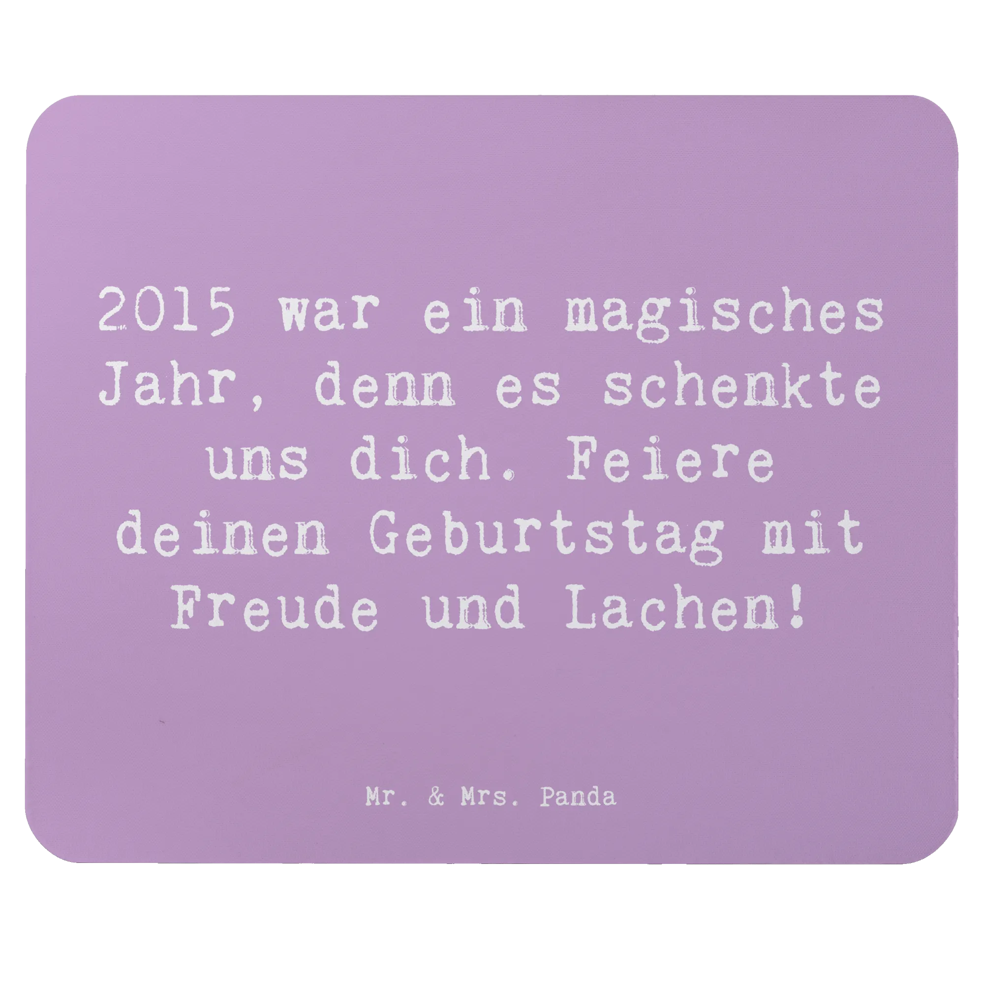 Das einzigartige Mauspad "2015 Geburtstag" von Mr. & Mrs. Panda ist das perfekte Geschenk für alle, die in diesem magischen Jahr das Licht der Welt erblickt haben! Wenn die Geschenke für den Geburtstag deines Lieblingsmenschen auf der Liste stehen, kann dieses Mauspad als stilvolles Computerzubehör nicht fehlen. Egal, ob in der Schule, im Homeoffice oder im Büro – dieses Mauspad ist funktional, schön und sorgt für die richtige Stimmung am Arbeitsplatz. Jedes Mal, wenn dein Freund oder deine Freundin mit der Maus über das gepolsterte Mauspad gleitet, wird sie daran erinnert, wie besonders ihr Geburtsjahr war.