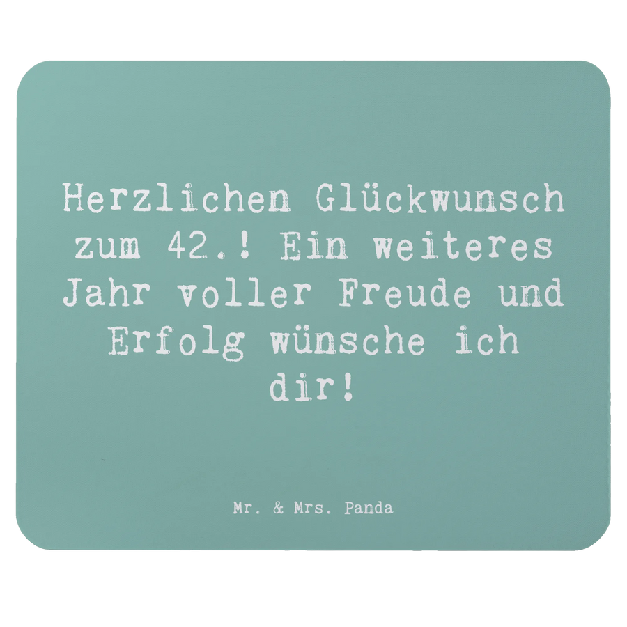 Suchst du das perfekte Geschenk zum 42. Geburtstag? Dann haben wir bei Mr. & Mrs. Panda genau das Richtige für dich! Unser einzigartiges Mauspad ist nicht nur eine praktische Arbeitsunterlage, sondern auch ein liebevolles Geschenk, das von Herzen kommt. Mit dem aufgedruckten Spruch "Herzlichen Glückwunsch zum 42.! Ein weiteres Jahr voller Freude und Erfolg wünsche ich dir!" wird jeder Arbeitstag zu etwas ganz Besonderem.