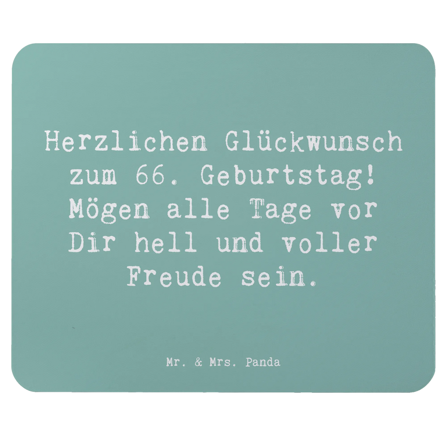 Das Mauspad "Herzlichen Glückwunsch zum 66. Geburtstag! Mögen alle Tage vor Dir hell und voller Freude sein." von Mr. & Mrs. Panda ist das ideale Geschenk, um einen besonderen Geburtstag gebührend zu feiern! Es vereint Funktionalität mit einem liebevollen Design und eignet sich perfekt für das Büro, Homeoffice oder als stilvolles Computerzubehör.